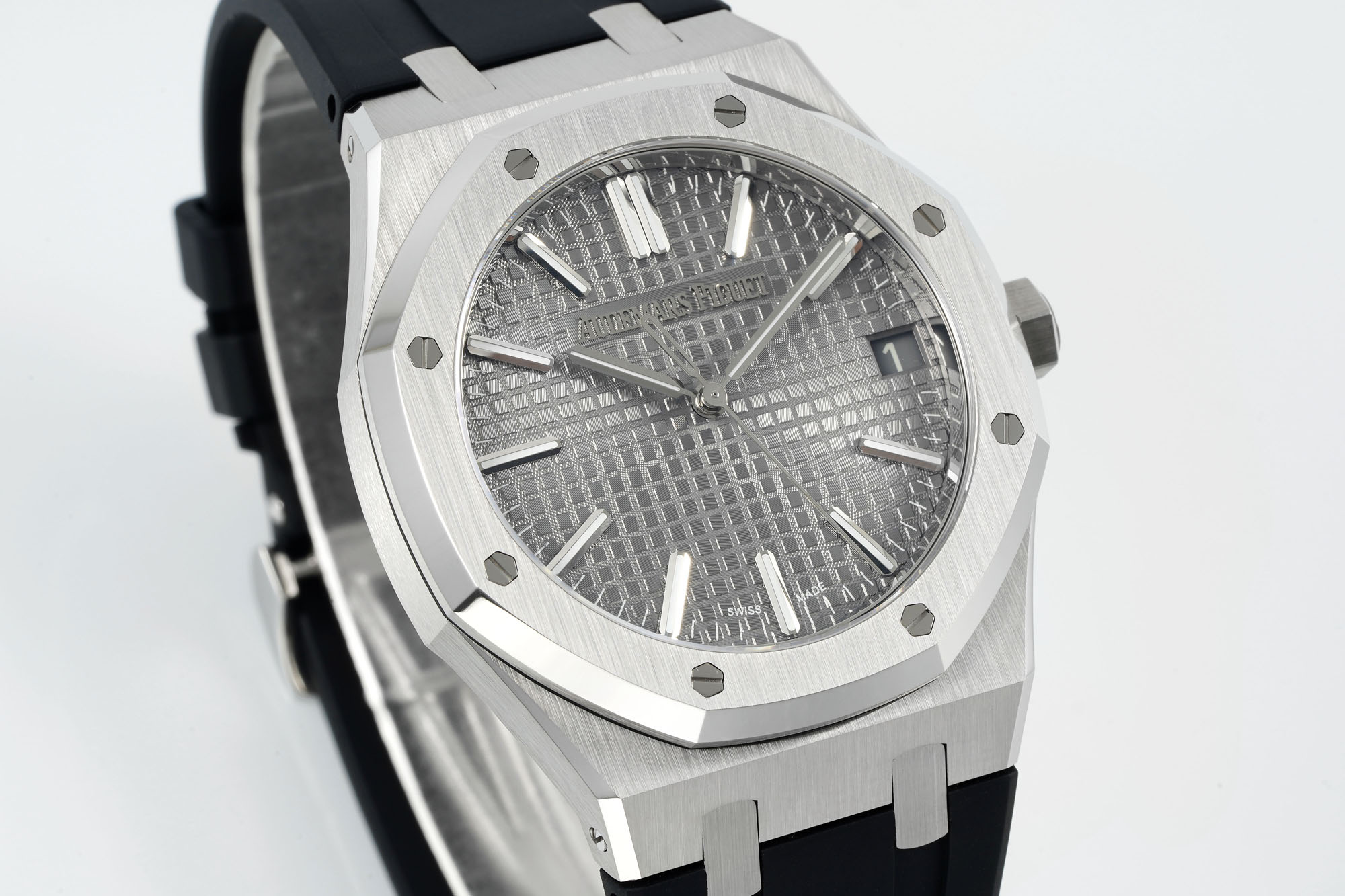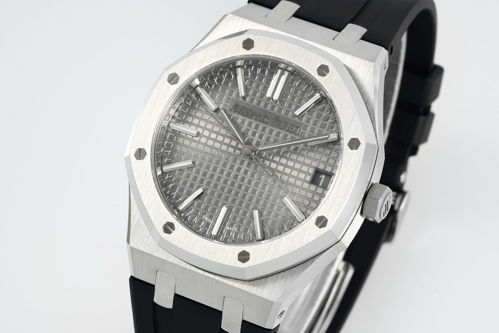 Visual accuracy is a cornerstone of high-quality replicas. The DDF Royal Oak replica excels with its finely detailed dial, featuring precisely engraved logos and an enlarged grid texture that mirrors the original’s sophistication. The meticulous design extends to the date window, created with four-axis laser engraving, illustrating the depth of care in replicating the aesthetic. The hexagonal screws on the bezel, crafted with high-gloss finishes, and the seamless integration of the octagonal lines on the case and band, offer a tactile experience that parallels luxury.
