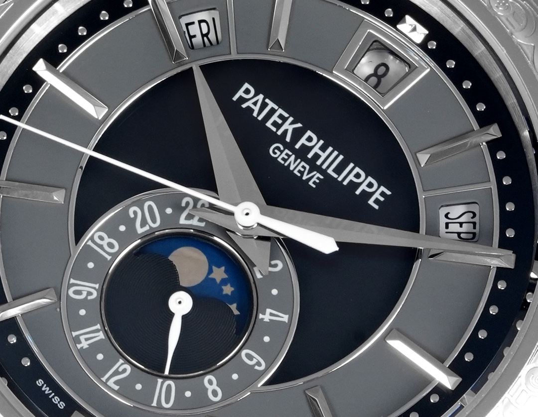 The 5205G-013 defies its compact size by offering a multitude of functions. It features a date display at the 12 o’clock position, a day indicator at 10 o’clock, and a month display at 2 o’clock, with a 24-hour indicator positioned at 6 o’clock. Despite the complexity of these functions, the watch maintains seamless usability, highlighting Patek Philippe’s masterful integration of form and function.