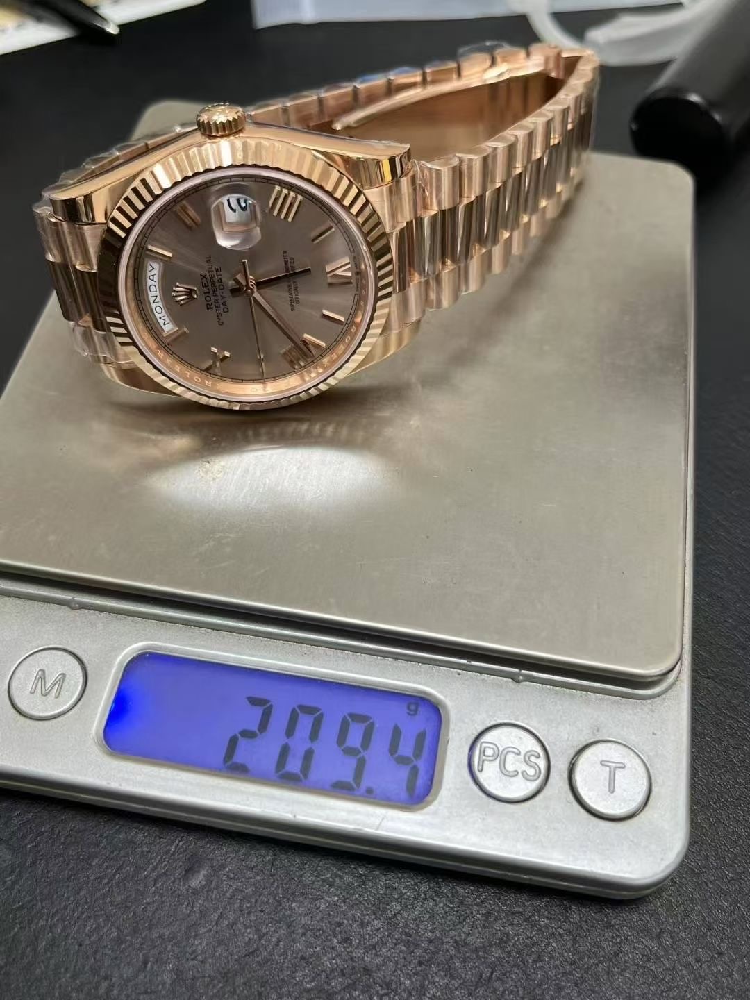 The latest Rolex Day-Date replica weighs in at approximately 209 grams—a testament to its robustness and substantial feel, reminiscent of genuine luxury timepieces. This version utilizes upgraded materials that boast a significant resistance to peeling, ensuring that the watch retains its aesthetic appeal over prolonged use. This innovation allows for repeated gold plating, which enhances the watch’s opulent appearance without necessitating extended bracelet segments. Such meticulous design reflects a growing awareness among replica manufacturers to offer durability and longevity alongside visual allure.