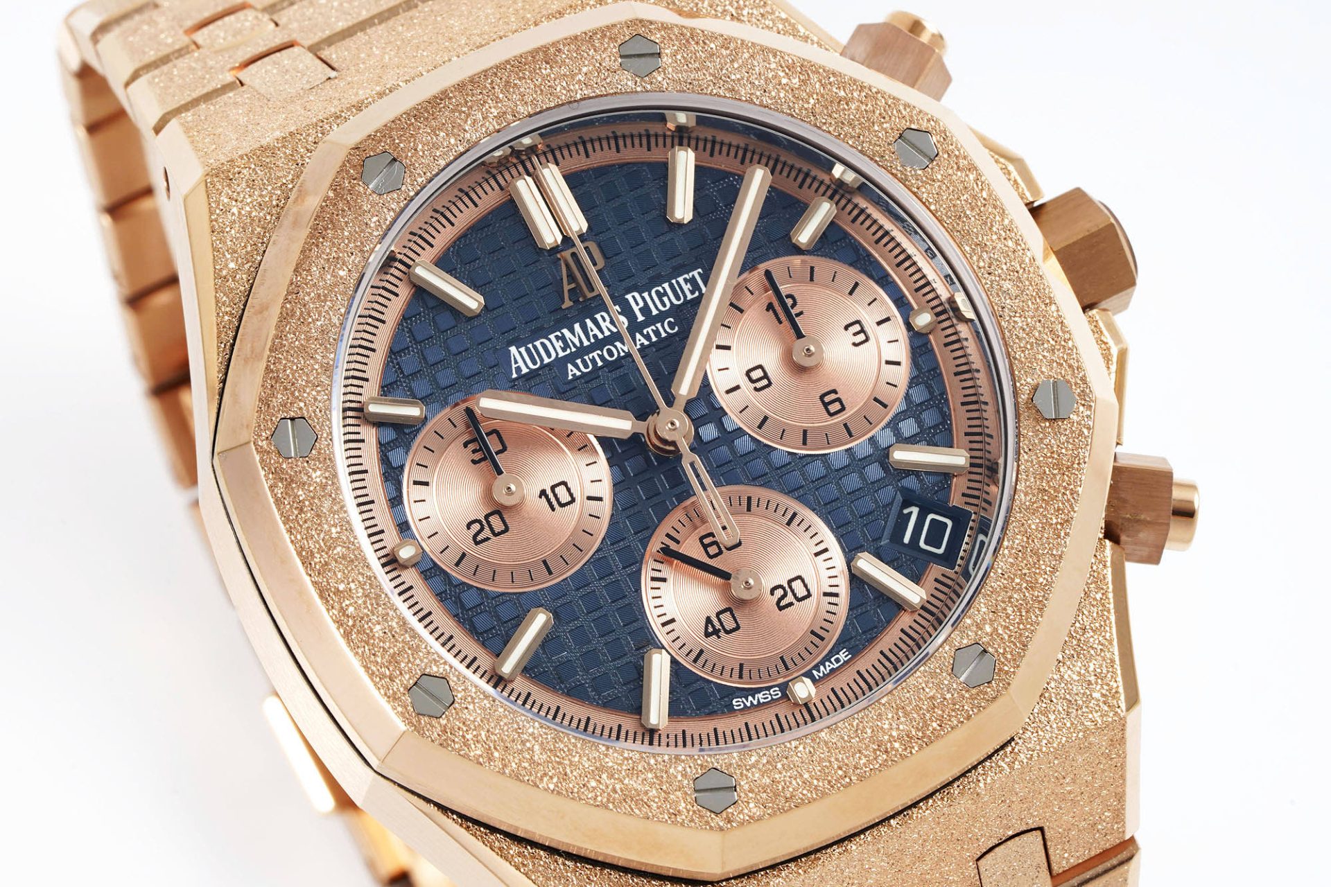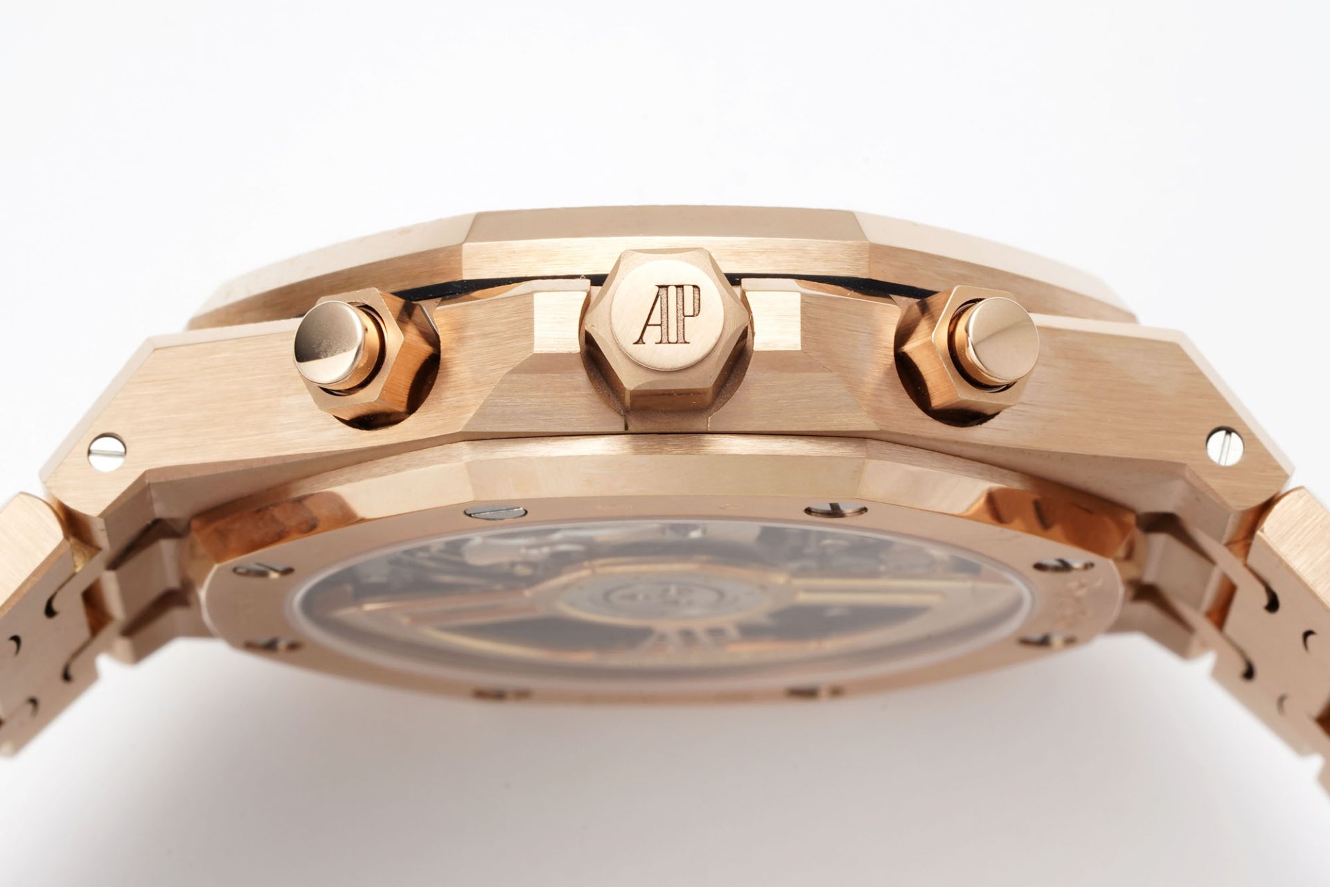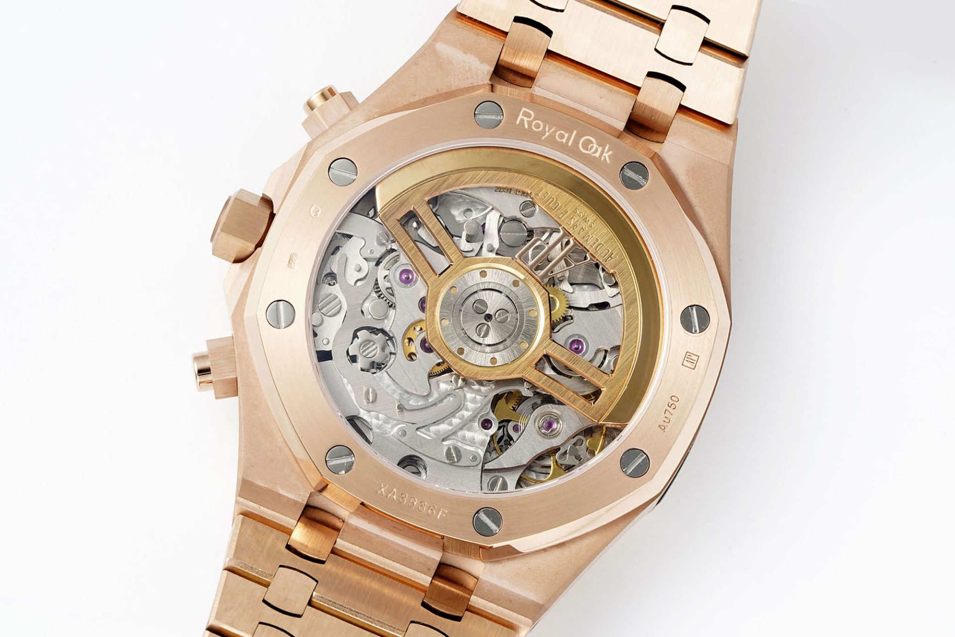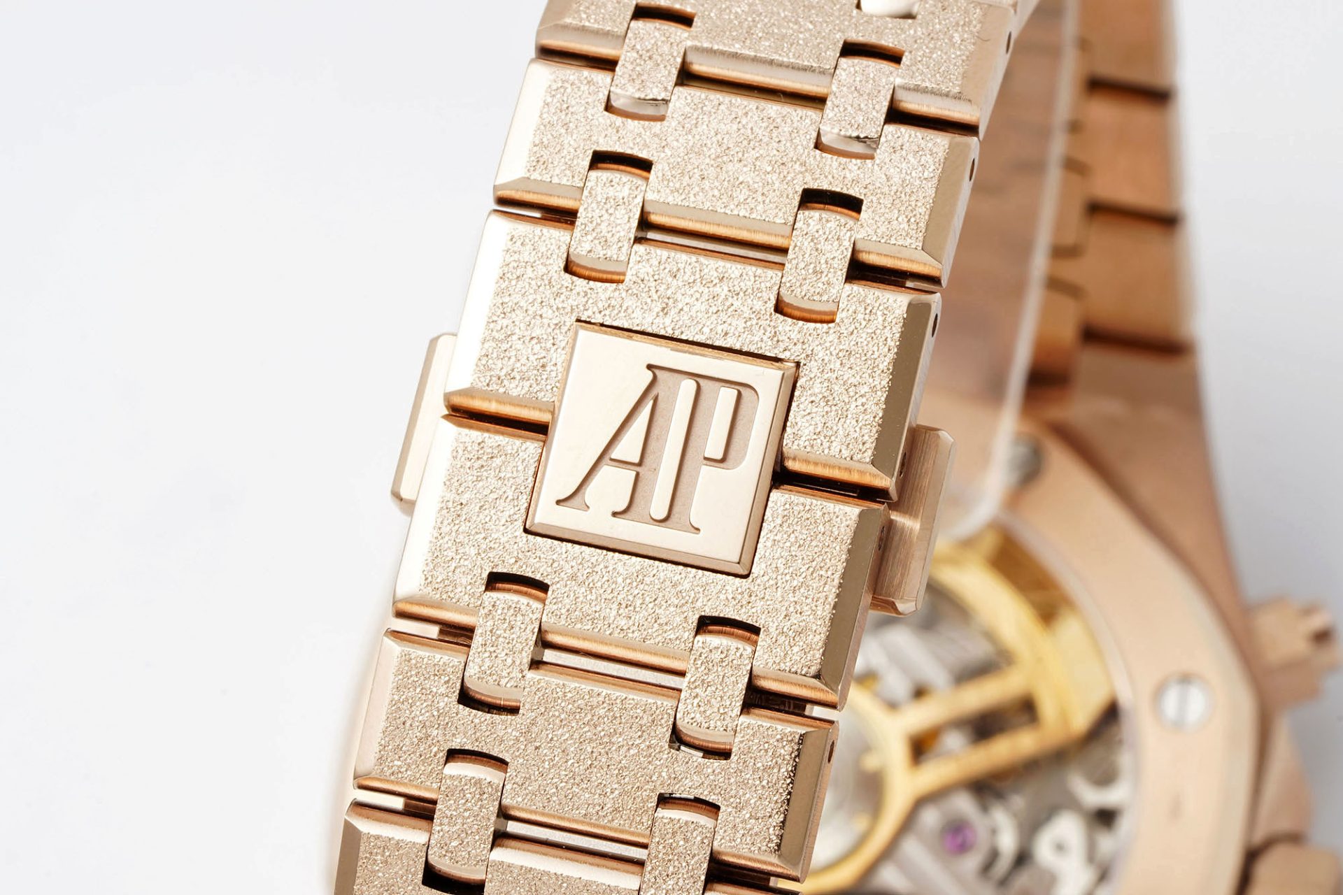 Weighing in with the same heft as the original, this replica ensures a well-balanced sensation on the wrist, enriched by a smooth power reserve that prevents chain breaks. This attention to detail, including the rounded AP lettering, creates a timepiece that merges form with function seamlessly.