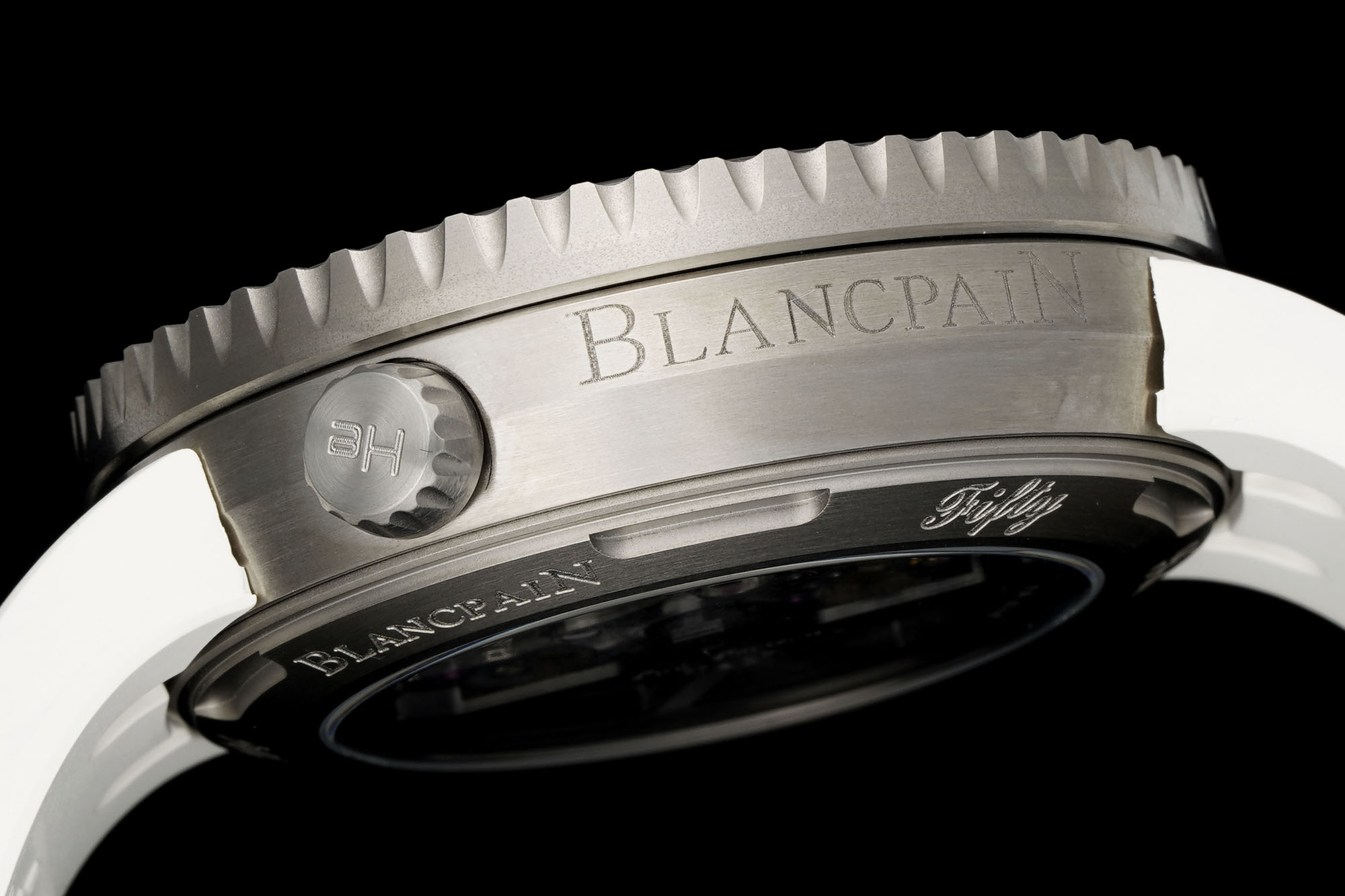 The Fifty Fathoms Tech 45 carries a case dimension of 45mm x 14.1mm, crafted from grade 23 titanium—a material celebrated for its lightness, hypoallergenic properties, and exceptional corrosion resistance. These attributes make titanium ideal for professional diving watches, a niche Blancpain has long excelled in. The Tech 45 is equipped with features critical for saturation diving, such as a helium escape valve, a unidirectional 120-notch rotating bezel with ceramic inserts, and both a sapphire crystal and case back. With a water resistance of up to 300 meters, it doesn’t merely meet professional needs—it surpasses them.