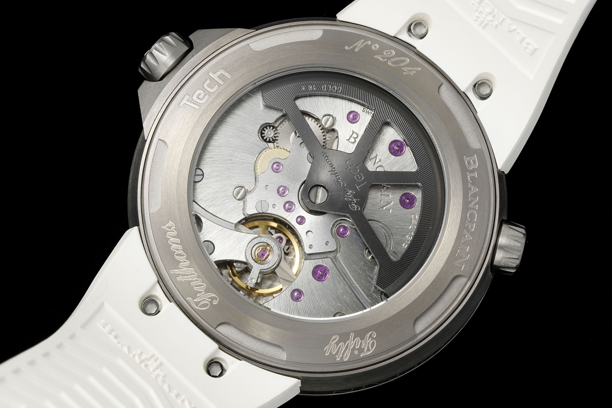 At the heart of the Tech 45 beats the Blancpain caliber 1315A, a movement known for its reliability and durability, offering a substantial 72-hour power reserve. Operating at 28,800 vibrations per hour, it provides precision and stability. The sapphire crystal case back reveals the meticulous craftsmanship of traditional finishing techniques, a testament to Blancpain’s unwavering dedication to quality.