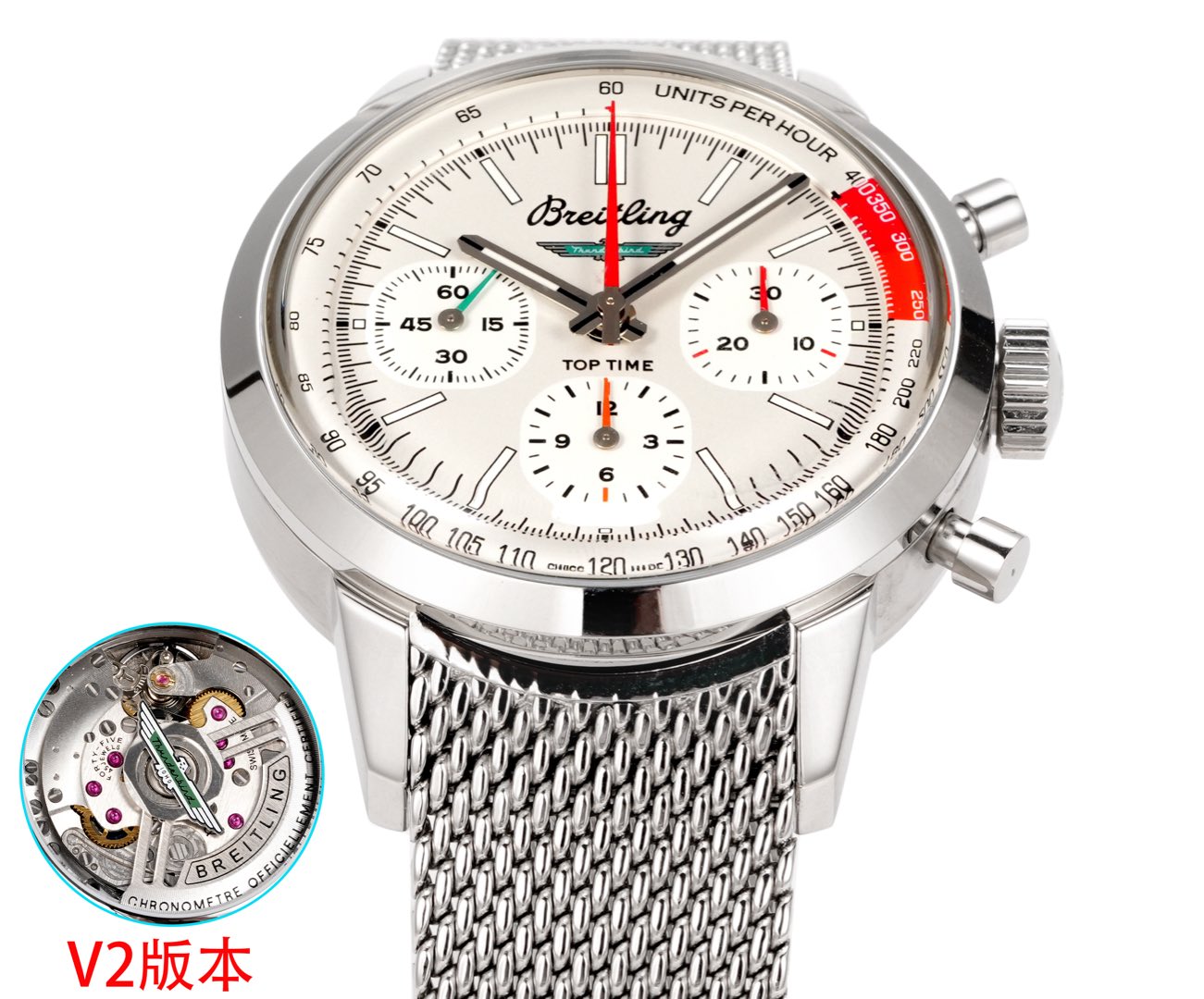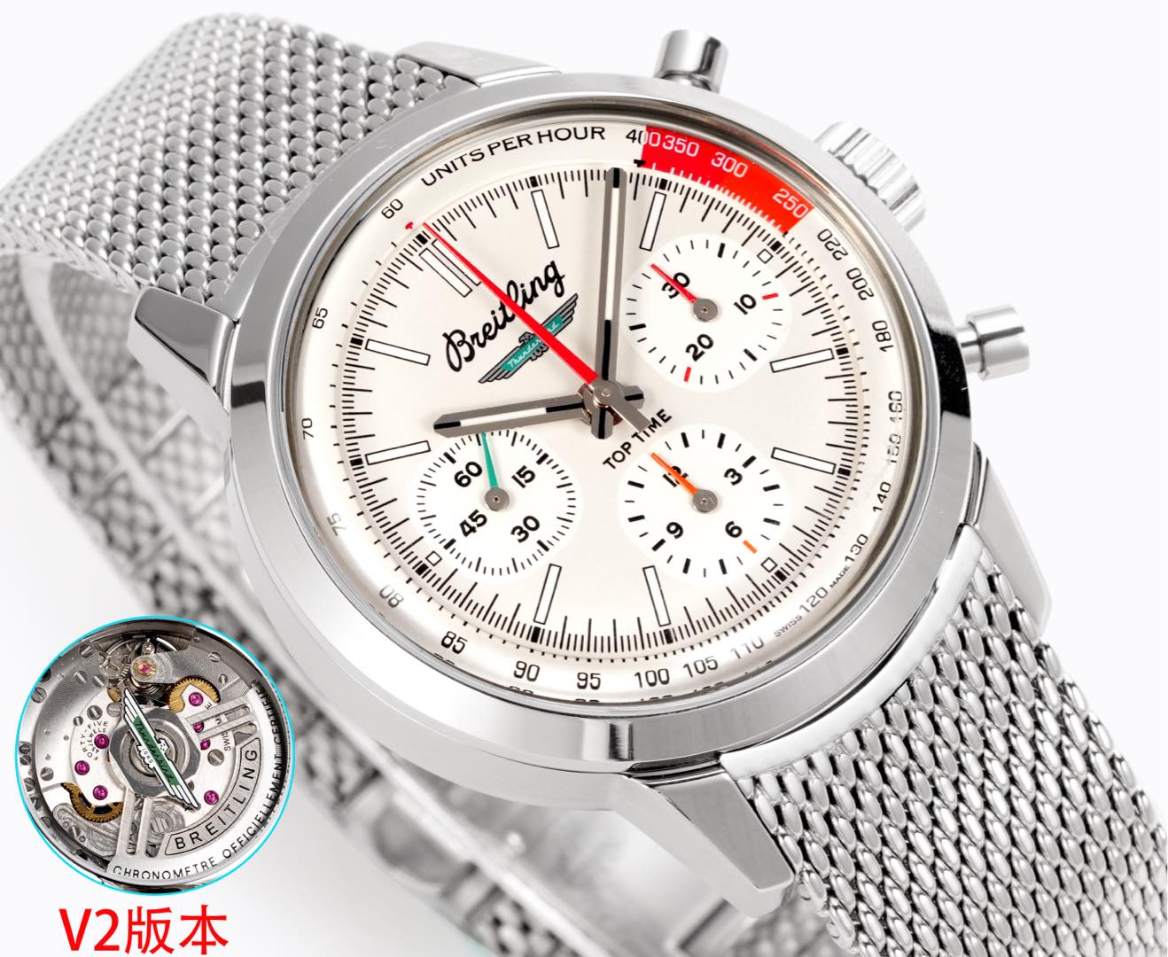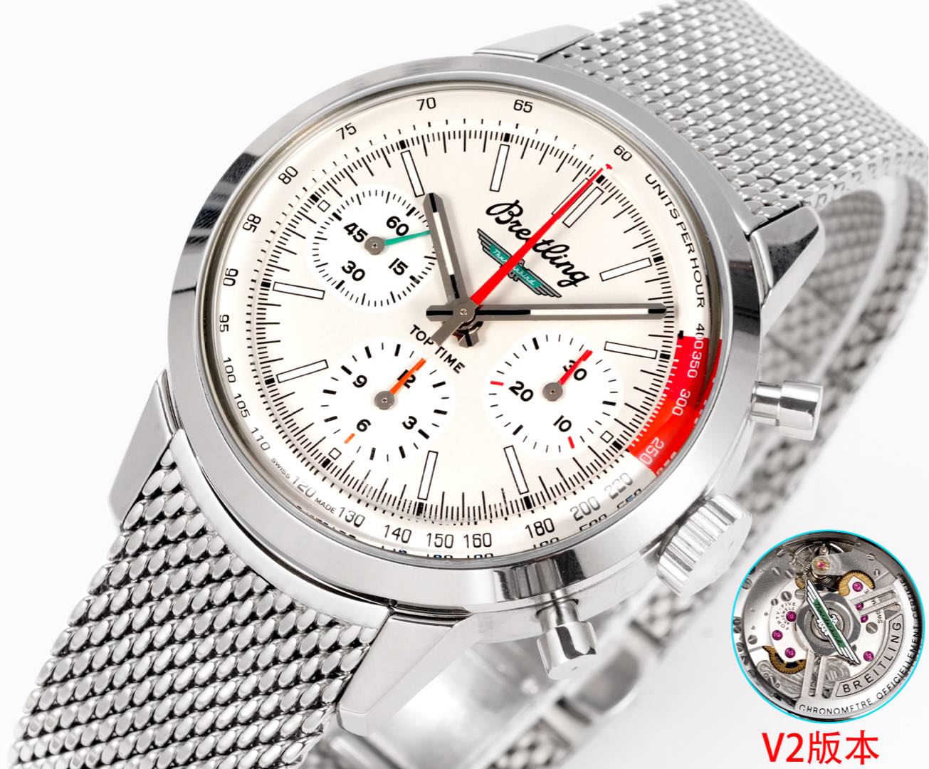 In an era where technological prowess and traditional craftsmanship converge, BLS presents its latest marvel: the V2 Series of the iconic Breitling B01 Chronograph from the TOP TIME collection. Renowned for elevating watchmaking with bold colors and precision engineering, this iteration is unmistakably a unique chronograph.