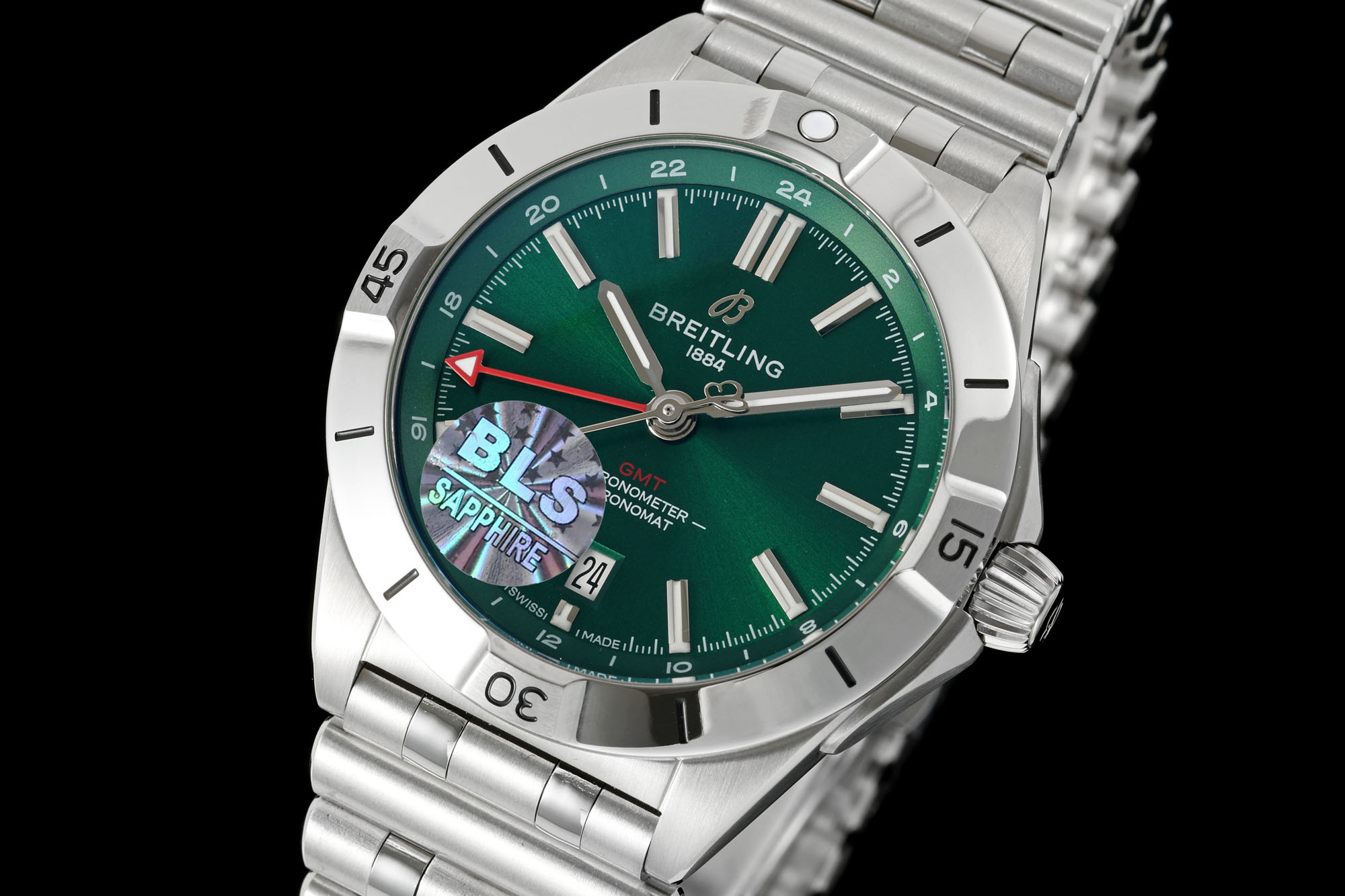 The Chronomat Automatic GMT 40 is a masterclass in design equilibrium. The dial’s subtle hues are expertly complemented by the lustrous stainless steel case and bracelet, creating a versatile look that pairs seamlessly with any attire, be it a casual day out or a formal evening gathering. Noteworthy is the bullet chain stainless steel bracelet, crafted with meticulous attention to detail. This particular bracelet sets a new standard, distinguishing itself from the generic market options through a costly and precise molding process, replicating the original’s intricate elements with impressive fidelity.