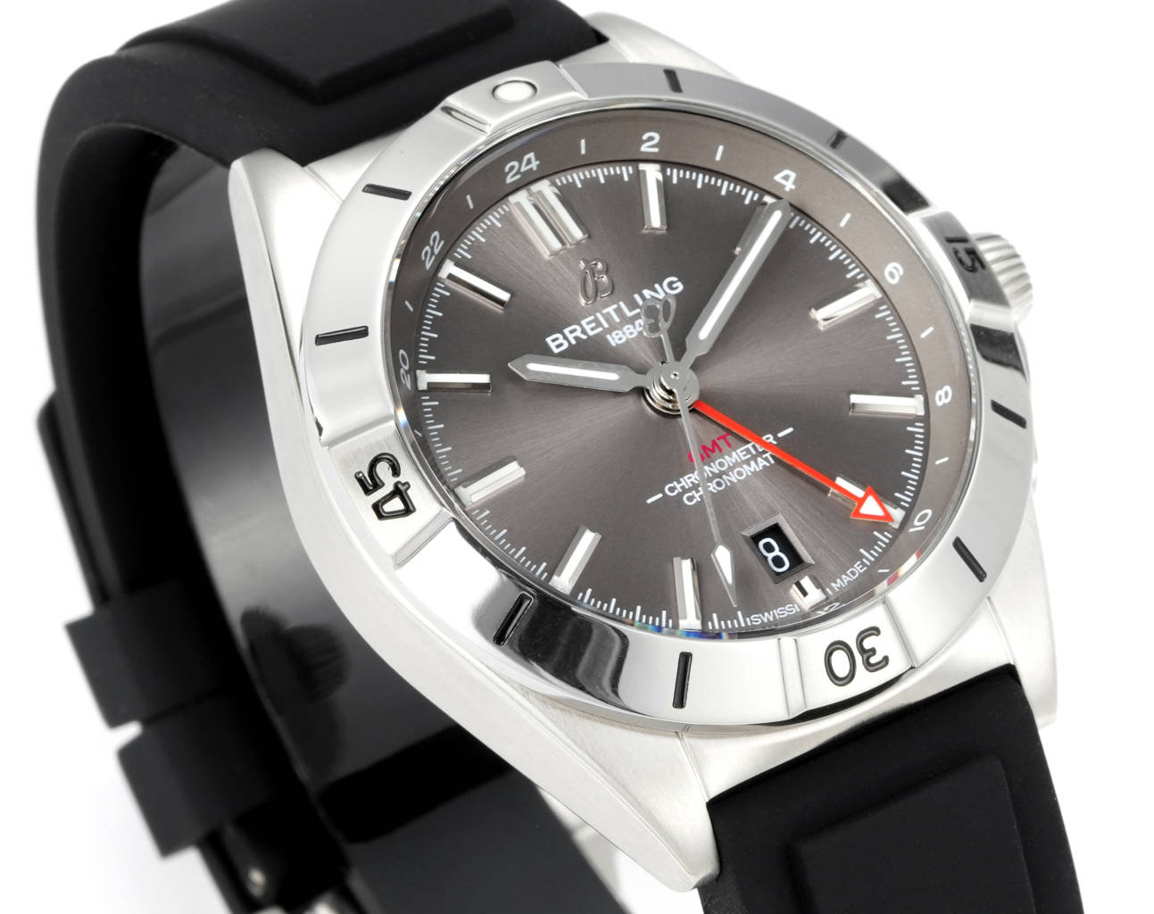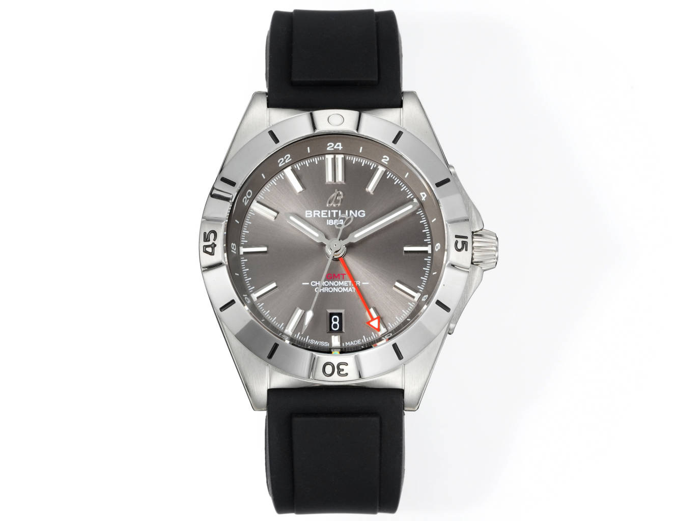 Measuring 40mm, the Chronomat Automatic GMT 40 is tailored to sit comfortably on the wrists of its intended audience, including Asian and Chinese men who often appreciate a more moderately-sized watch. The rubber strap further enhances comfort and offers a snug fit that’s ideal for prolonged wear, adapting to the contours of the wrist seamlessly.
