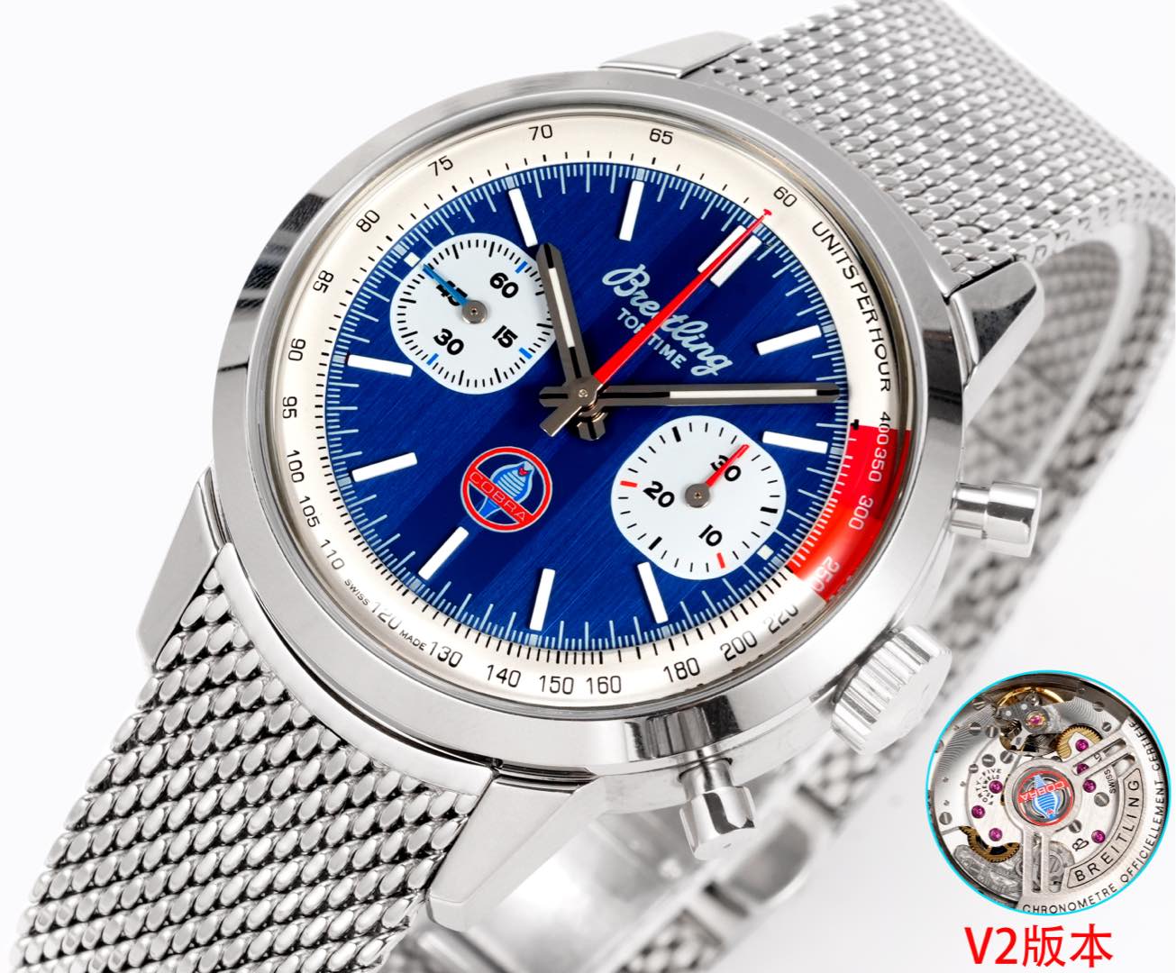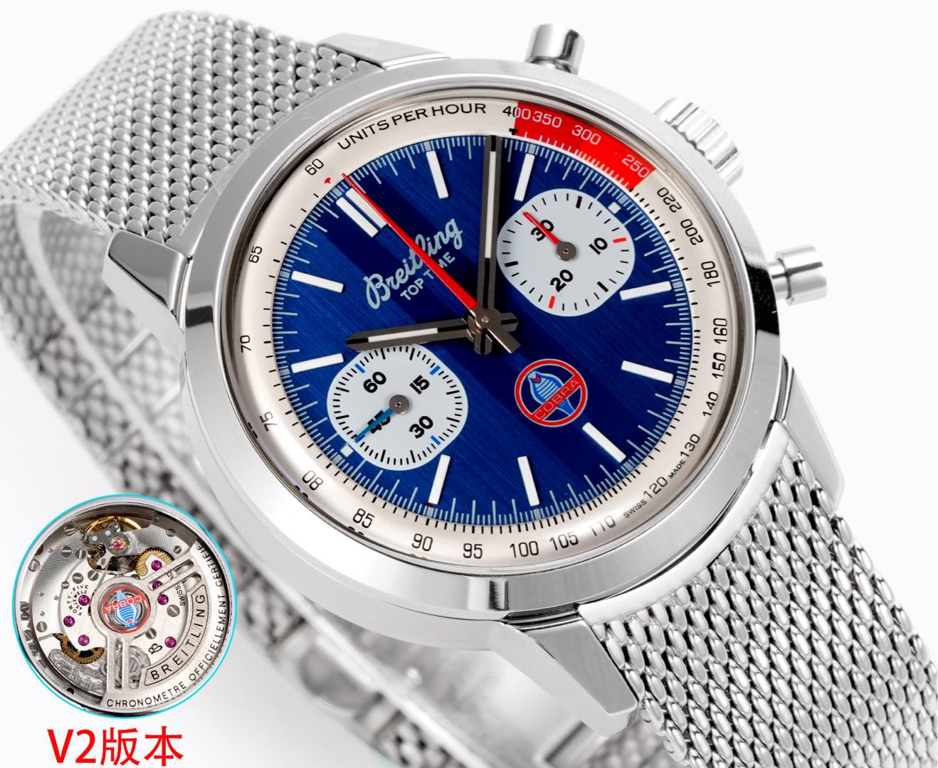 The BLS V2 Collection is no ordinary ensemble. It features the iconic TOP TIME series adorned with vibrant chronographs that speak to both traditionalists and modernists. At 41mm, these watches strike the perfect chord of distinctiveness and comfort, blending classic charm with contemporary tastes. The case back features unique decorations, a testament to Breitling’s relentless pursuit of aesthetic and technical brilliance.