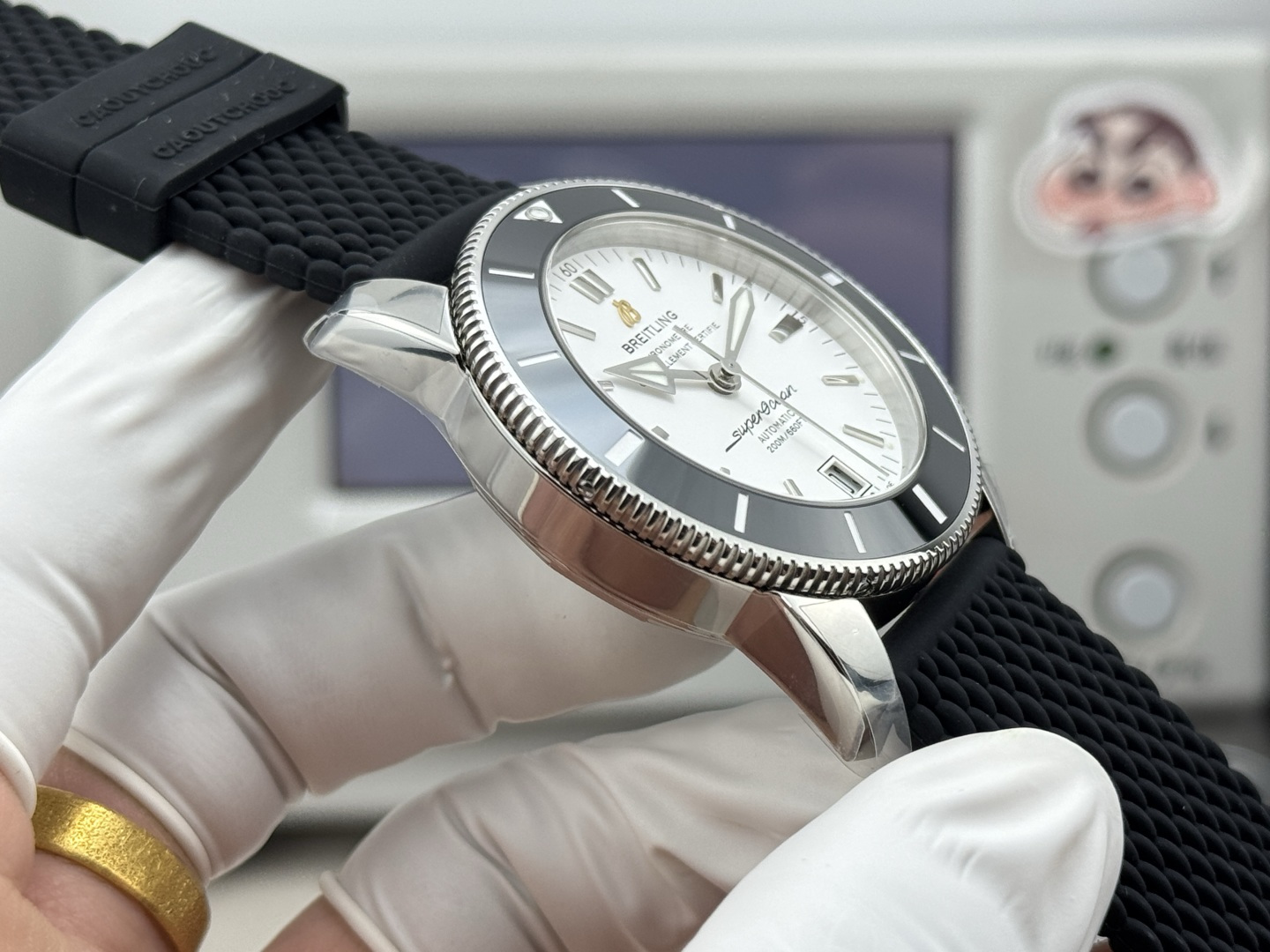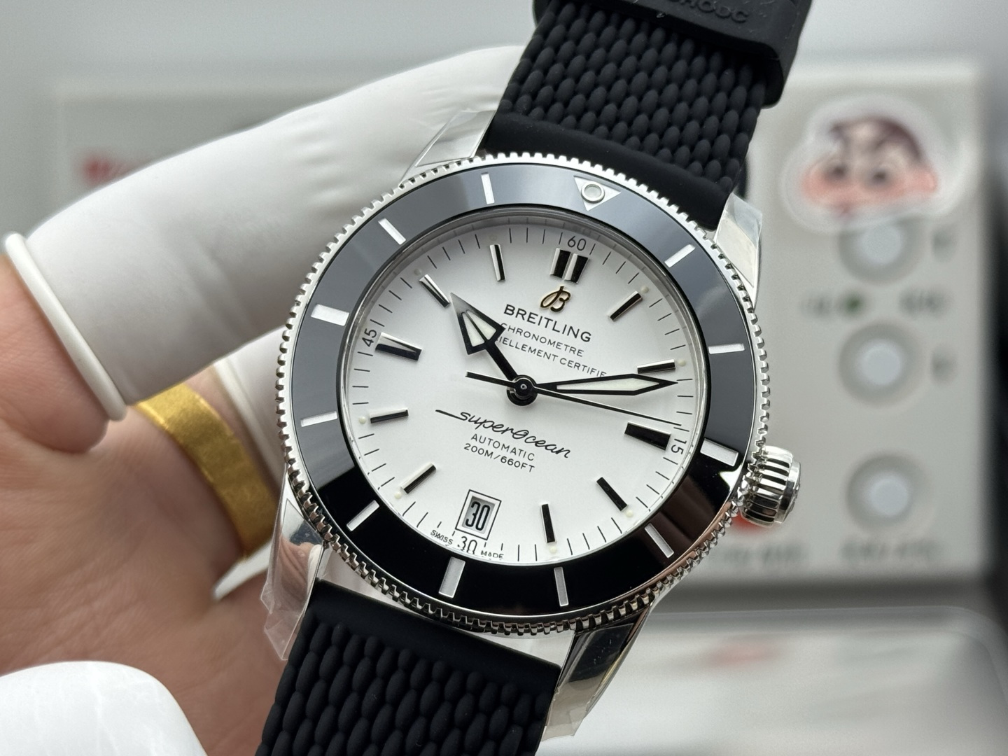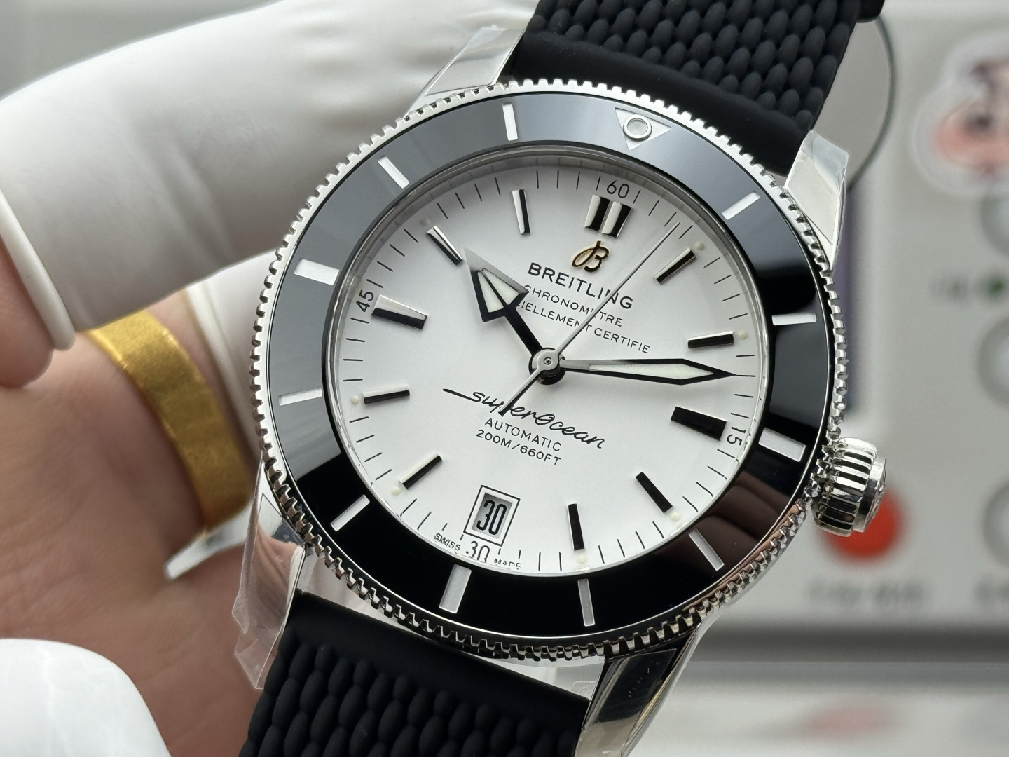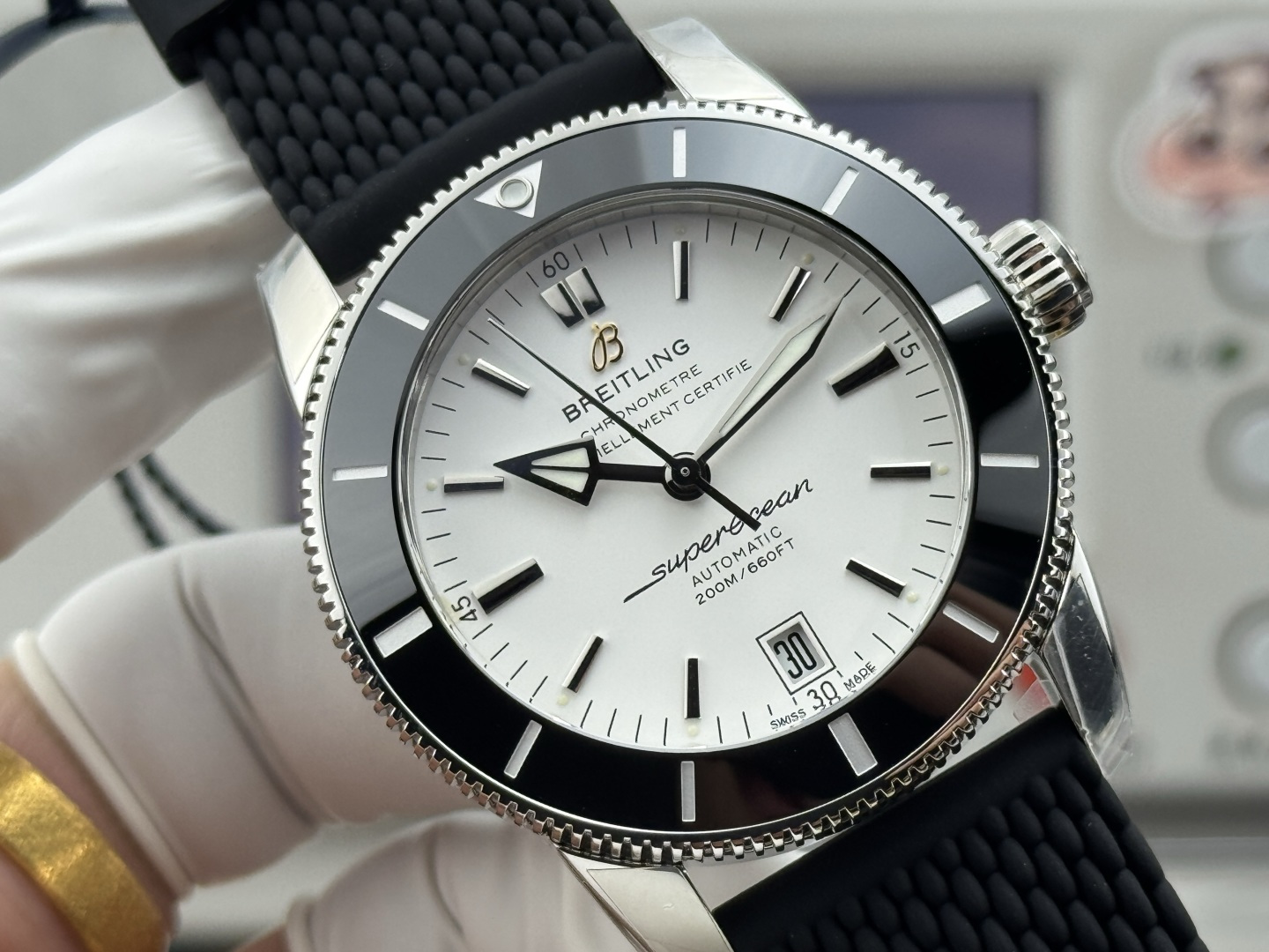The Superocean Heritage II, with its robust 42mm design, is encased in high-tech wear-resistant ceramic. This choice of material isn’t just cosmetic; it ensures durability and longevity, essential for a dive watch meant to endure the harsh conditions of the ocean. Beneath the ceramic bezel lies a unidirectional rotating steel bezel, crafted with 120 teeth precision using advanced CNC technology. This meticulous engineering results in a product that is not only functional but also a work of art, reflecting Breitling’s dedication to excellence.