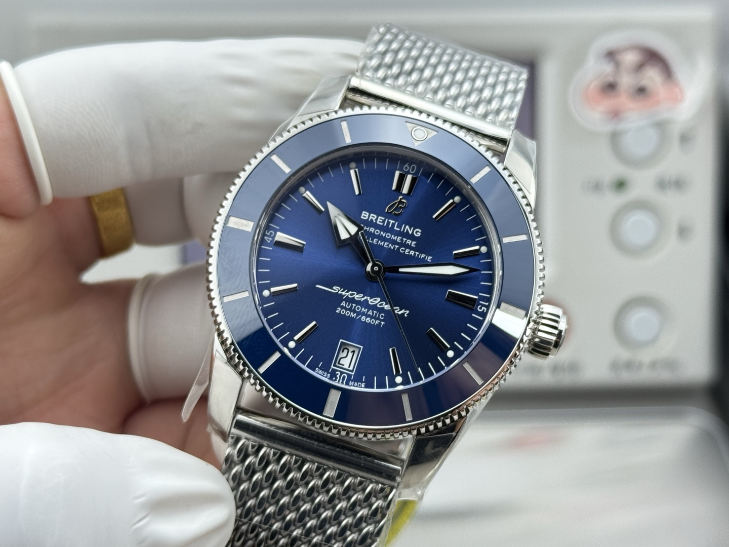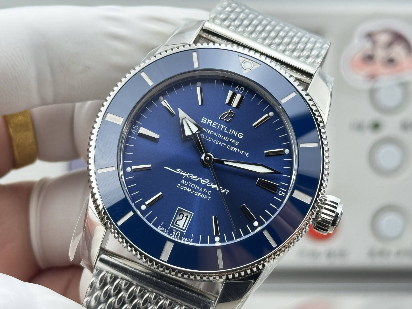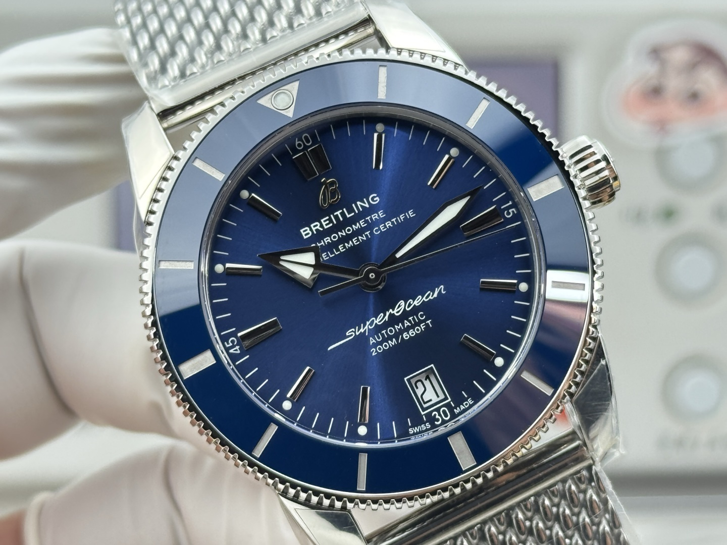 The Superocean Heritage II 42mm is more than just a watch; it’s a testament to the marriage of modern technology with timeless design. The bezel, made from high-molecular wear-resistant ceramic, offers both durability and a sleek, polished finish. Beneath this ceramic layer is a unidirectional, 120-tooth rotating stainless steel outer ring, precision-machined and polished using advanced CNC technology. This ensures not only robustness but also a tactile smoothness that elevates the user experience. The design also features uniquely crafted hands with powerful luminescence, guaranteeing optimal readability in low-light conditions.