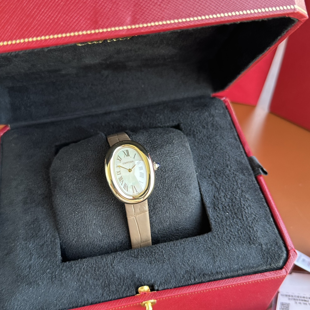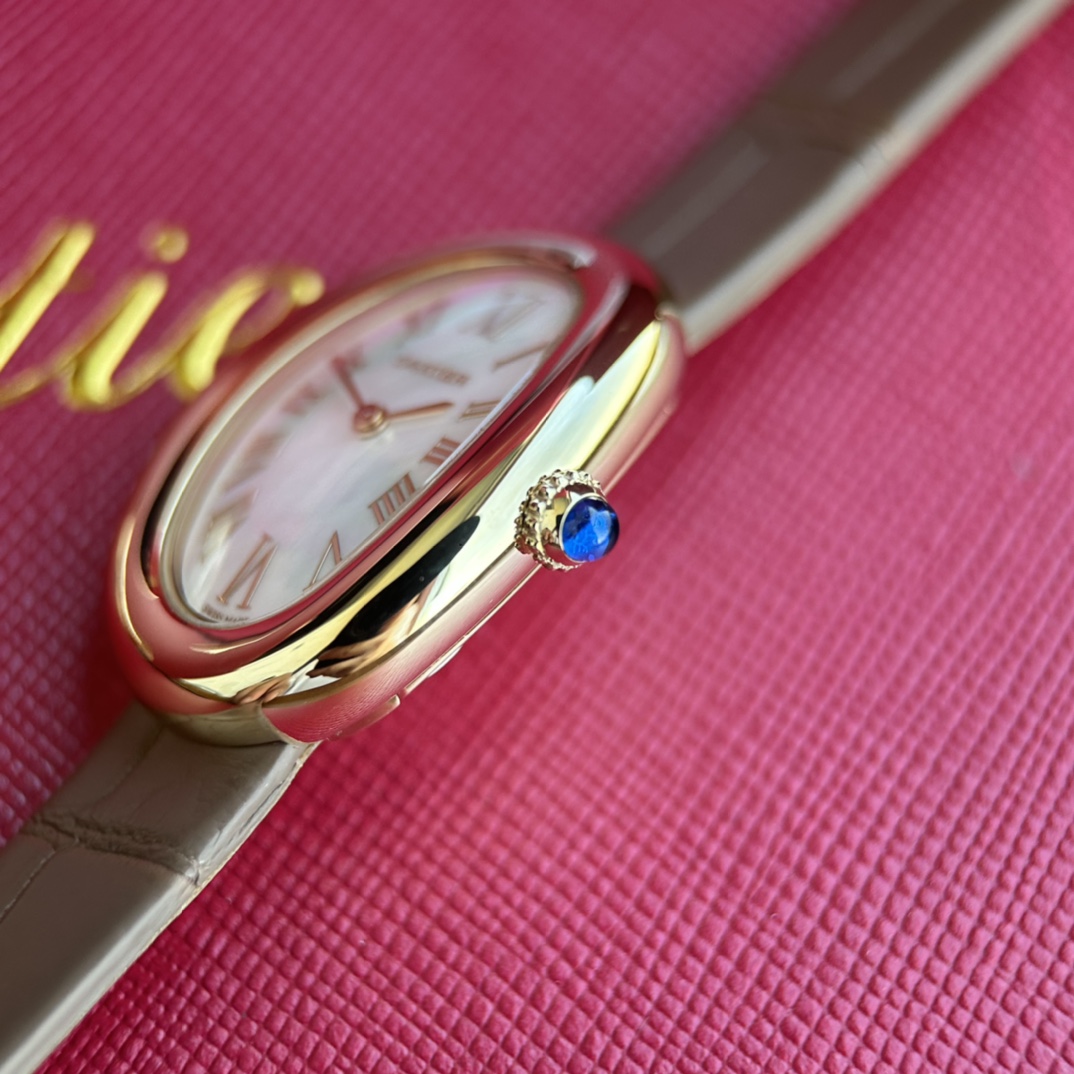 Cartier’s strategic use of materials is a testament to the meticulous craftsmanship that distinguishes its work. The pure American alligator leather strap paired with a golden pin-buckle clasp is not merely a detail—it represents the quintessence of luxury. The watch’s unique dimensions of 31.4mm by 23.1mm, with a thickness of 6.9mm, speak to its distinctive design that defies traditional watchmaking norms. Such specifications make the watch an unobtrusive yet powerful accessory, suitable for everyday wear and extravagant evening attire, offering a versatility that few luxury watches can claim.