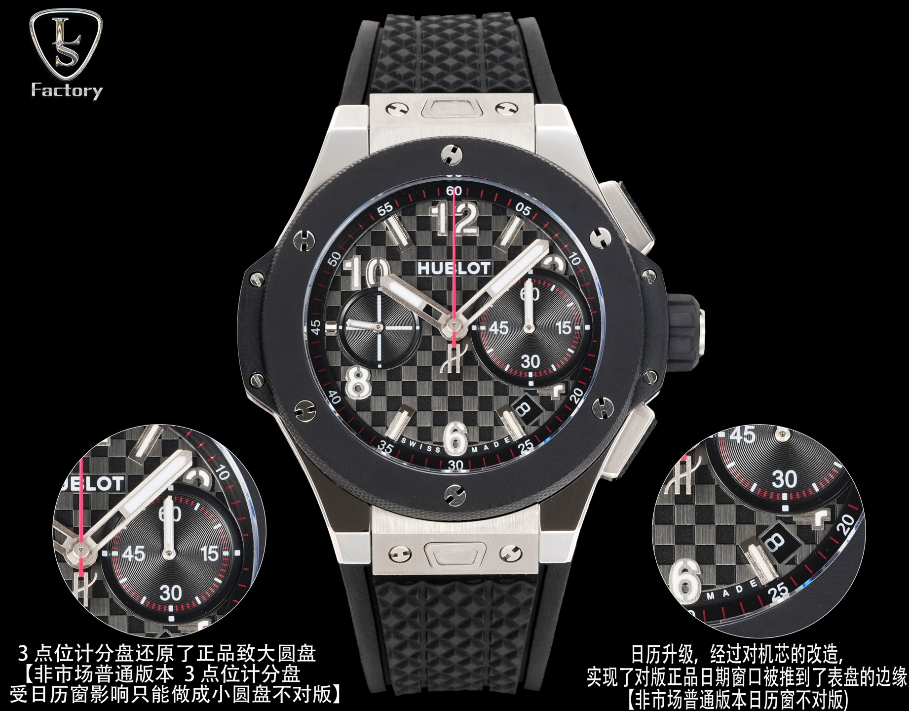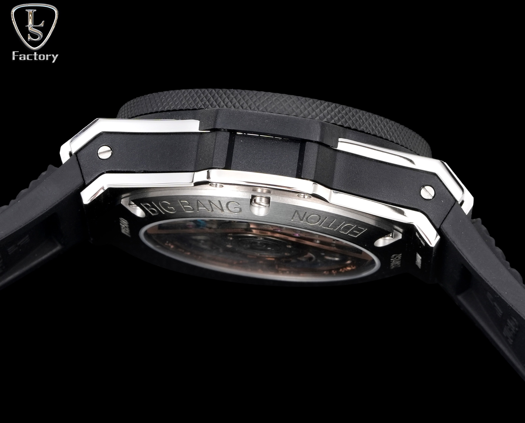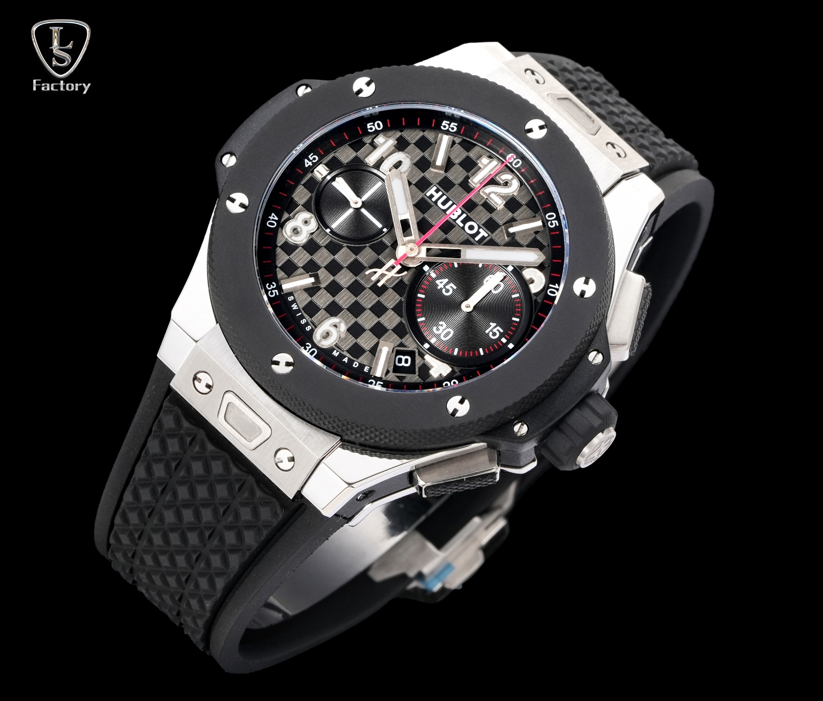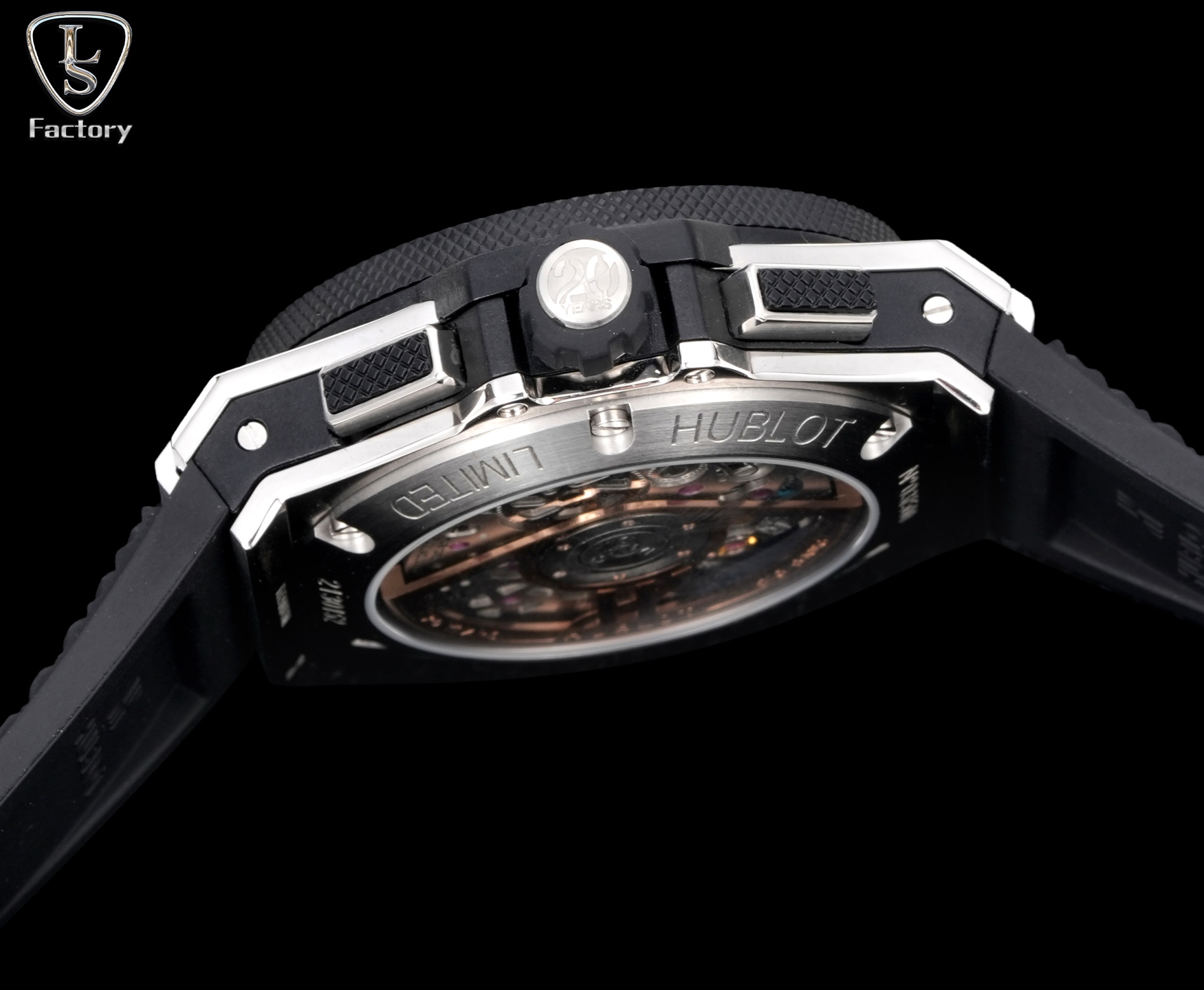 One of the most noteworthy upgrades in this model is its calendar feature. Unlike typical market versions that inaccurately position the date window, this edition has successfully positioned the window at the edge of the dial, closely resembling genuine Hublot designs. Furthermore, the watch preserves the integrity of the large sub-dial at the 3 o’clock position by overcoming challenges faced by ordinary versions whose sub-dials are compromised by the date window.
