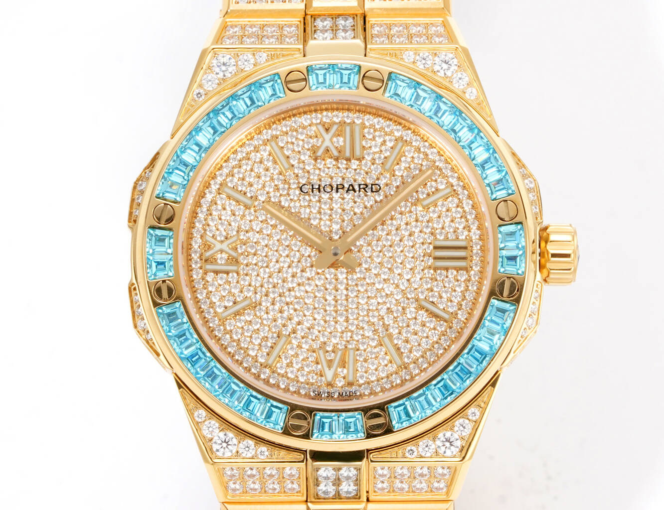 In the realm of luxury watches, the Chopard Alpine Eagle stands as a beacon of modern craftsmanship fused with timeless aesthetics. This particular model, referred to as the ‘Snow Mountain Proud Wing’ series, is renowned for its distinctive design that integrates the splendors of nature with horological excellence. Notably, Chopard’s choice to accentuate this collection with rainbow T-set diamonds and a ‘chameleon’ starry sky effect is both bold and breathtaking.