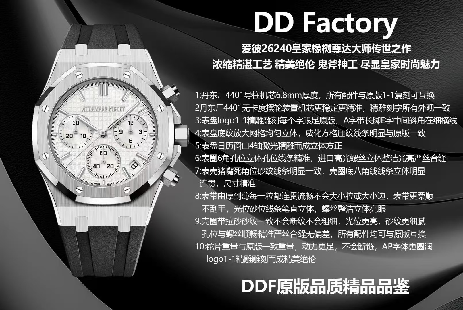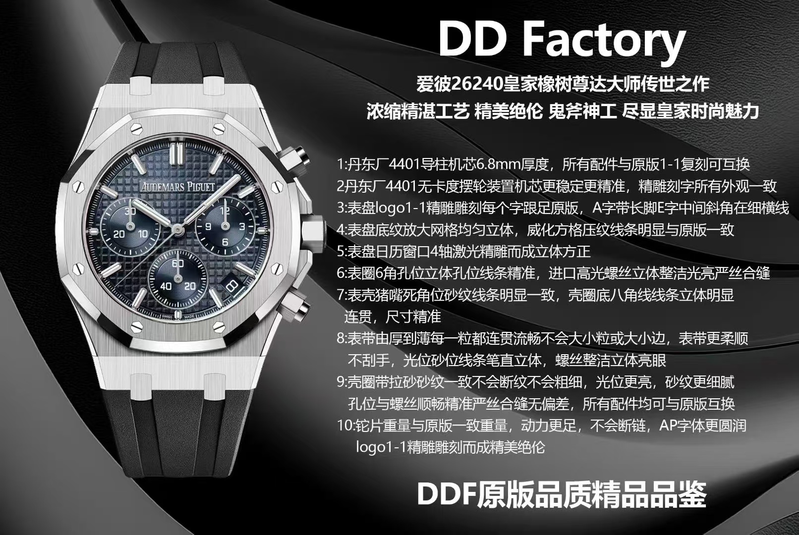 The DDF Audemars Piguet 26240 Royal Oak replica is more than just an imitation; it is a testament to the art of replication. It embodies the delicate balance between maintaining the integrity of original designs while offering an accessible alternative. In doing so, it enriches the narrative of luxury watchmaking, ensuring that its beauty and craftsmanship can be appreciated by a wider audience. In the grand tapestry of horology, the replica emerges not only as a copy but as a continuation of a storied legacy, inviting enthusiasts to experience the allure of complex watchmaking without the constraints of exclusivity.