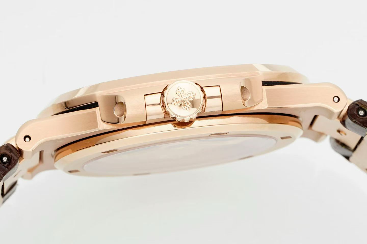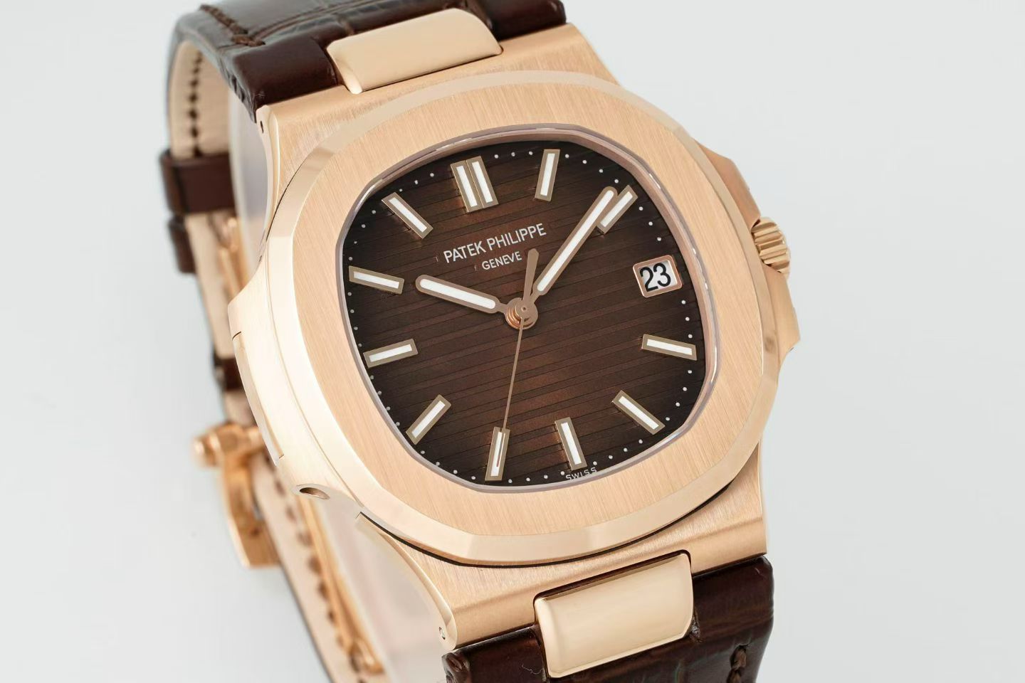 DDF’s Nautilus 5711 replica boasts a dial in a unique chocolate coffee color—a masterstroke as it reflects lighting nuances with a rich subtleness. This detail is crafted to mimic Patek Philippe’s ability to blend elegance with functionality, a signature trait that enthusiasts know and love. The horizontal grooves on the dial maintain clarity and depth, possibly appealing to those who appreciate a meticulously crafted aesthetic.
