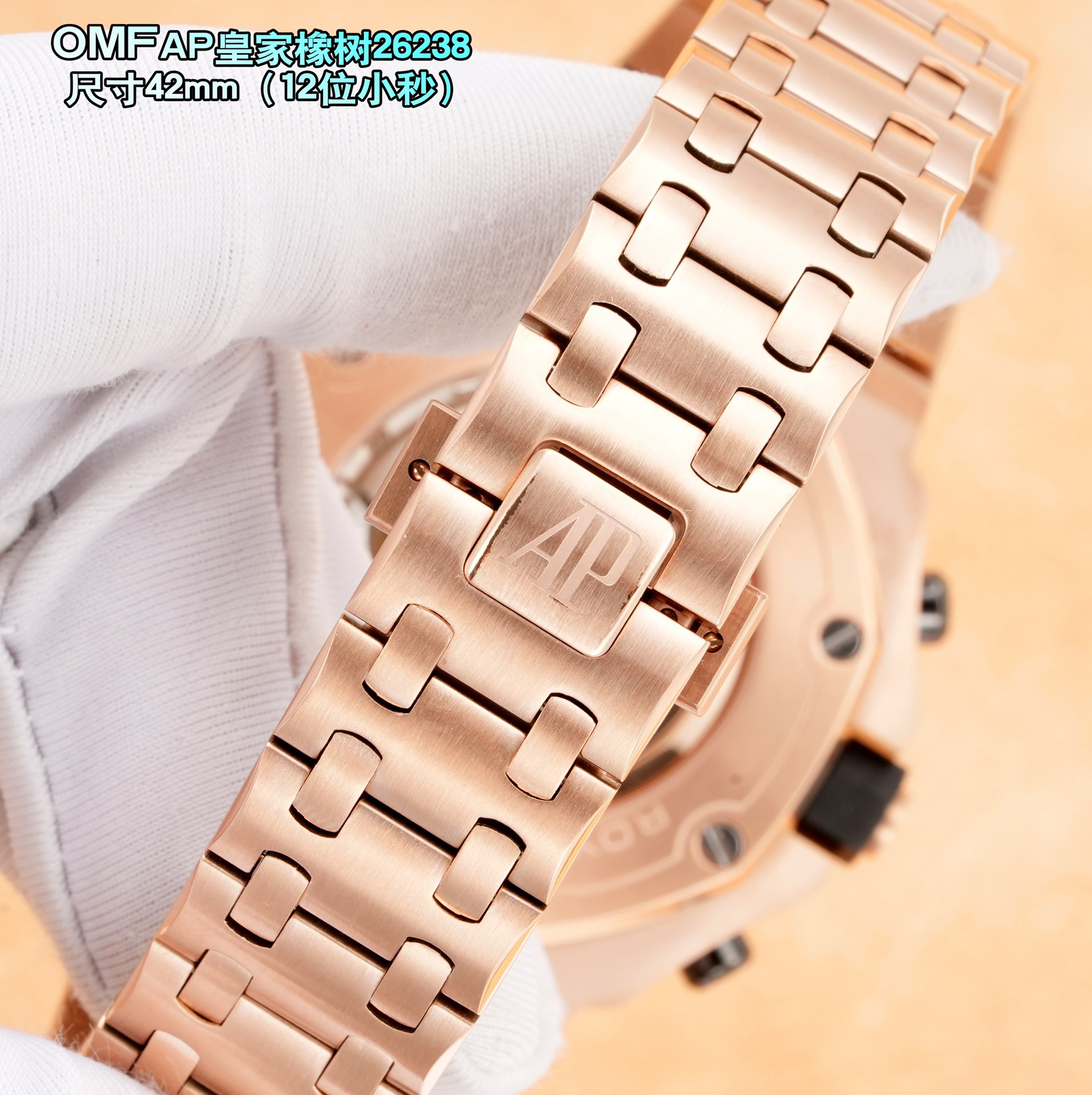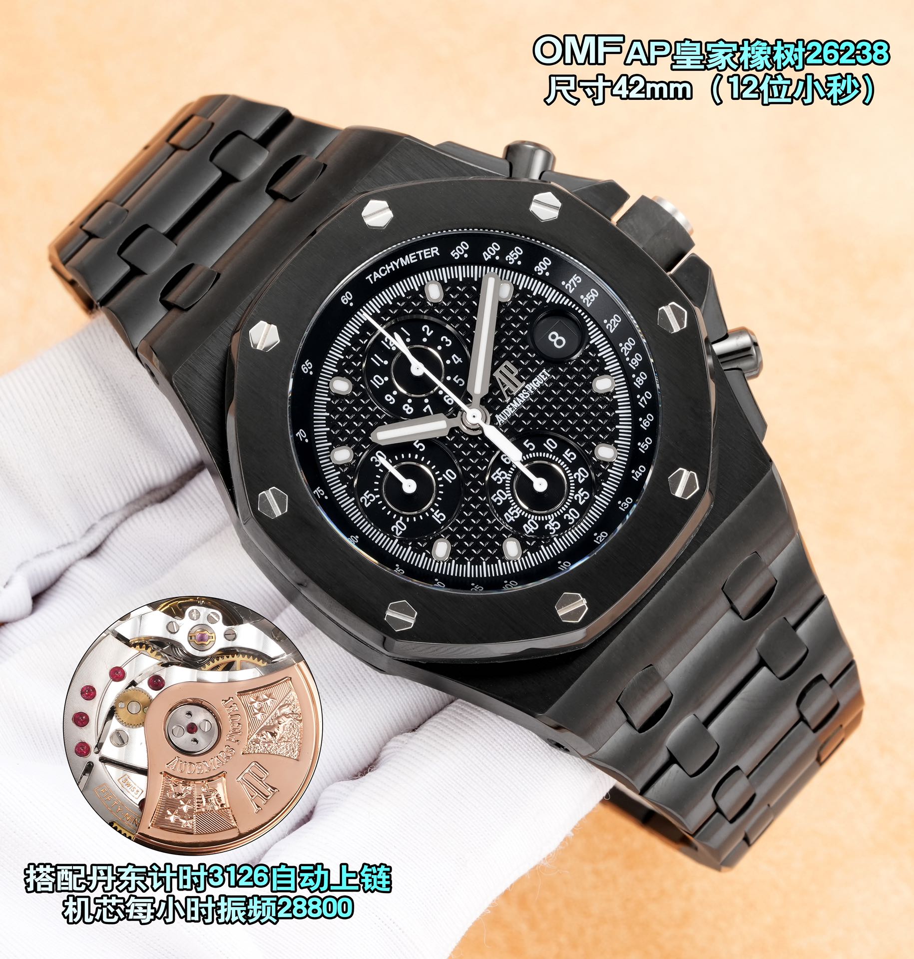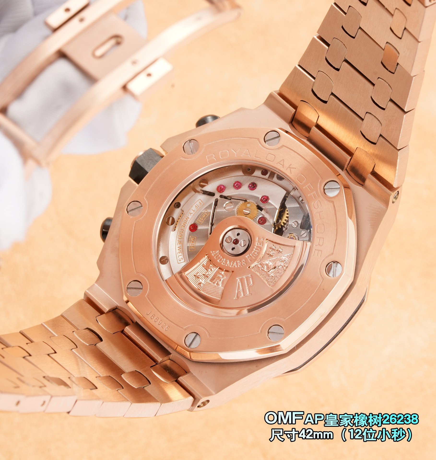 The Audemars Piguet Royal Oak Offshore 26238, a sophisticated timepiece, exemplifies the brand’s renowned capability to blend timeless design with contemporary innovations. This model, featuring a popular 42mm case diameter, is neither too grandiose nor understated, striking a delicate balance that caters to both bold and subtle tastes. It is a piece that speaks volumes with its imposing yet intricate design, capturing the essence of luxury while being practical for everyday use.