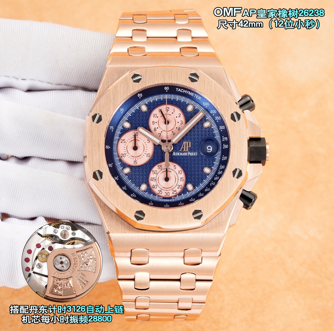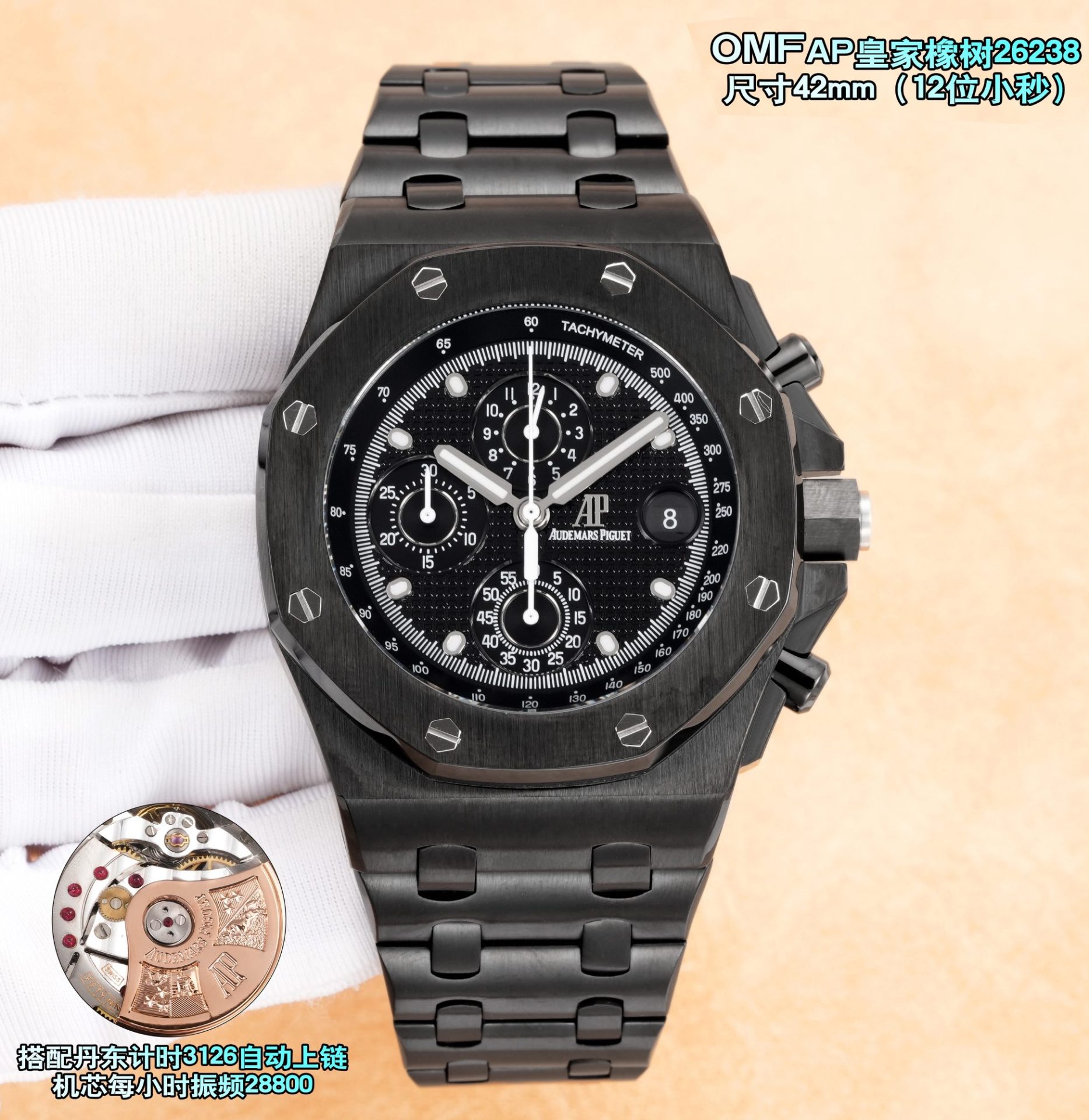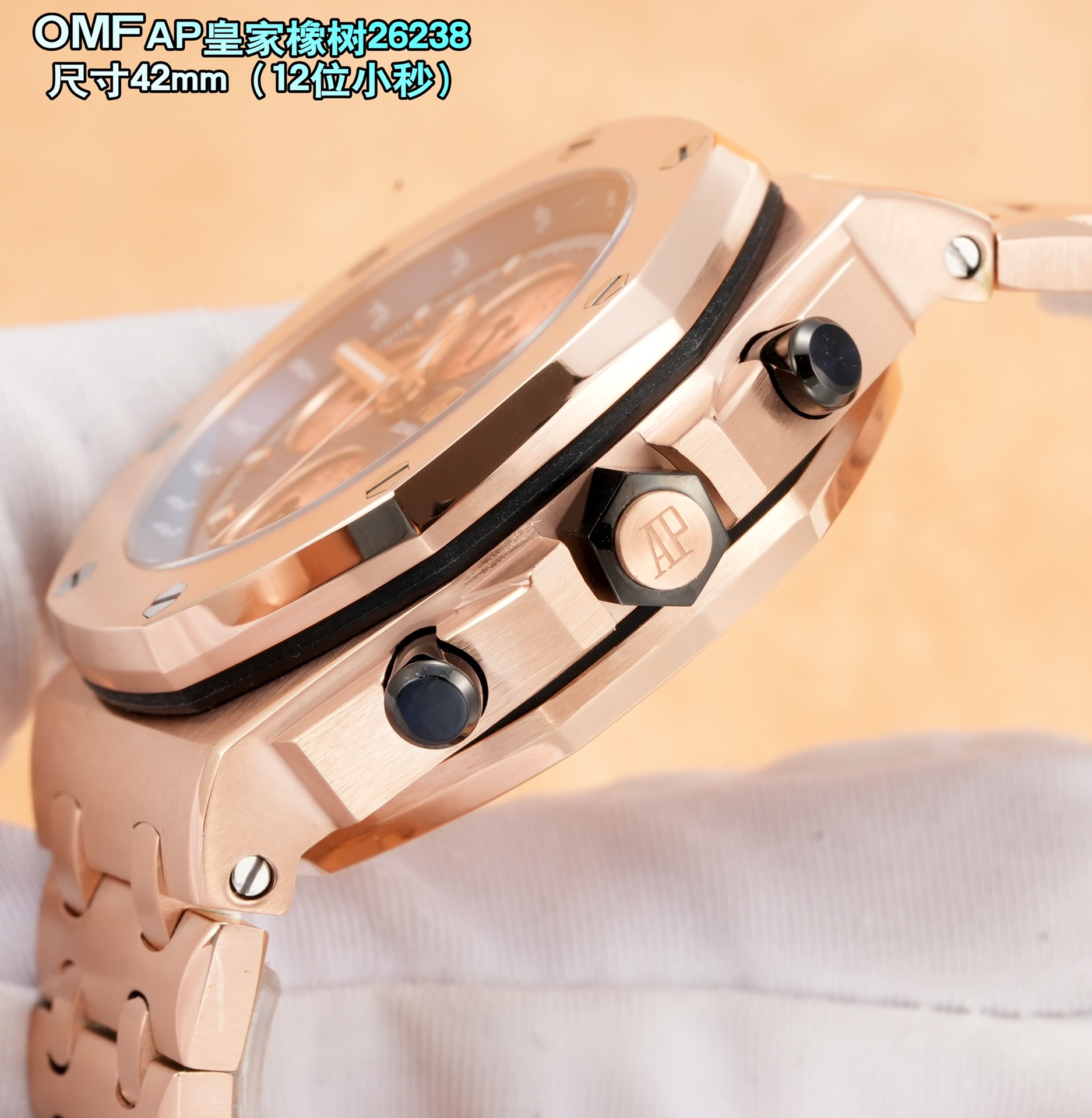 The Audemars Piguet Royal Oak Offshore 26238, a sophisticated timepiece, exemplifies the brand’s renowned capability to blend timeless design with contemporary innovations. This model, featuring a popular 42mm case diameter, is neither too grandiose nor understated, striking a delicate balance that caters to both bold and subtle tastes. It is a piece that speaks volumes with its imposing yet intricate design, capturing the essence of luxury while being practical for everyday use.