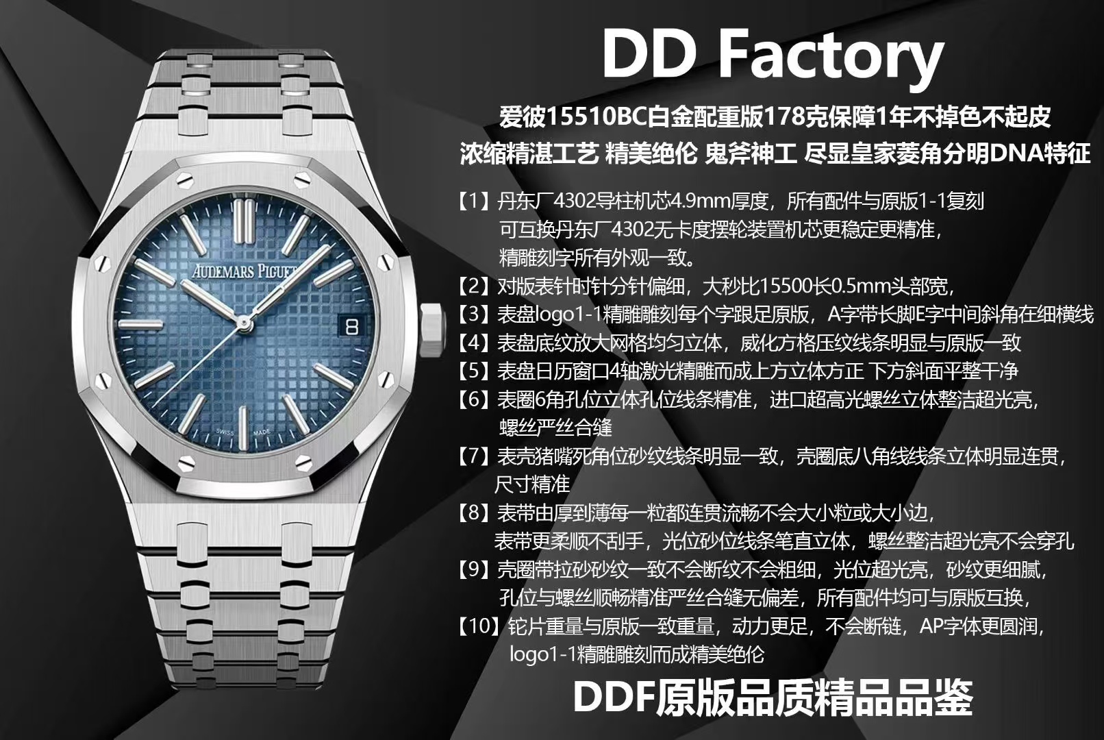 In conclusion, the DDF Audemars Piguet 15510BC replica exemplifies the tensions between luxury exclusivity and accessibility. It invites us to consider the evolving definitions of value and authenticity in the luxury market. As the replica industry continues to advance technologically, these discussions will only become more pertinent. Ultimately, whether one opts for the original or its replica, the decision reflects broader values relating to identity, aspiration, and rational consumption.