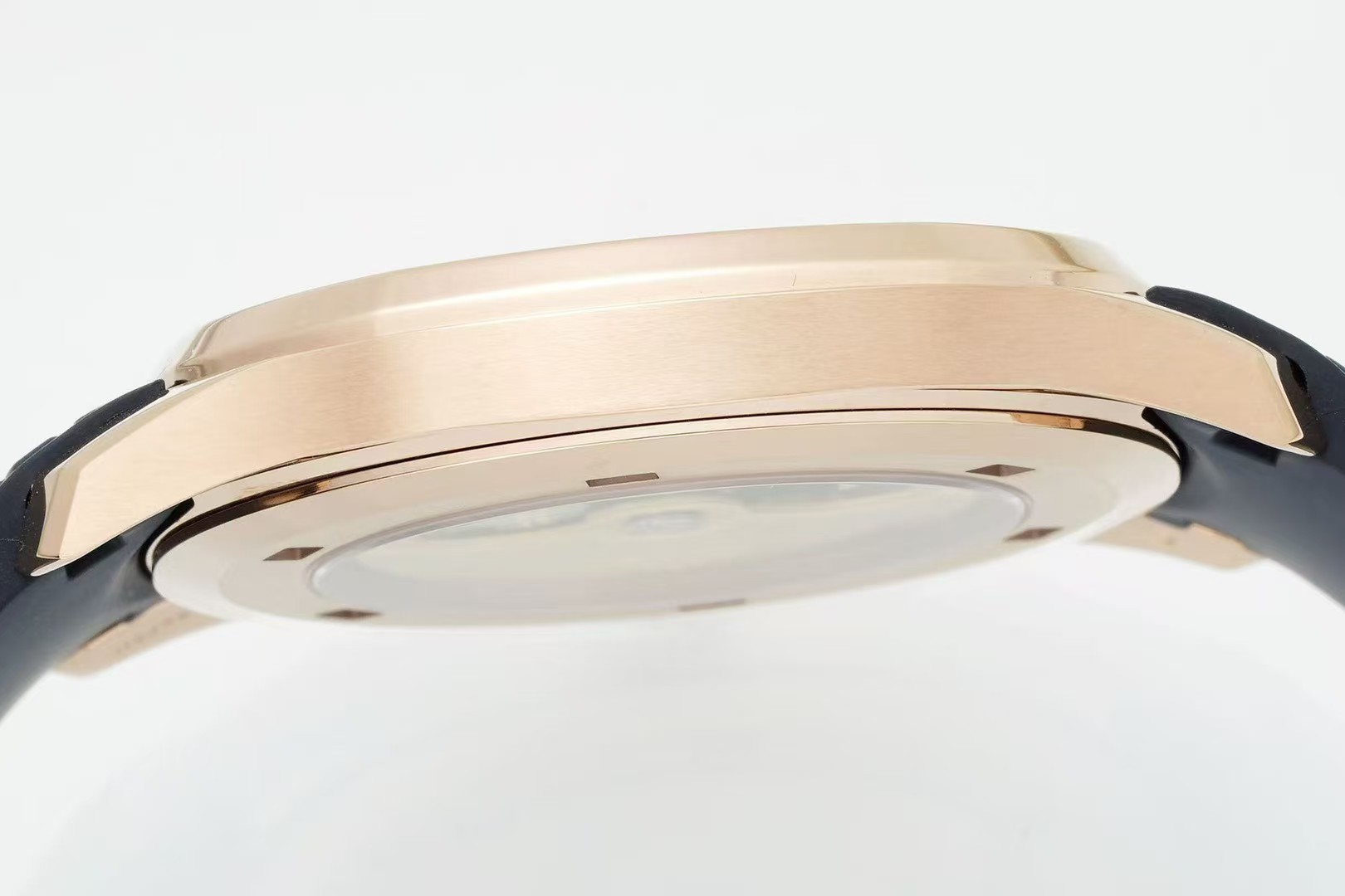 The craftsmanship extends to the imported rubber strap, characterized by its sharp, clean lines and faultless texture. Interestingly, this strap mirrors the authentic feel and can interchange seamlessly with the original, indicating an astonishing level of precision in its replication.