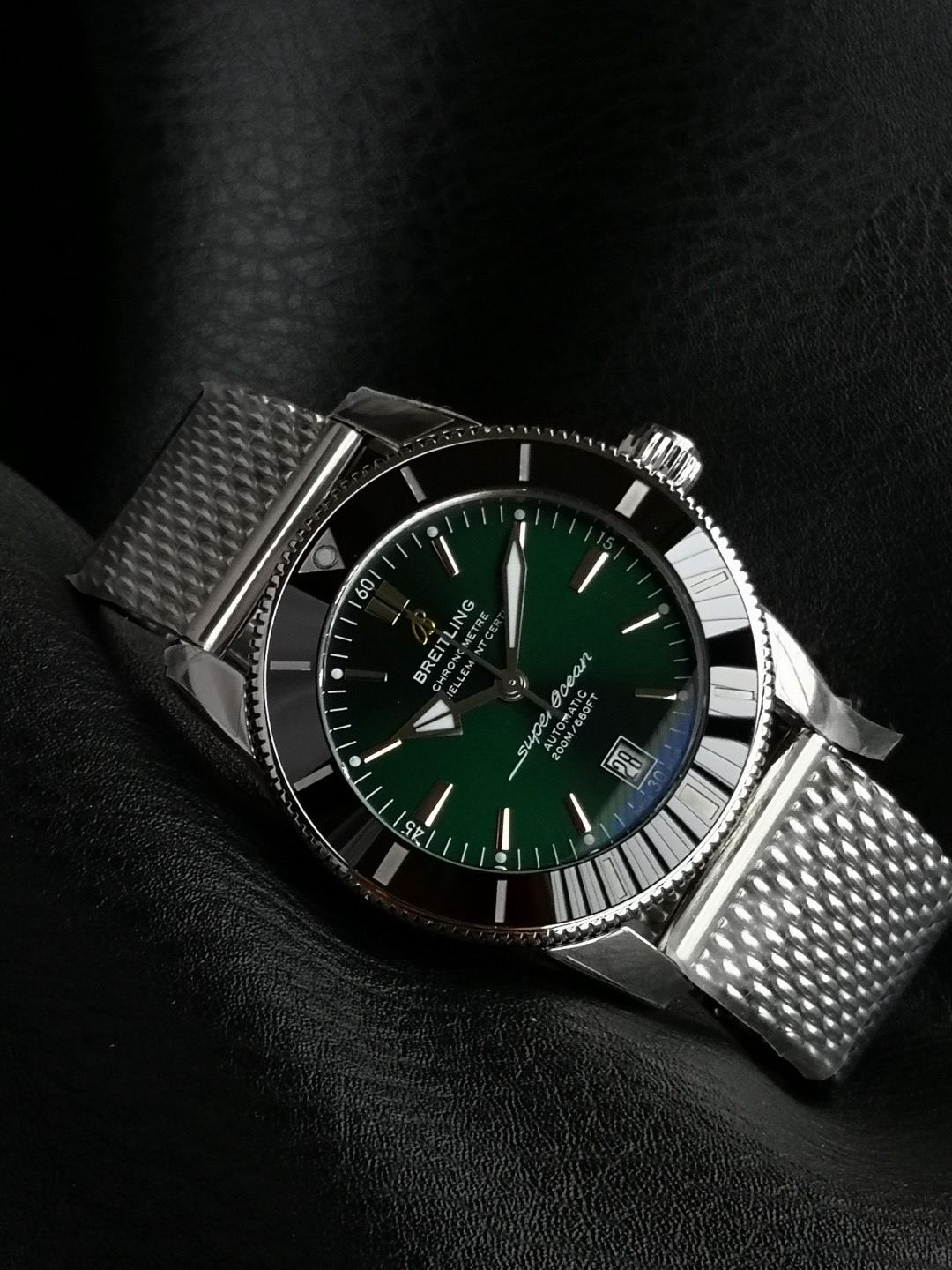 Unlike the typical rugged demeanor of diving watches, this Breitling model offers a more streamlined aesthetic. Its design draws inspiration from the original 1950s Superocean model, marrying the robust qualities of its predecessor with a contemporary flair. It’s not just a timepiece but a statement—one that encapsulates both historical prestige and modern elegance.