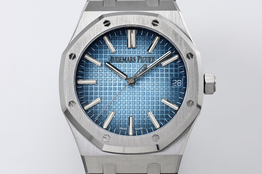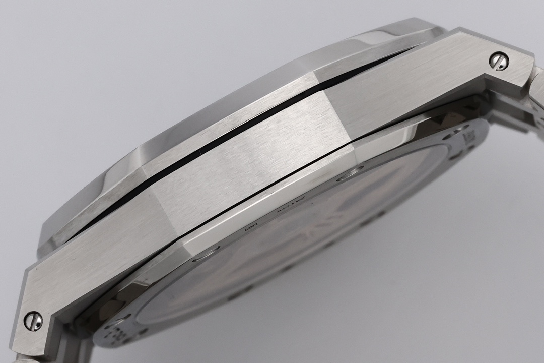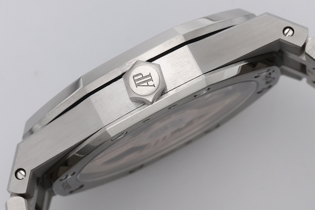 Audemars Piguet is renowned for interweaving industrial aesthetics with a refined elegance, and the 15510 series is no exception. The watch boasts a 41MM case that is a masterpiece of brushed and satin-finished accents. Its design is accentuated by the octagonal bezel accompanied by eight conspicuous hexagonal screws—an iconic design element that not only heightens the watch’s recognizability but also celebrates its industrial roots. The thoughtfully thinned watch body ensures a snug fit against the wrist, making it a comfortable companion for daily wear while maintaining a look of sophistication and prestige.