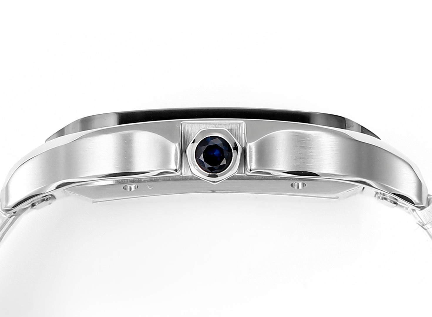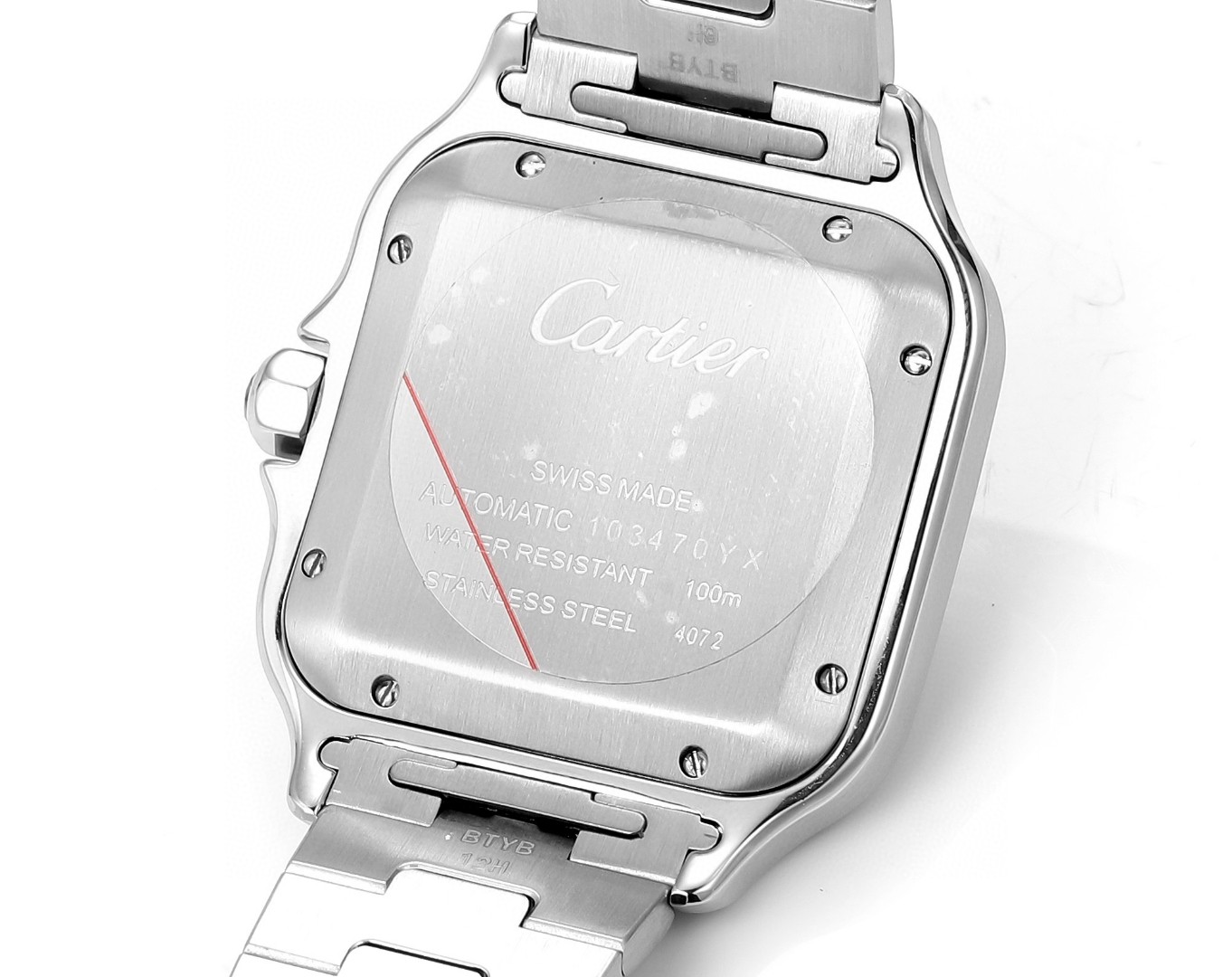 The dial, a direct reflection of the original mold, retains the aesthetic nuances that Cartier enthusiasts cherish. With Swiss craftsmanship at its core, the blue hands—crafted through a meticulous heat-bluing technique—achieve a hue almost indistinguishable from the genuine article. Complementing this is a Swiss-engineered anti-reflective white coating on the glass, which offers protection against scratches, fingerprints, and glare without leaving traces, echoing the standards of high-end watchmaking.