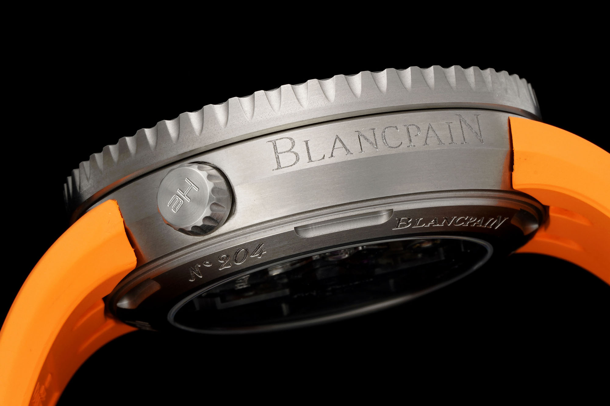 Blancpain extends personalization through high-quality rubber straps available in classic black, fresh white, or vibrant orange. Each strap option delivers a unique statement, allowing wearers to express personal style whilst maintaining the watch’s diving credentials. The white variant is a standout, adding a touch of sophistication, while the orange offers a bold, summery vibe that harmonizes with the dial’s accents.