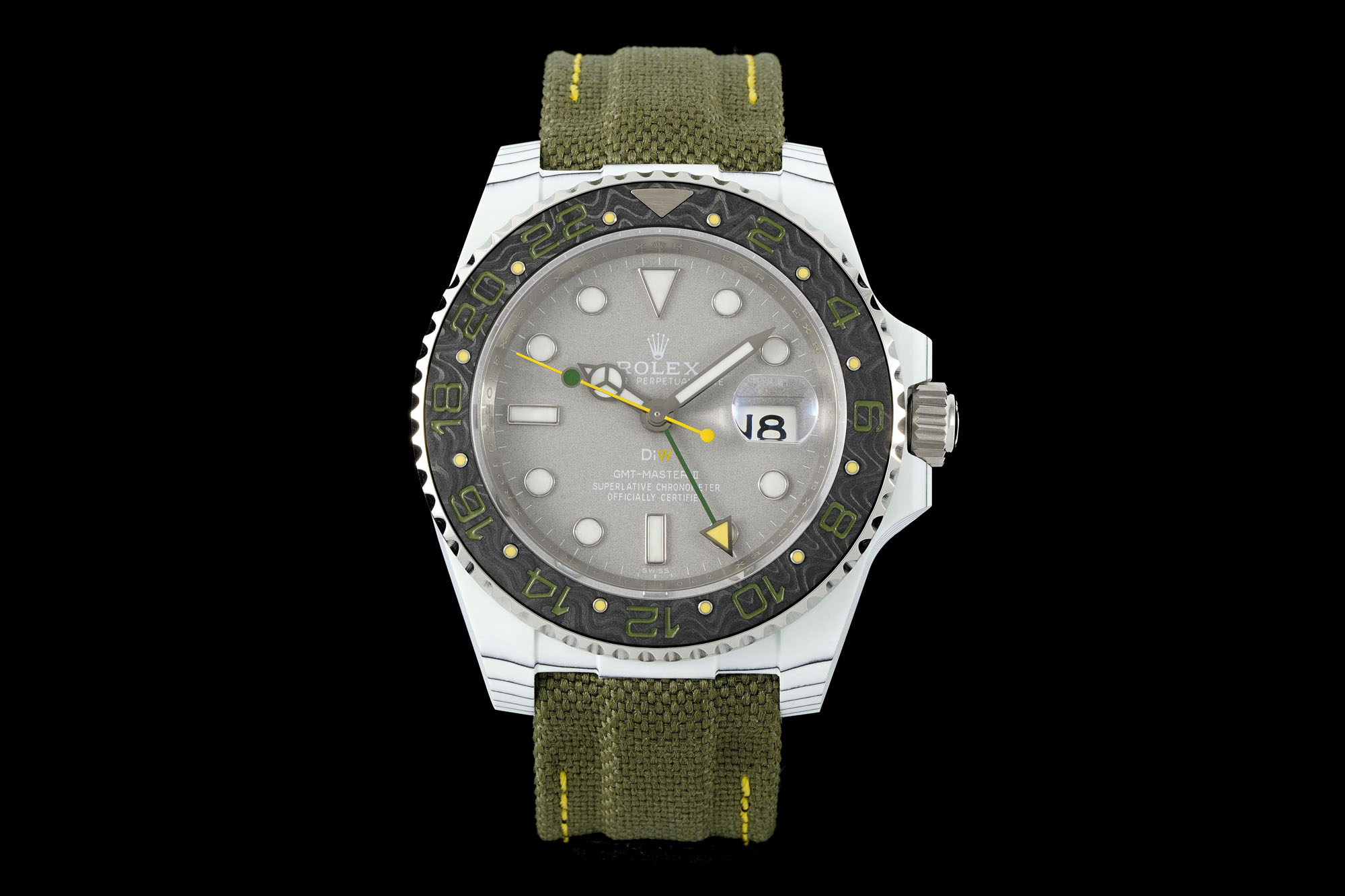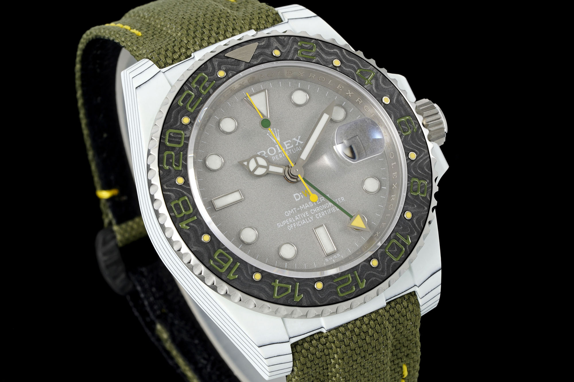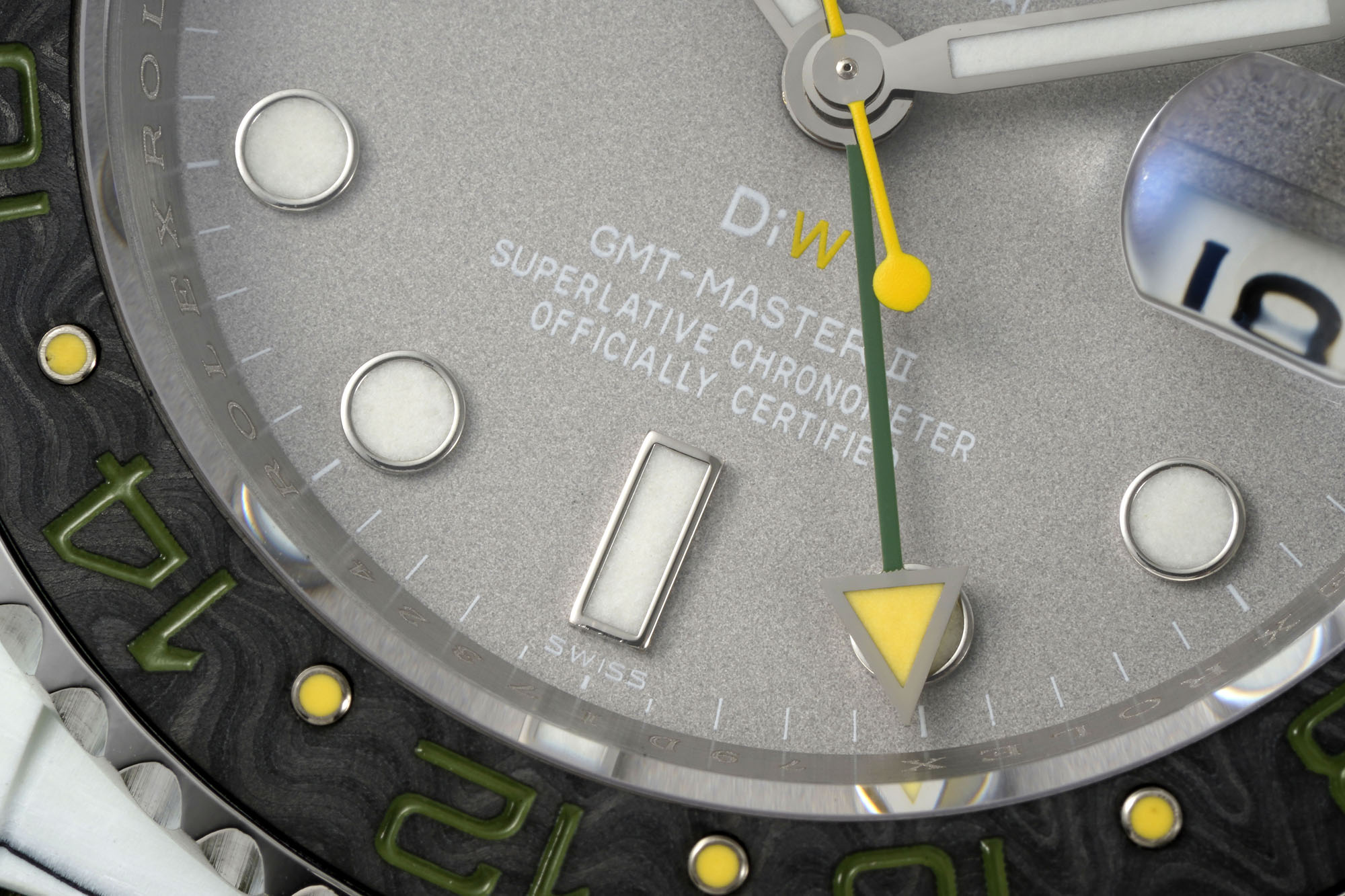 An eye-catching upgrade lies in the bezel’s use of carbon fiber steel pinning technology, moving away from conventional oil-filled bezels. This change isn’t merely cosmetic—it’s a testament to DIW’s dedication to refining their craft, offering a texture and visual depth that aficionados crave. The bezel’s refined touch is a statement of luxury, enhancing the tactile experience even in replica models. This material choice opens discussions on sustainability and innovation in watchmaking, as carbon fiber and steel pinning represent advanced, durable materials with ethical considerations in their sourcing and environmental impact.