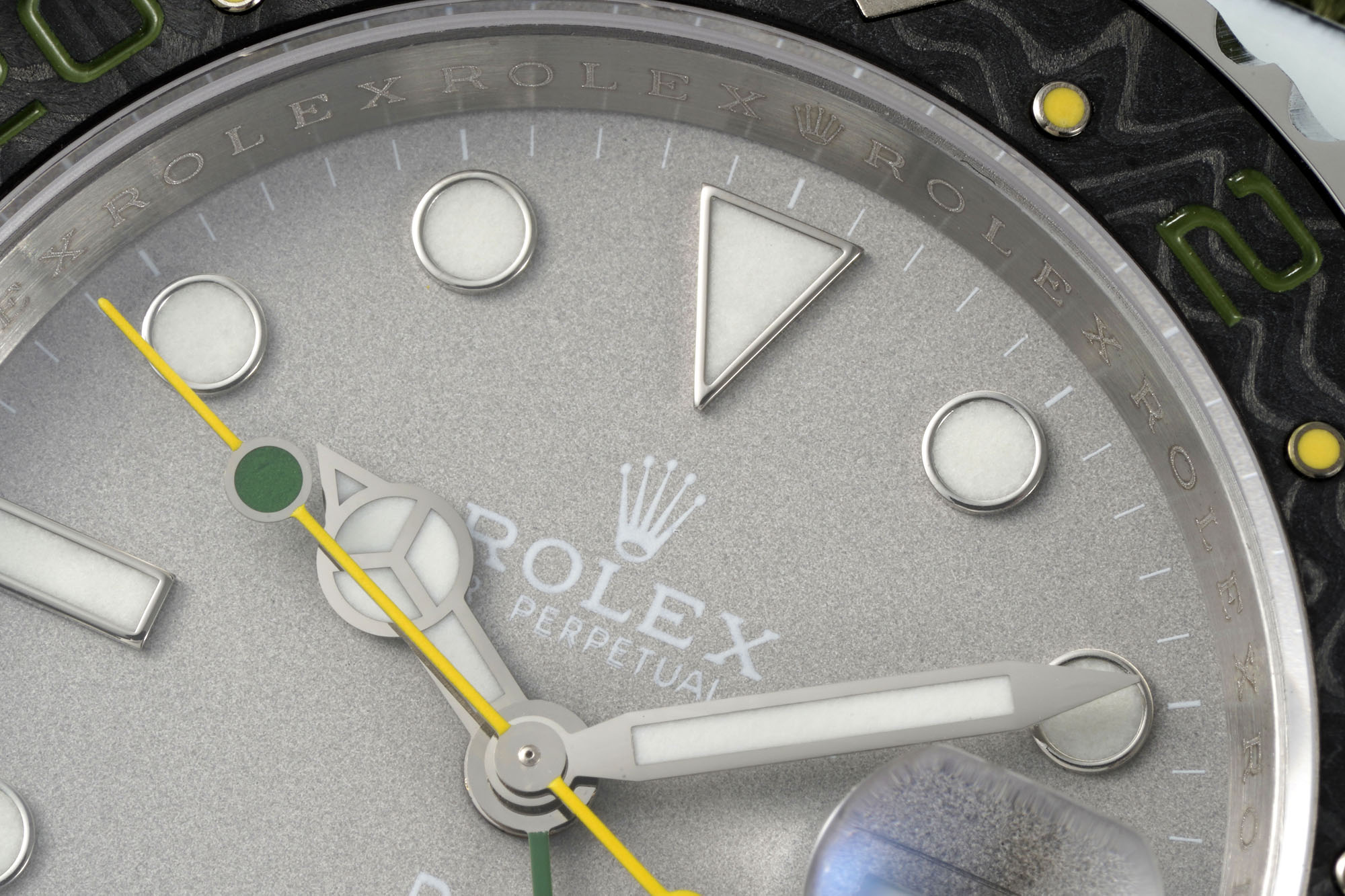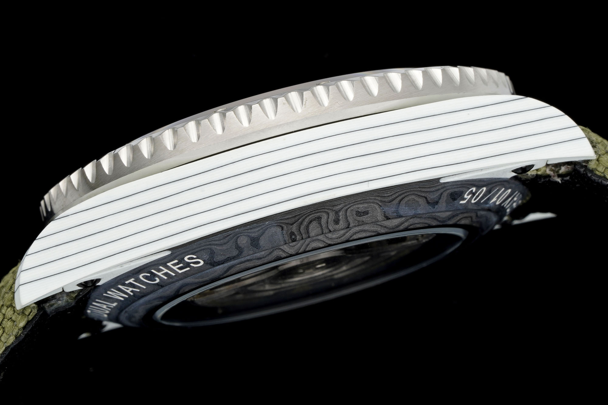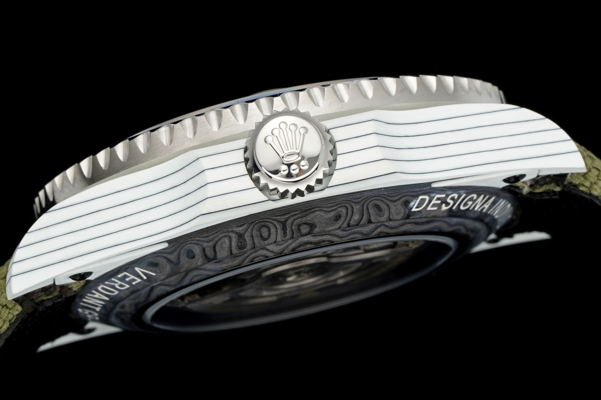 An eye-catching upgrade lies in the bezel’s use of carbon fiber steel pinning technology, moving away from conventional oil-filled bezels. This change isn’t merely cosmetic—it’s a testament to DIW’s dedication to refining their craft, offering a texture and visual depth that aficionados crave. The bezel’s refined touch is a statement of luxury, enhancing the tactile experience even in replica models. This material choice opens discussions on sustainability and innovation in watchmaking, as carbon fiber and steel pinning represent advanced, durable materials with ethical considerations in their sourcing and environmental impact.