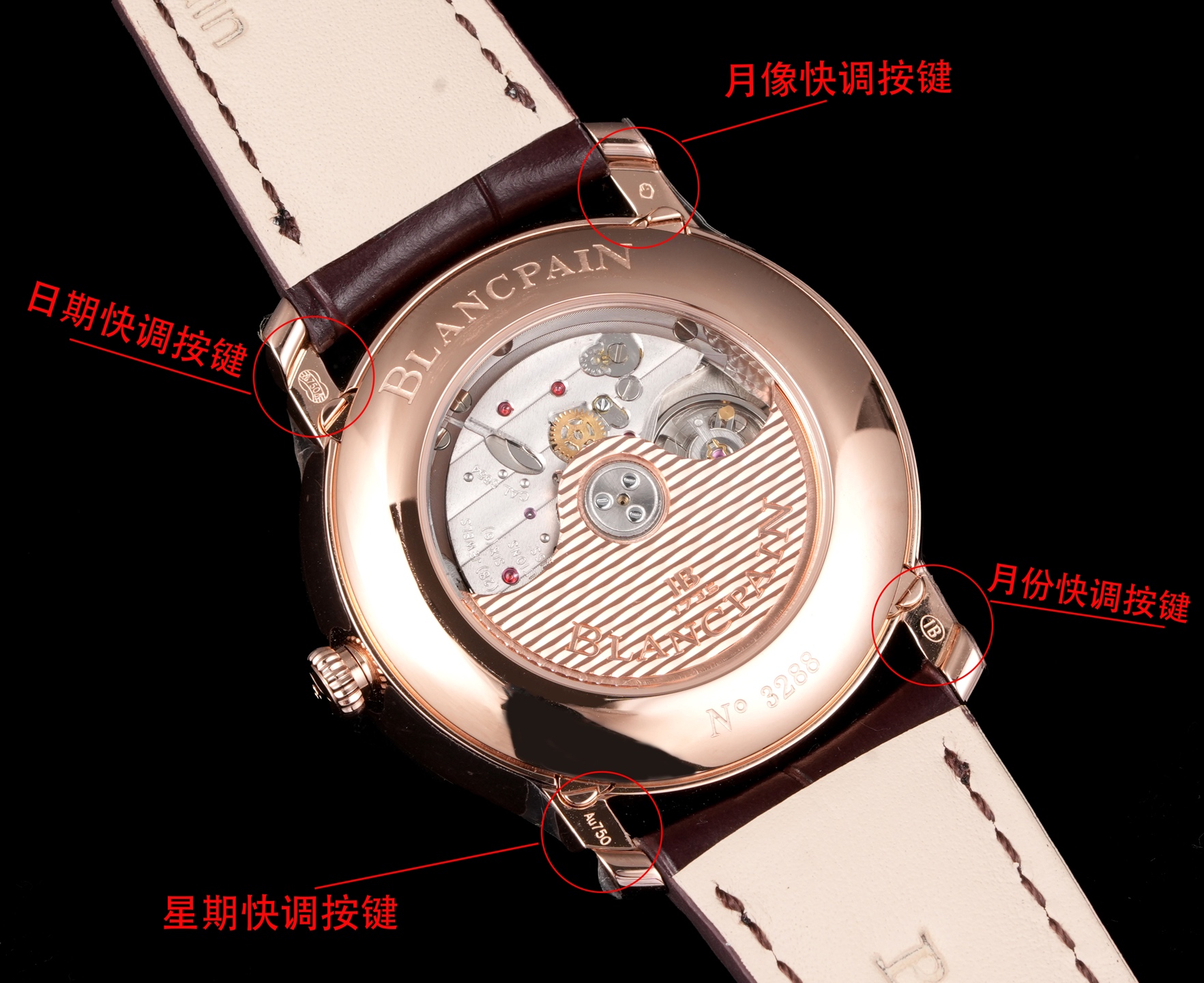 At its core, the Blancpain 6654 houses the automatic Caliber 6654.5, renowned for its 72-hour power reserve. This movement is not only a feat of engineering excellence but also exemplifies the brand’s ability to blend tradition with innovation. The ingenious design includes hidden correction buttons integrated within the lugs, which provide ease of adjustment while maintaining aesthetic harmony.