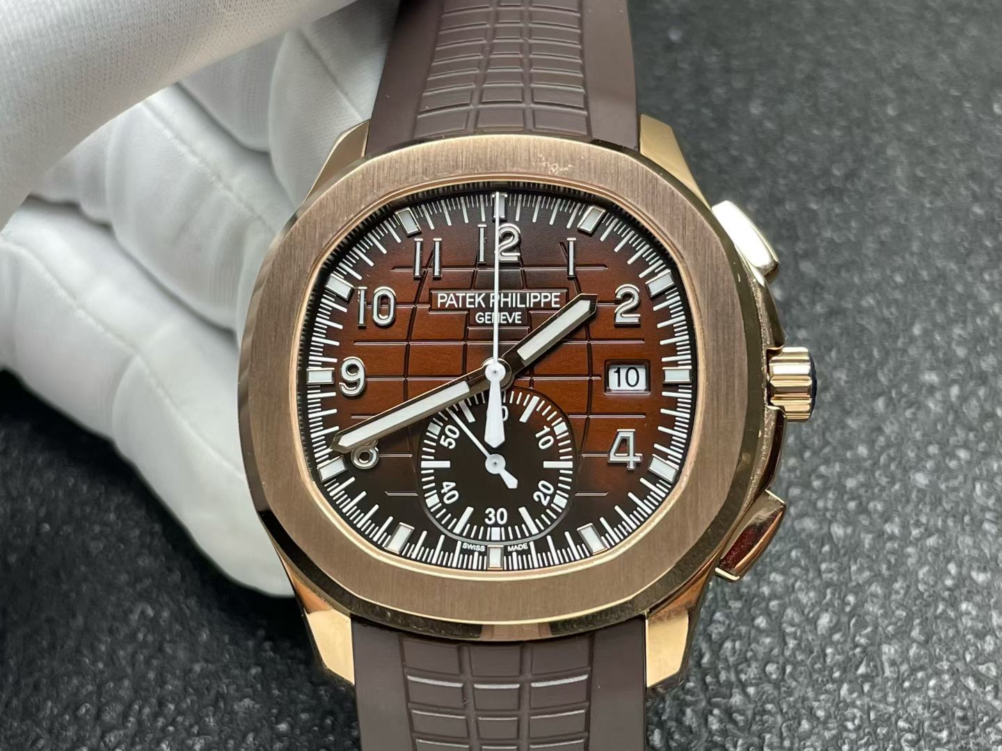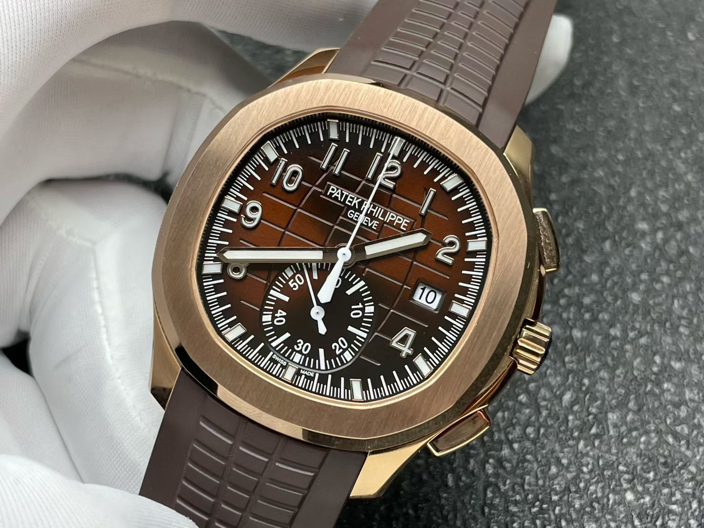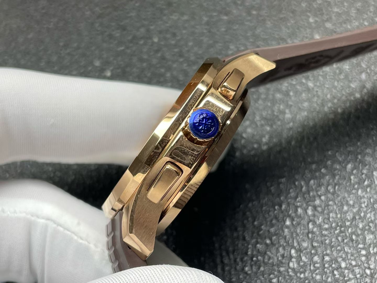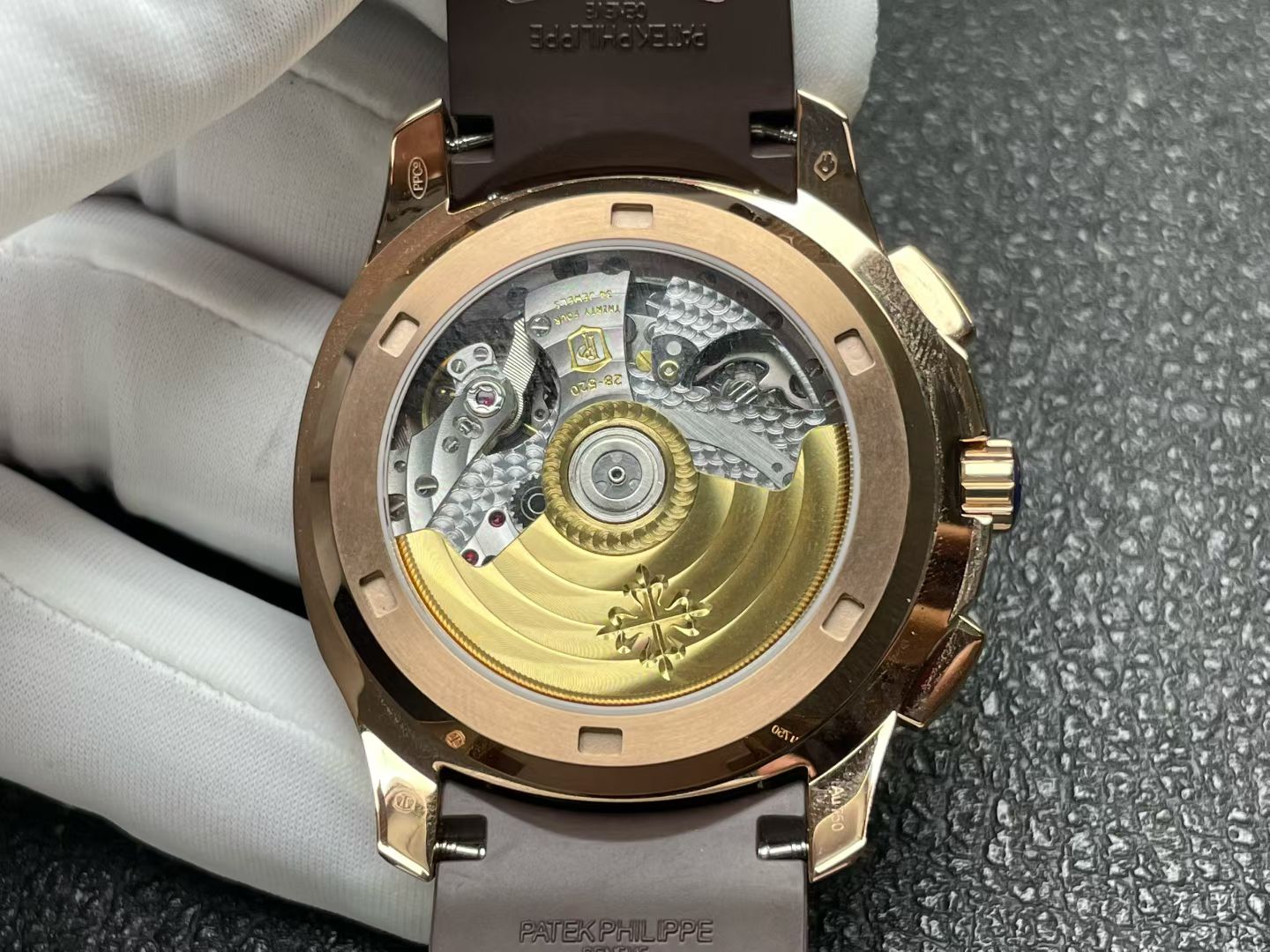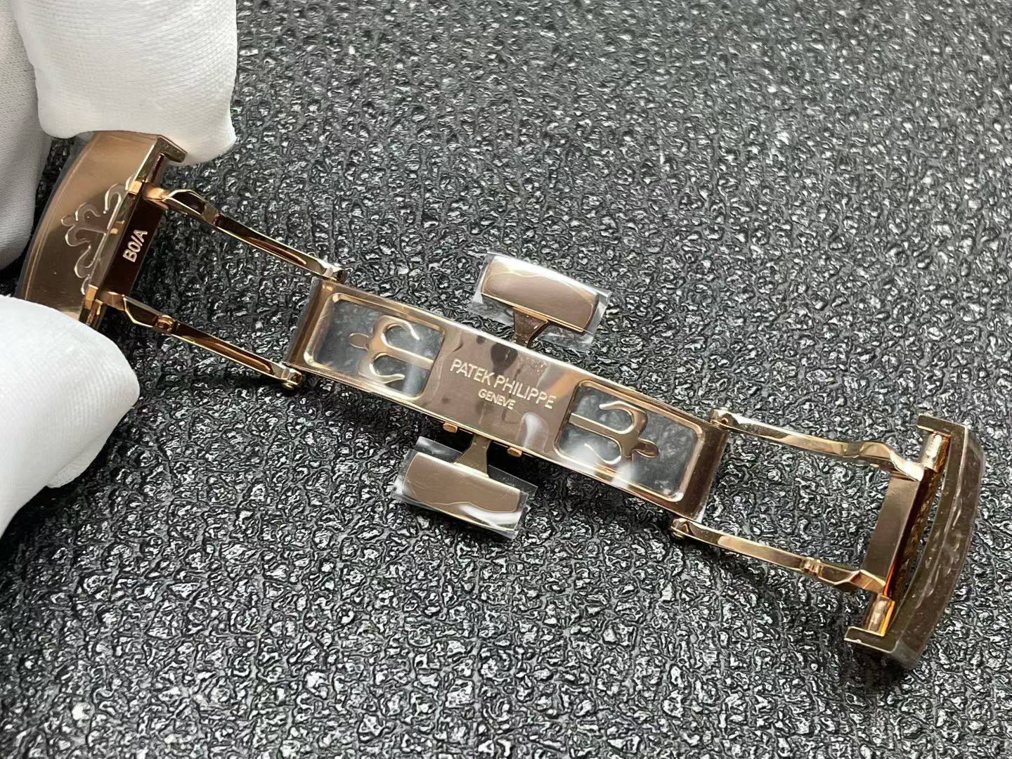 P1 Factory’s newest creation offers a tantalizing entry into the luxury watch market with its meticulously developed Patek Philippe 5968 series. The collection, sought after by connoisseurs and buyers alike, comprises four distinct versions: the 5968G-001 featuring a blue dial, the 010 with a green dial, both set in a gleaming white gold case that surpasses the allure of stainless steel. Additionally, the 5968R-001 brings opulence with its rose gold and brown dial combination, while the 5968A-001 stands as the crowd favorite with a striking black dial and orange hand, crafted in stainless steel and accompanied by a complimentary orange rubber strap.