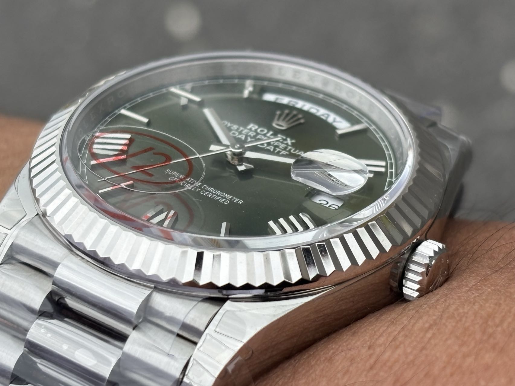 The heart of this watch is the Dandong 3255 integrated movement—a masterpiece in itself. Known for its reliability, the movement boasts a power reserve of 72 hours, echoing the robustness of the official 3235 lineage combined with a day-date feature. The stability of the Dandong movement is unparalleled, with almost zero chances of requiring repairs, which marks a significant departure from the usual patchwork of SH 3135 components often seen in lesser replicas.