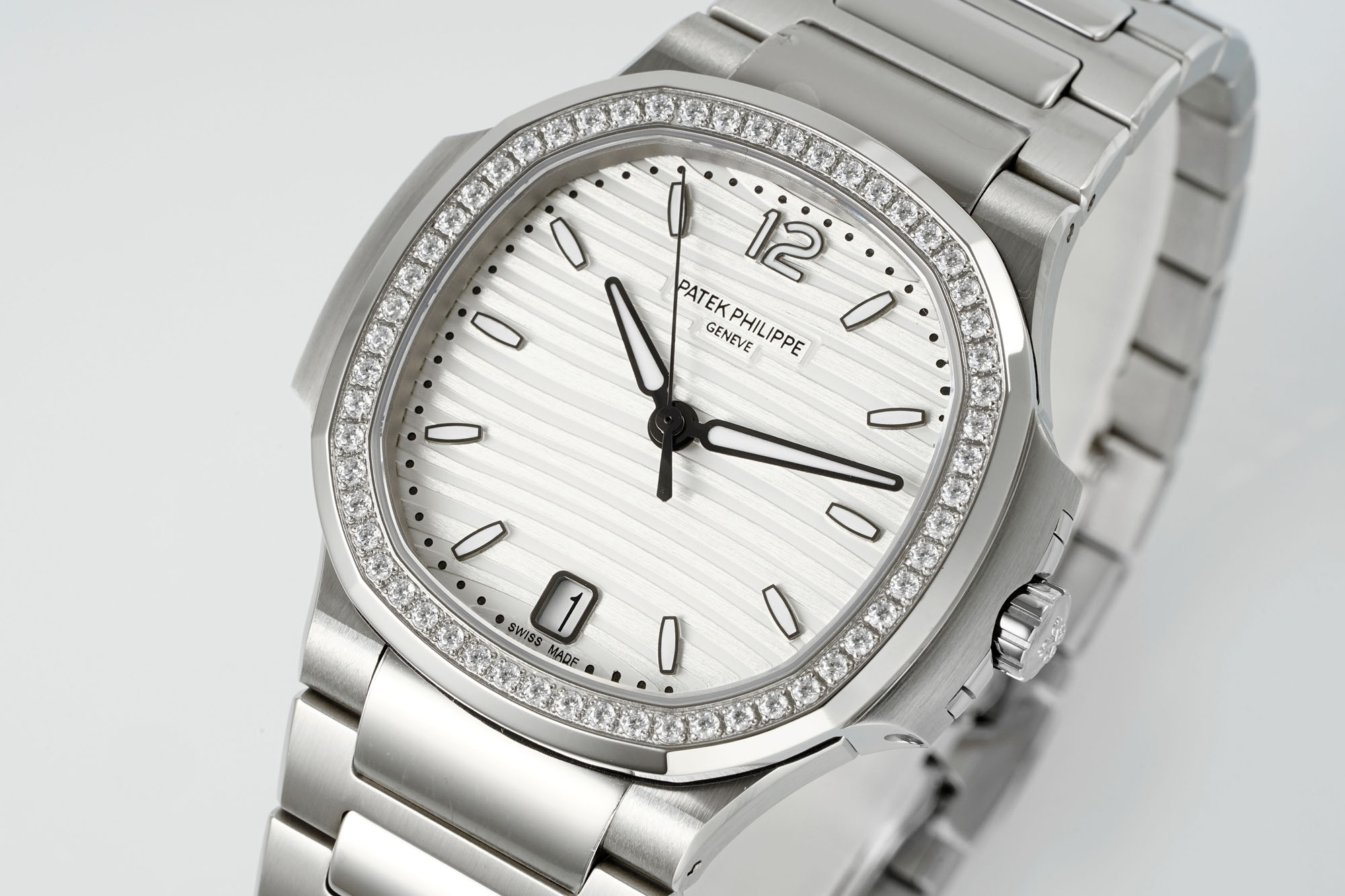 DDF’s Nautilus 7118 replica is a testimony to the brand’s pursuit of precision and detail. Its silver-white dial, adorned with meticulously brushed wave patterns, creates a captivating sheen under varying light conditions. This mirror image of the original’s charm is further enhanced by the precision in the indices’ chamfering, reflecting the exacting standards of the authentic model. The case design doesn’t fall short either, with uniformly smooth bezel lines and eagle-nose CNC chamfers echoing Patek Philippe’s iconic style.