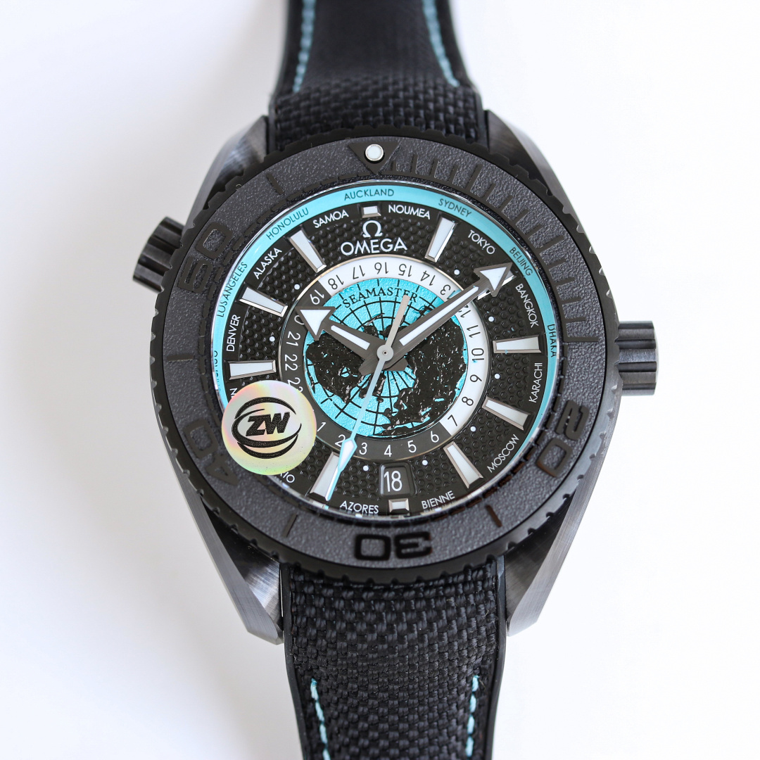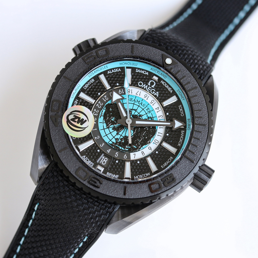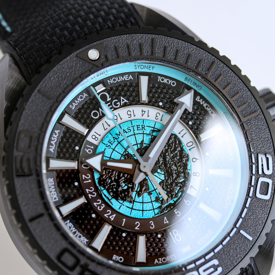 In the ever-evolving world of luxury watches, OMEGA continues to push boundaries with its latest release: the Seamaster Planet Ocean Worldtimer. This exquisite timepiece draws inspiration from the vast and tumultuous realm of global travel, embodying the brand’s commitment to innovation and exploration. OMEGA has crafted this watch with a 45.5mm case in black zirconium dioxide ceramic, offering water resistance up to a staggering 600 meters—an impressive feature that echoes the renowned “Deep Black” design while elevating functionality and style to new heights.