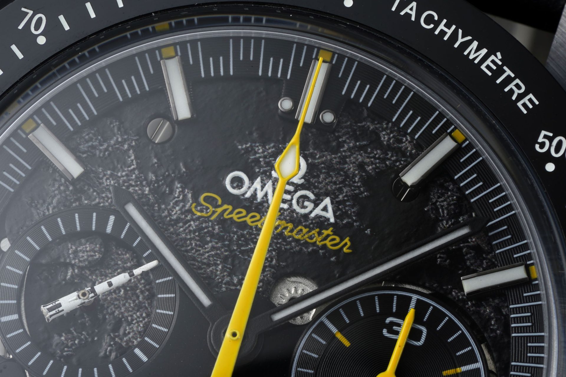 The Omega Dark Side of the Moon, measuring 44.25 mm in diameter, sports a blackened movement, showcasing the lunar surface through advanced laser ablation technology. This nod to the Apollo 8 mission reflects Omega’s commitment to heritage while advancing technological boundaries. The use of black ceramic, adorned with contrasting yellow highlights and white enamel tachymeter scale, situates the watch in the luxury segment. This raises questions about pricing strategy in the ceramic watch market, considering the high production costs versus the value perceived by consumers.