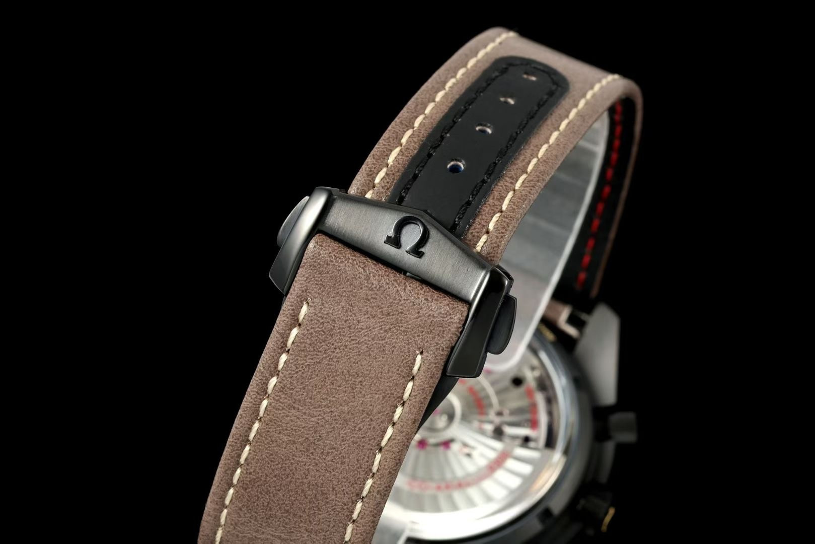 Omega’s choice of materials extends to the all-black casing and strap, with a double-domed sapphire crystal providing robust protection against scratches. Complementing the aesthetic appeal, the watch also offers practical functionalities such as date display and chronograph capabilities, making it an ideal candidate for both everyday wear and special occasions.