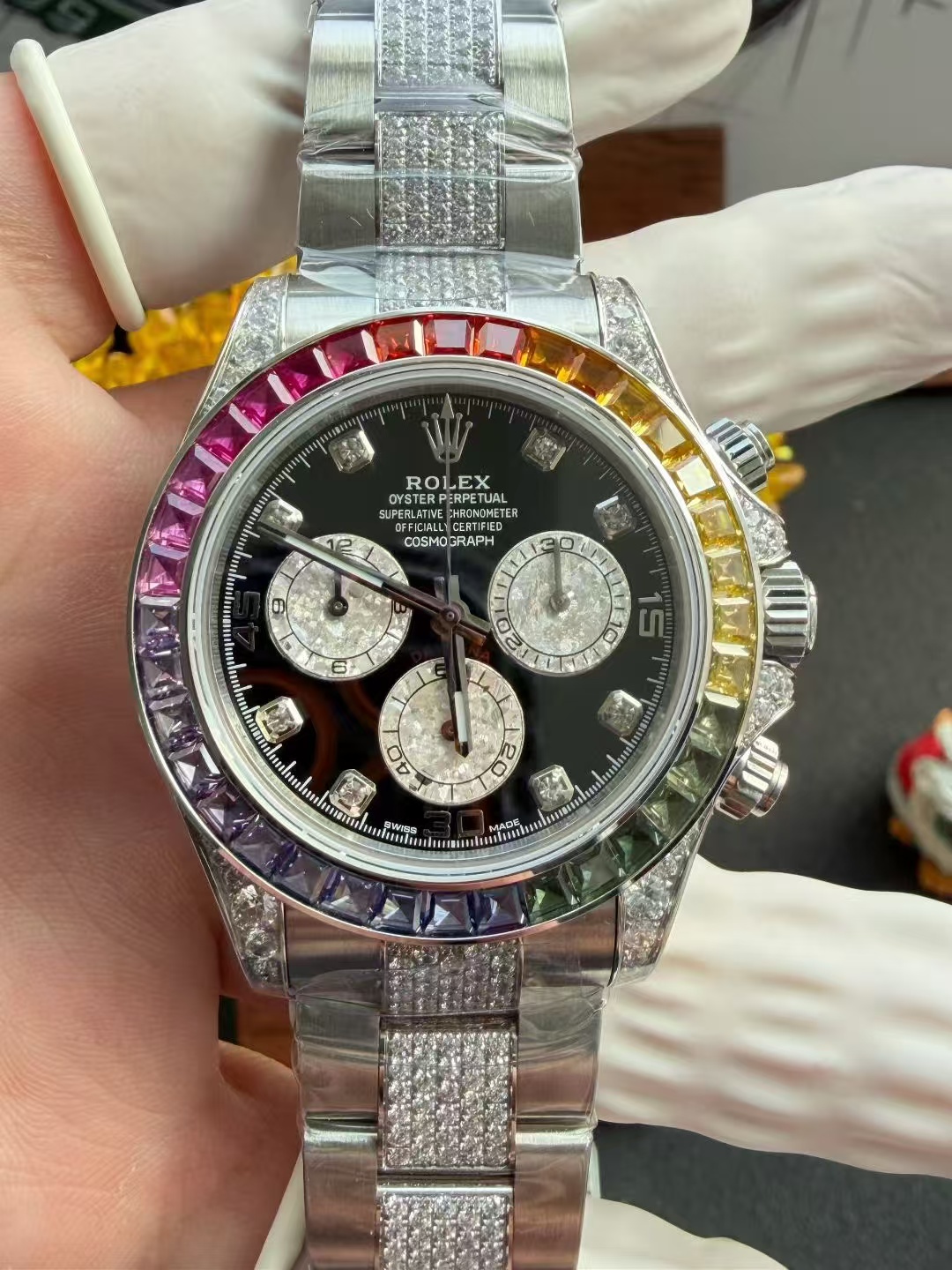 From an economic standpoint, the decision to opt for a modified Daytona with synthetic diamonds presents an intriguing alternative to traditional investments in luxury watches. While a standard Rolex Daytona can fetch a substantial price on the secondary market, its modified counterpart offers a lower entry point with the potential for unique appreciation due to its bespoke nature. This trend mirrors broader economic shifts towards affordable luxury, where consumers seek personal customization without incurring excessive costs.
