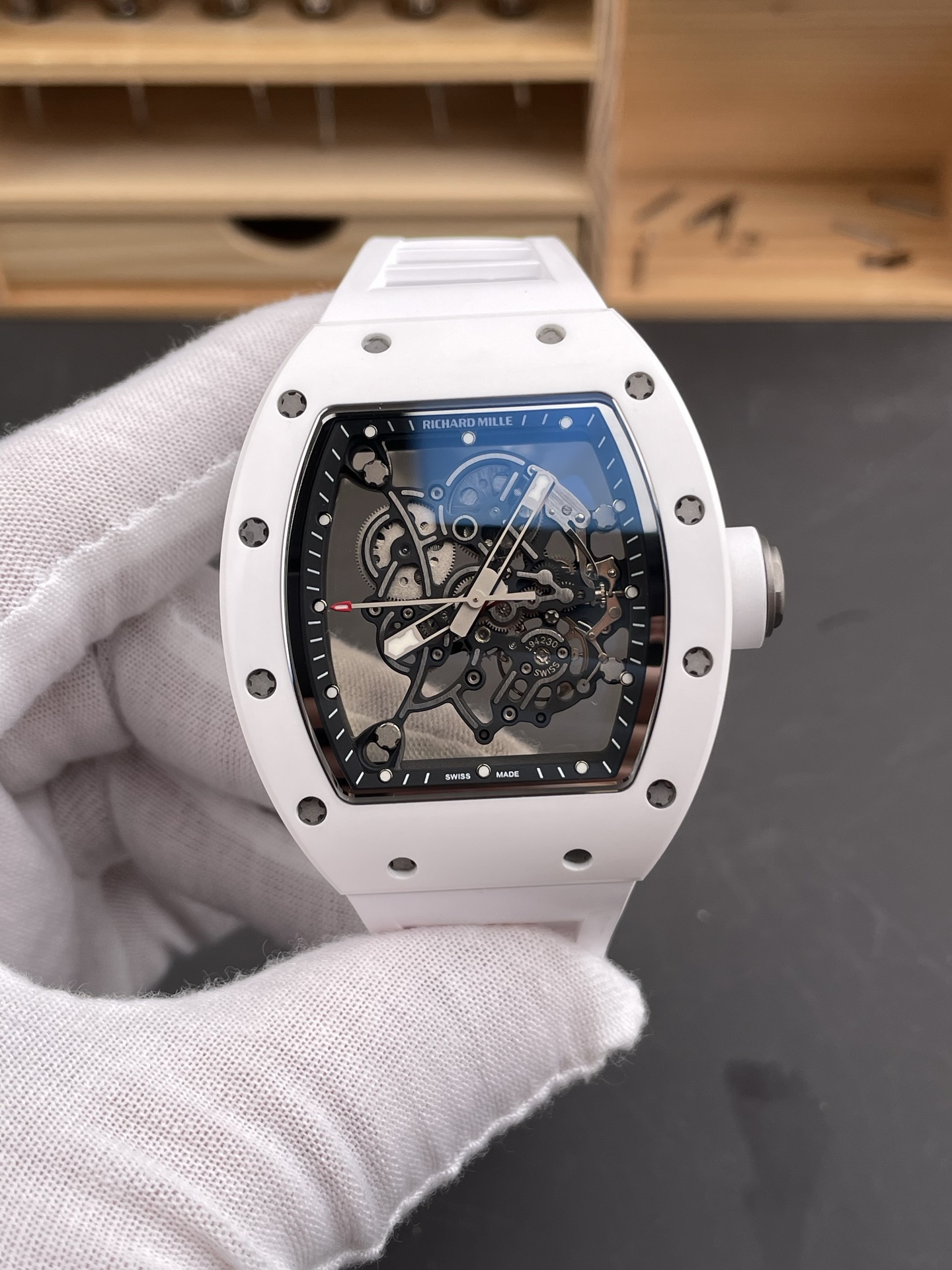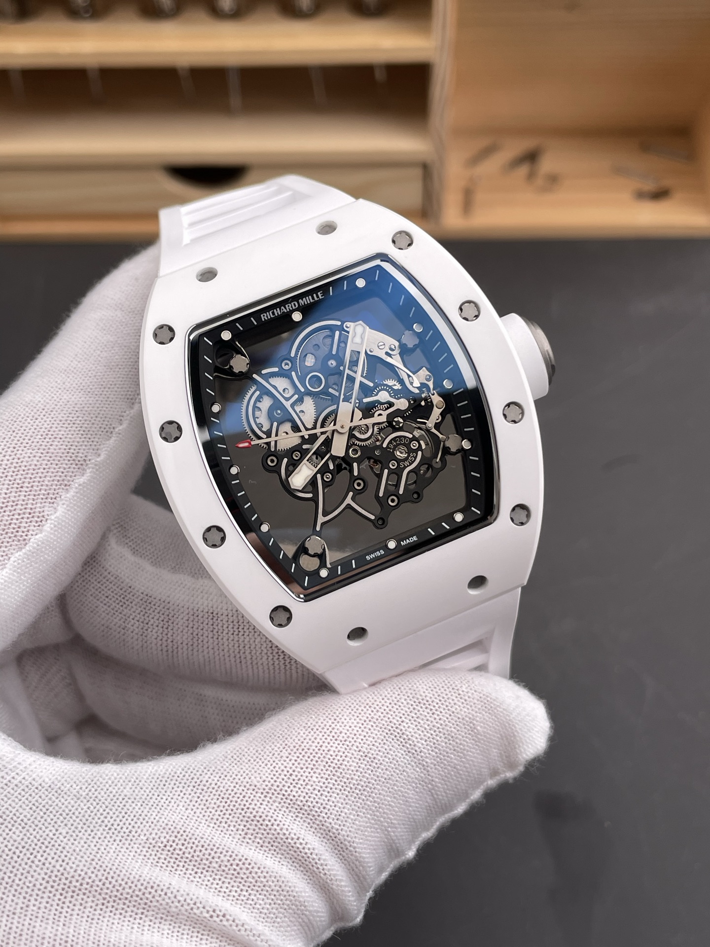Exploring the expansive world of luxury timepieces inevitably leads one to the doorstep of Richard Mille. Known for its avant-garde designs and pioneering use of materials, the RF Richard Mille RM055 stands as a testament to the brand’s unrelenting pursuit of innovation. Encased in white ceramic, measuring 49.9×42.7mm, this model isn’t just about technical prowess—it’s a philosophical statement on the future of luxury watches.