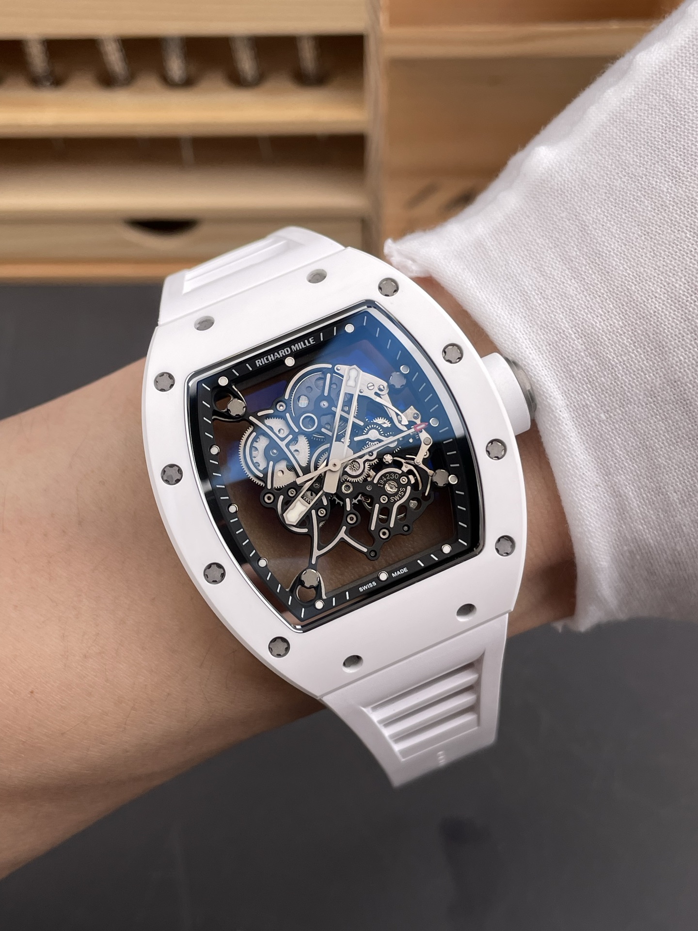 The RM055’s use of white ceramic isn’t merely about aesthetics; it’s a deliberate choice that reflects a shift towards materials that offer both durability and visual purity. Ceramic, being highly resistant to scratches and temperature variations, ensures that the RM055 retains its pristine condition over time—a trait highly valued among collectors. In contrast, traditional materials like stainless steel or gold, while classic, may not offer the same resilience. This choice speaks volumes about Richard Mille’s commitment to functionality without sacrificing stylistic innovation.