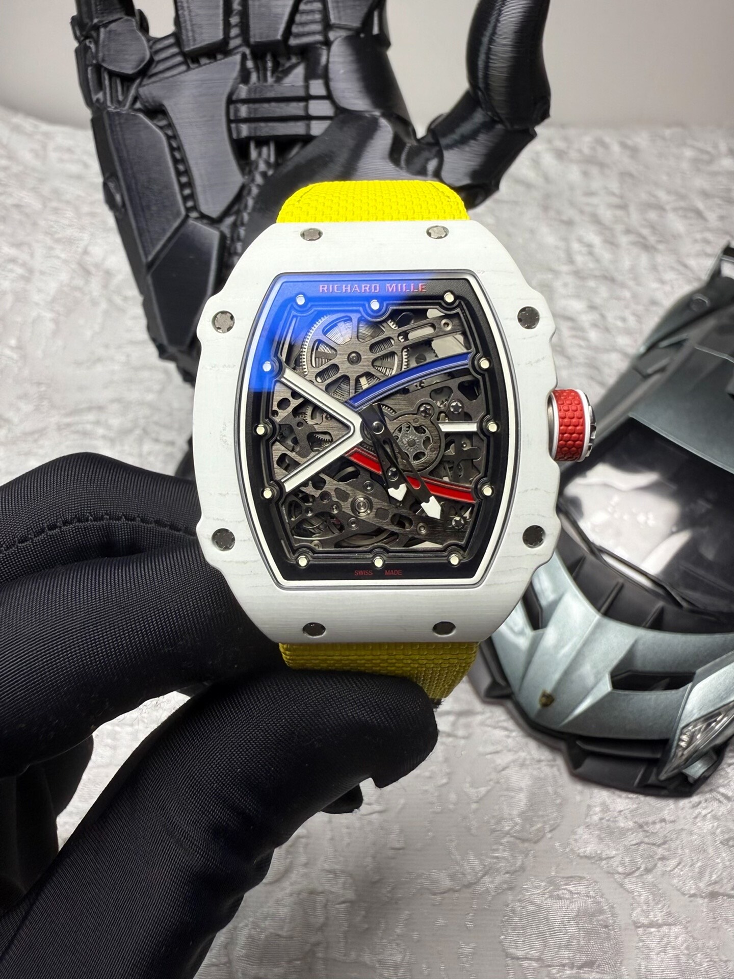 The White France colorway adds an additional layer of exclusivity. This is not the standard RM 67-02 configuration. It is a limited, specific expression of the model — which means the buyer is not just wearing a Richard Mille replica, they are wearing a specific, rare, culturally significant variant of one of the most technically ambitious watches the brand produces.