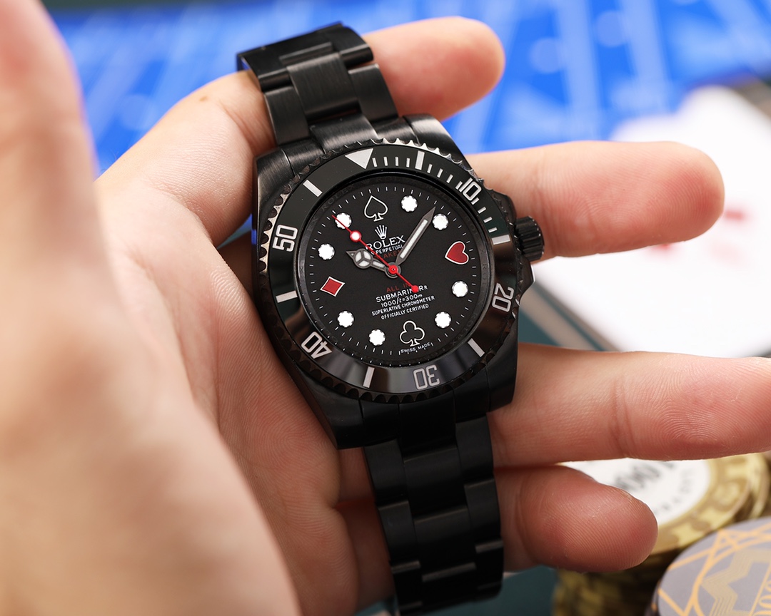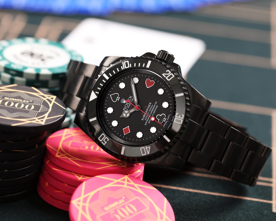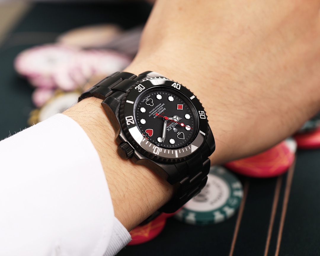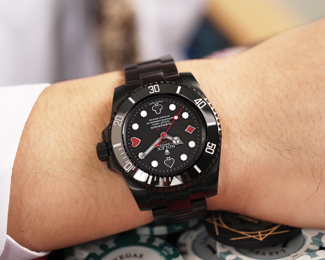 The world of luxury watches is one of intrigue and allure, yet it’s also a space where the line between authenticity and replication blurs with each passing innovation. Enter BLAKEN, a name synonymous with high-end watch modifications, standing at the frontier of this blurred line. Their latest offering—a special edition Rolex Submariner—melds the iconic Green and Black ‘Hulk’ and ‘Kermit’ Submariner hues with bold poker-themed elements, delivering a timepiece that redefines the craftsmanship capabilities of the replica watch industry.
