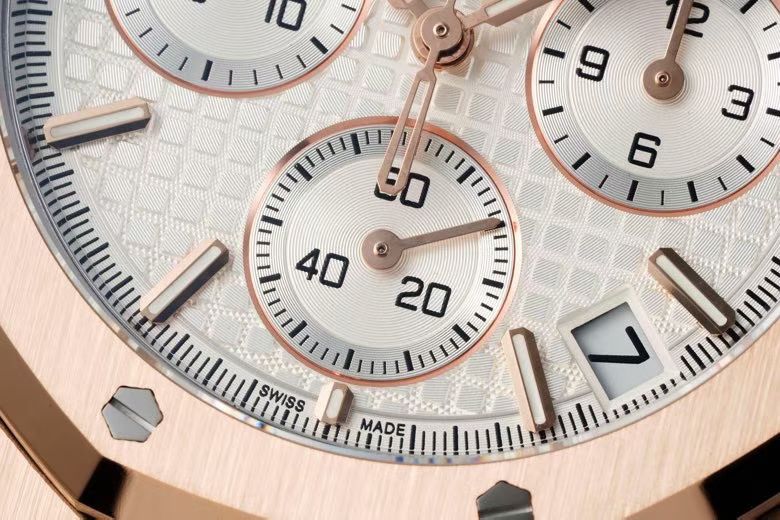 Design is where the DDF AP 26240 truly manifests its respect for the original Audemars Piguet. Each grid pattern on the dial is uniformly and sharply embossed, maintaining the signature radiating tapestry pattern that defines the model. Utilizing high-quality laser sculpting technology, the date window is crafted with four-axis precision to achieve a pleasing dimensionality and accuracy. The hexagonal screw patterns, another hallmark of the Royal Oak, are impeccably crafted with high-gloss finishes that exude a sense of the original’s affluence.