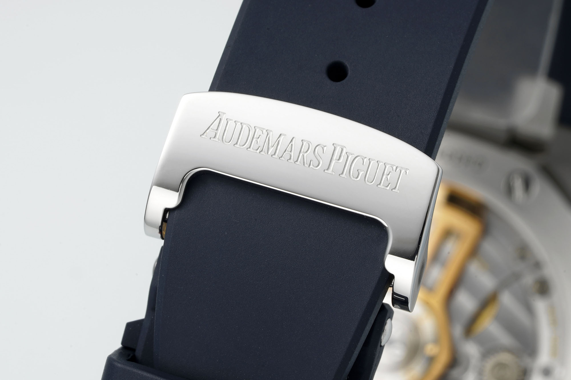 Immersed in the details, the replica’s hand design mirrors the genuine model, with the hour and minute hands appropriately slender and the second hand meticulously extended by 0.5mm. The brand’s emblem is engraved with precision, emphasizing authenticity—every letter, especially the distinct A and E, follows the original’s intricate design patterns. This attention to detail extends to the dial’s texture, featuring an amplified, even grid pattern akin to the true model’s iconic waffle texture.