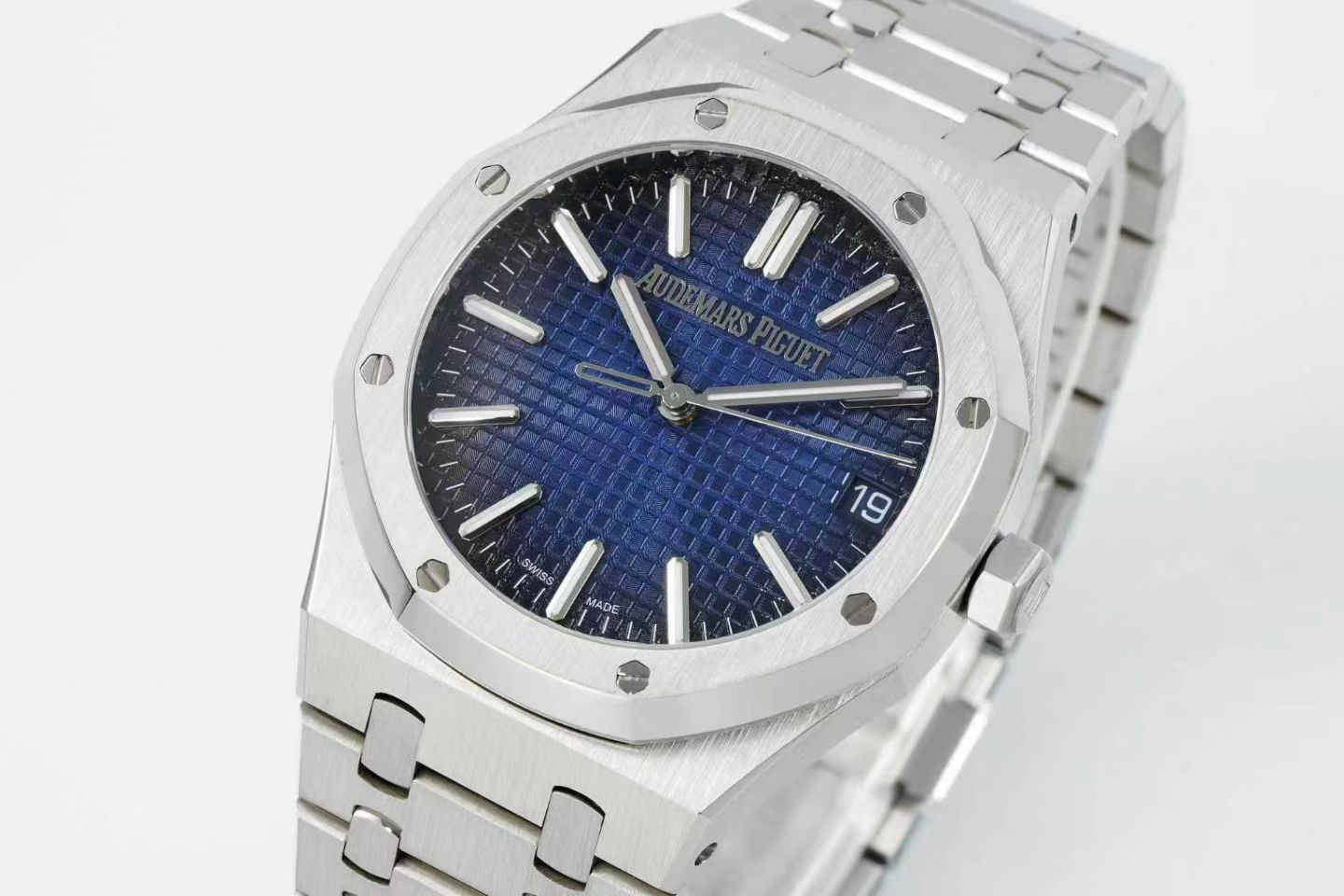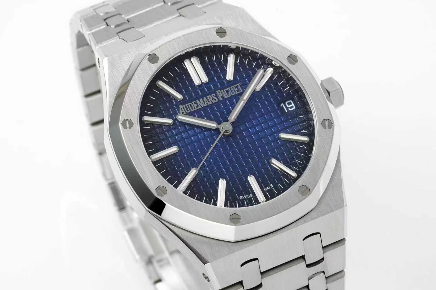 Firstly, the dimensions of 41×10.4mm replicate those of the original counterpart, achieved through meticulous disassembly and mold construction. This attention to detail demonstrates the brand’s dedication to preserving the iconic angular aesthetic synonymous with the Royal Oak. The bracelet’s flawless craftsmanship surpasses the market norm for steel watches, with seamless connectivity and flexibility resembling that of the genuine article. This level of detail serves as a testament to the brand’s unwavering pursuit of excellence.