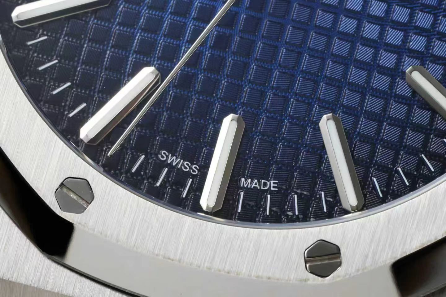 At first glance, the Royal Oak 15510ST strikes a balance between tradition and innovation. Notably, the watch has omitted the ‘AP’ emblem, opting instead for the full ‘Audemars Piguet’ name crafted using the refined CODE 1159 logo technique. This change signifies a nod to the brand’s rich heritage while embracing modern design shifts. The three-hand automatic movement’s rotor has been updated from a gold ‘AP’ design to a silver rotor emblazoned with the number ’50’, offering a more organized and vintage aesthetic. This subtle transformation elevates the watch, accentuating its stature as the pinnacle of steel watches.