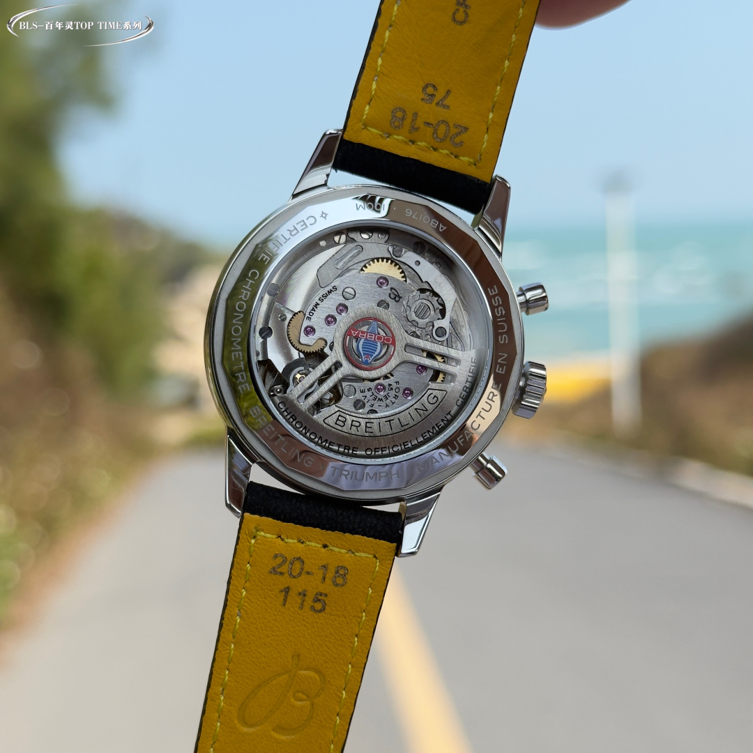 Breitling’s TOP TIME V2 series epitomizes modern watchmaking prowess, featuring the exclusive B01 automatic mechanical movement. This series embodies the synthesis of classic aesthetics and modern engineering, with a 42mm case size that balances boldness and wearability. The use of 316 stainless steel for the bezel ensures durability while retaining a polished look, and the dual-side anti-reflective sapphire crystal protects the intricate dial work.