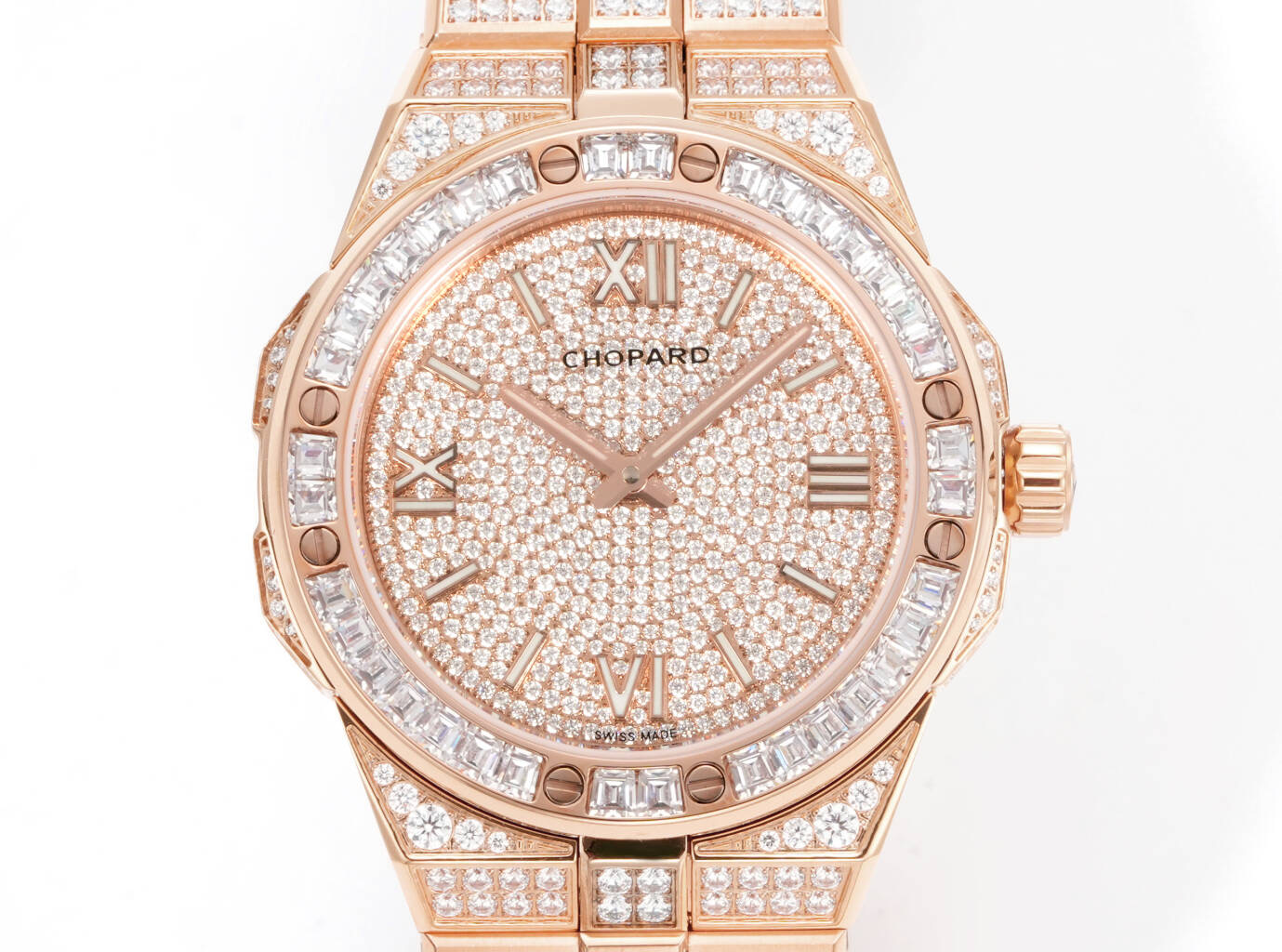 Beyond its aesthetic appeal, this watch houses the modified Chopard 01.01-c movement, based on the reliable 9015 caliber. This mechanical heart underlines Chopard’s dedication to preserving the craftsmanship and precision synonymous with Swiss watchmaking. The blend of reliability with cutting-edge enhancements ensures that wearers experience both the legacy of watchmaking and the benefits of modern advancements.