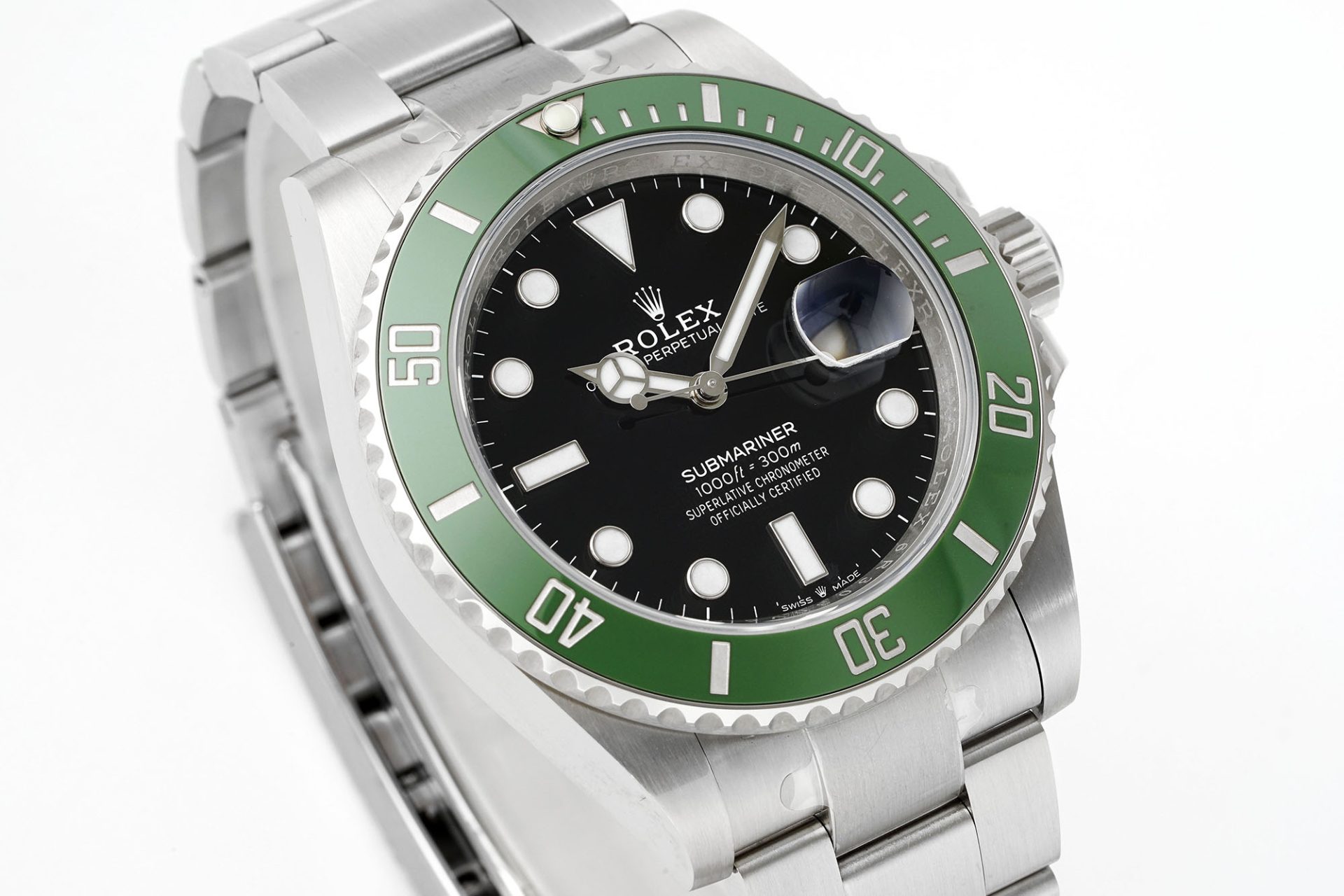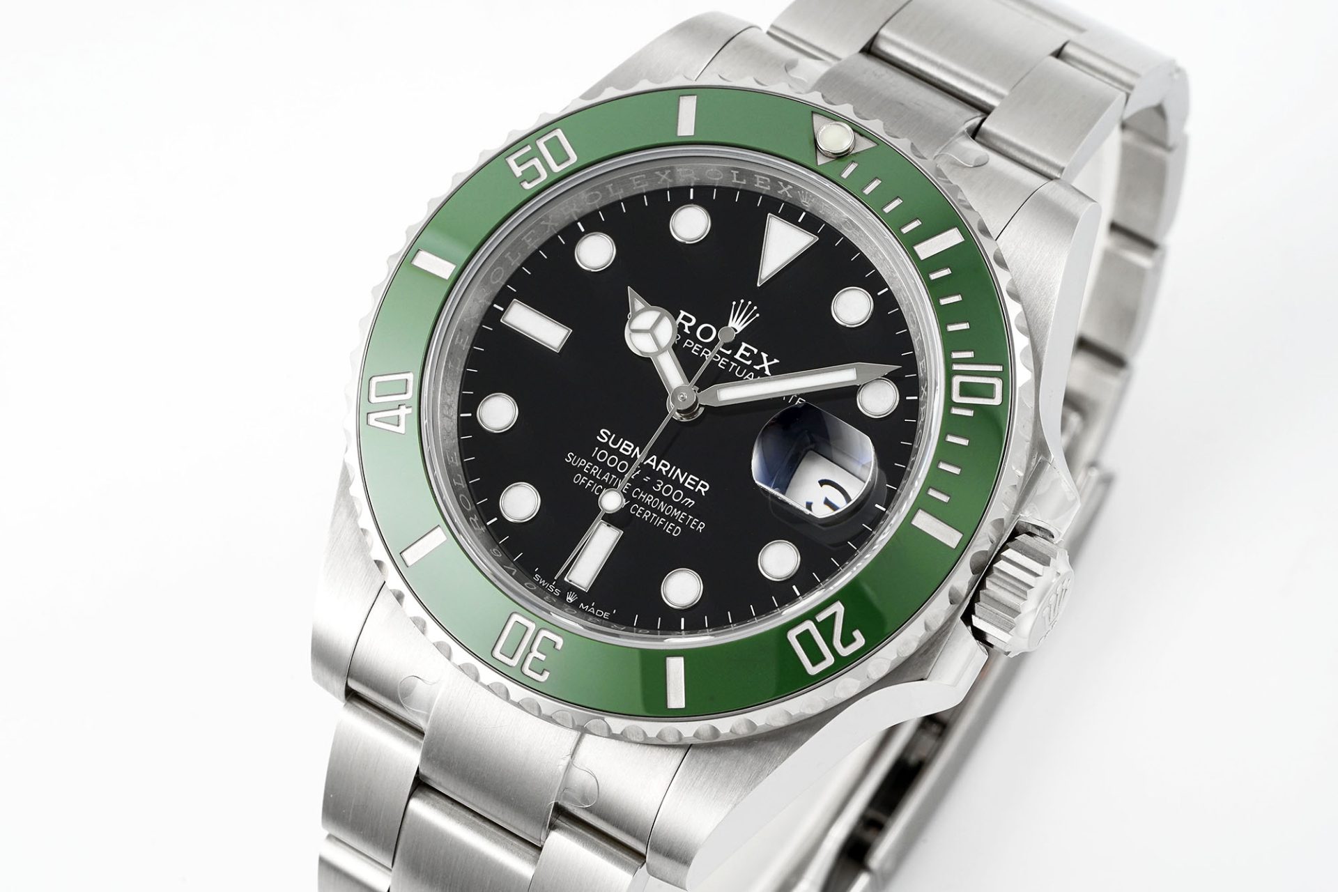 Beyond its captivating facade, the watch maintains a case diameter of 41 millimeters, retaining the robust yet comfortable design that enthusiasts have come to expect. The inclusion of the Dandong 3235 movement assures precision and reliability, a subtle but significant upgrade in the watch’s engineering prowess. These enhancements refine the user experience, ensuring that the Green Submariner is not only a visual delight but also a technical marvel.