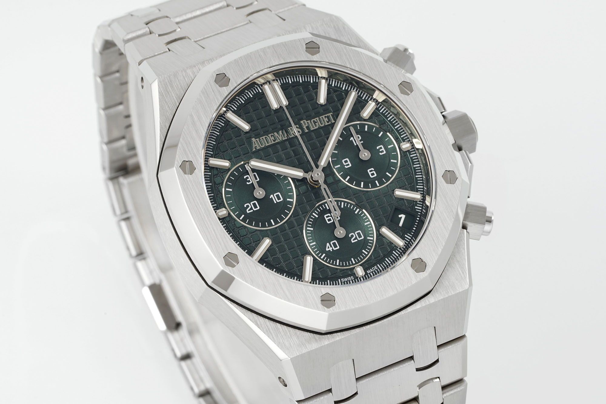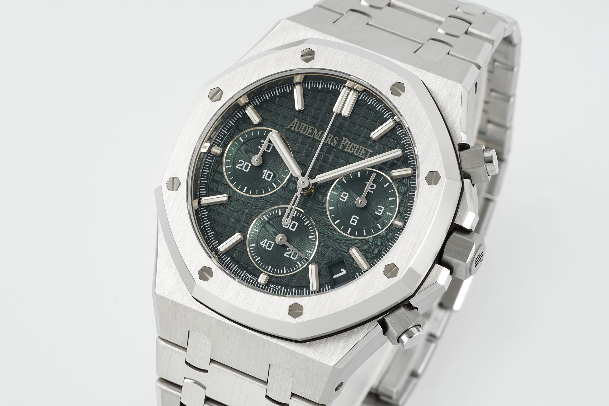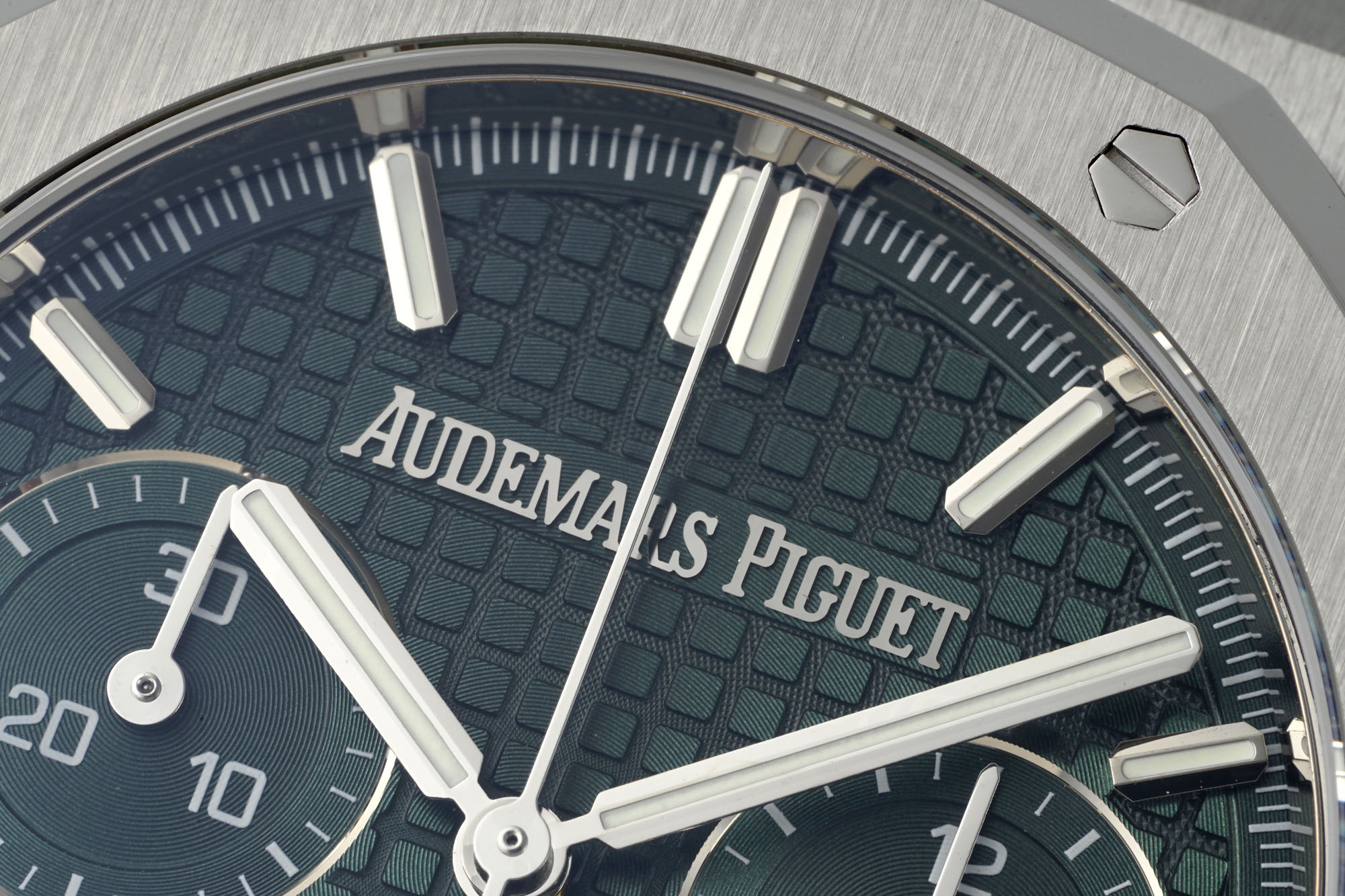 Like a sculptor meticulously chiseling a statue, DDF has faithfully recreated the intricate patterns and engravings characteristic of the original AP Royal Oak. The dial features a logo that mirrors the original, with the iconic ‘A’ and ‘E’ letters carved with meticulous precision. The grid pattern on the dial is both uniform and three-dimensional, complementing the bold sub-dial fonts and radiating texture that align perfectly with the genuine article.