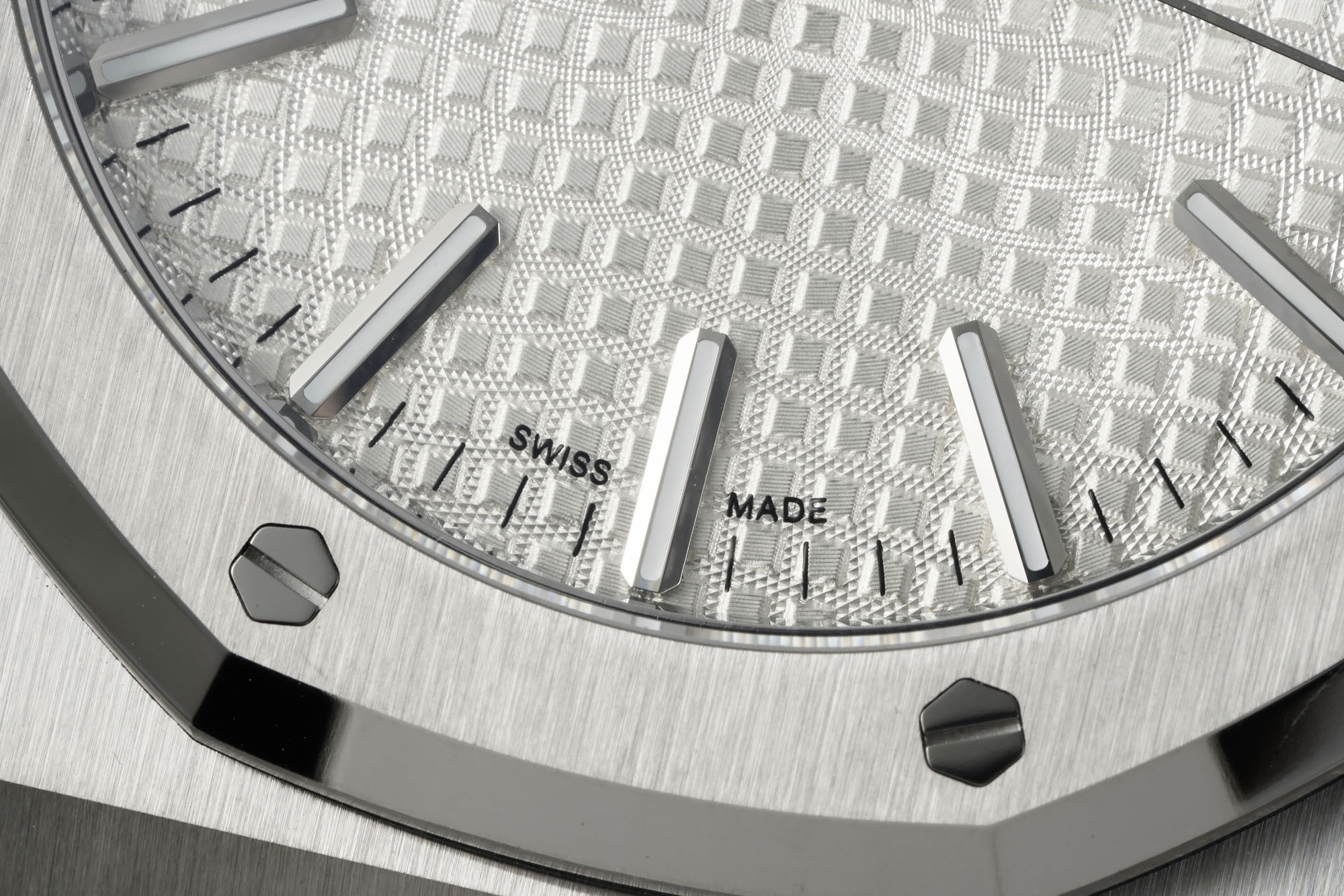 The DDF replica does not skimp on detail. The dial’s enlarged grid creates a uniform, three-dimensional texture reminiscent of the original’s waffle-like patterning. Each element, from the laser-engraved date window to the seamless fitting of screws, echoes the Royal Oak’s architectural integrity. Even the subtle transition from thick to thin within the bracelet links is meticulously crafted to ensure a fluid and ergonomic fit. These nuances demonstrate that replicas can embody the spirit of the original, offering an alternative to enthusiasts who prize design over provenance.