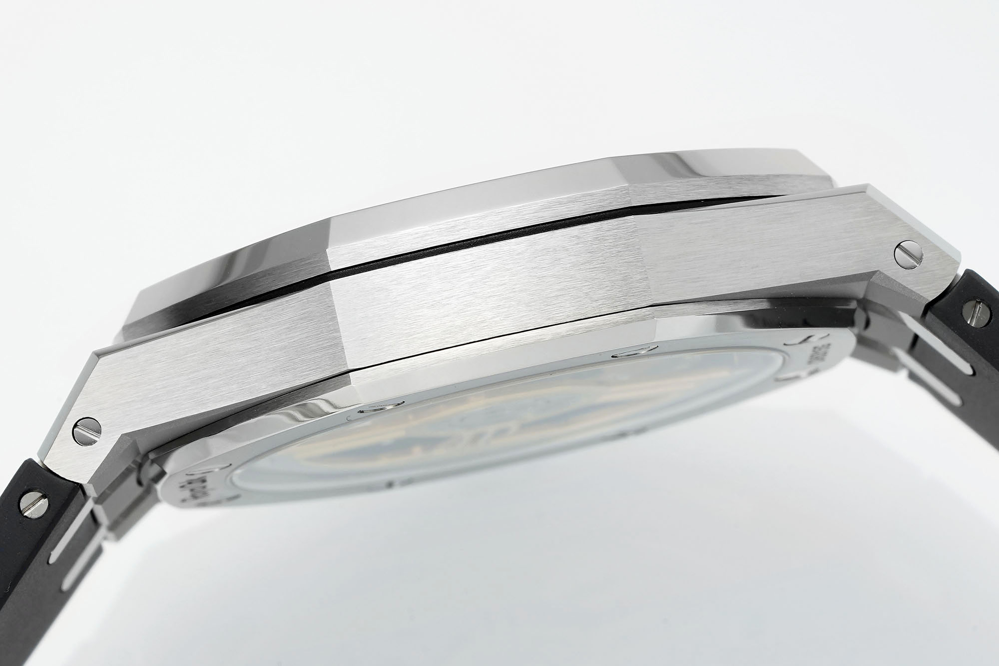 The Audemars Piguet Royal Oak has long been revered for its iconic design and impeccable engineering. The DDF replica 15510 mirrors this admiration, boasting the Dan Dong Factory’s 4302 column-wheel movement at a mere 4.9mm thickness—remarkably consistent with the original. This movement, renowned for its stability and precision, demonstrates the replica’s commitment to replicating the original’s mechanical integrity. From the intricately engraved logos to the fine details of the dial’s typography—such as the elongated foot of the letter ‘A’ and the precise angles of the letter ‘E’—it strives to match its illustrious counterpart.