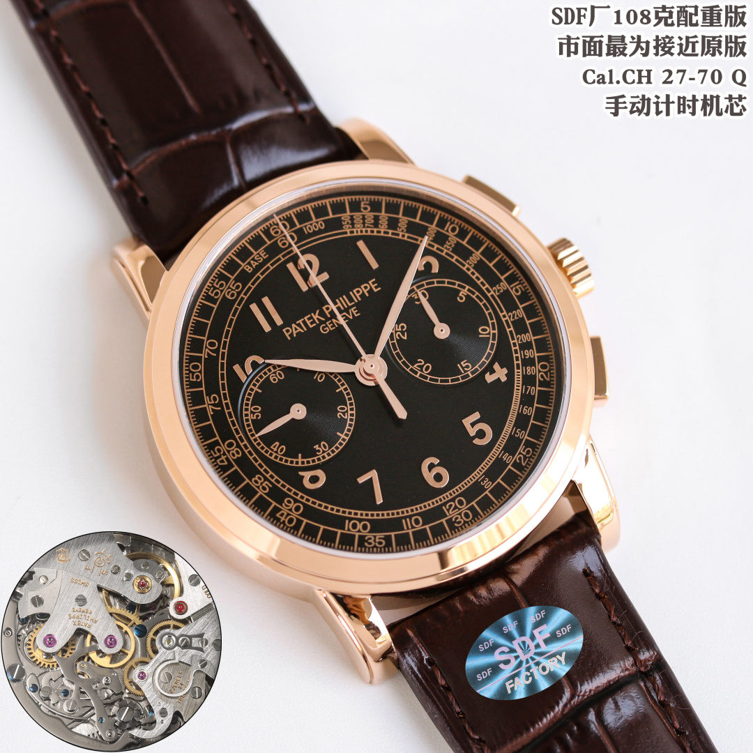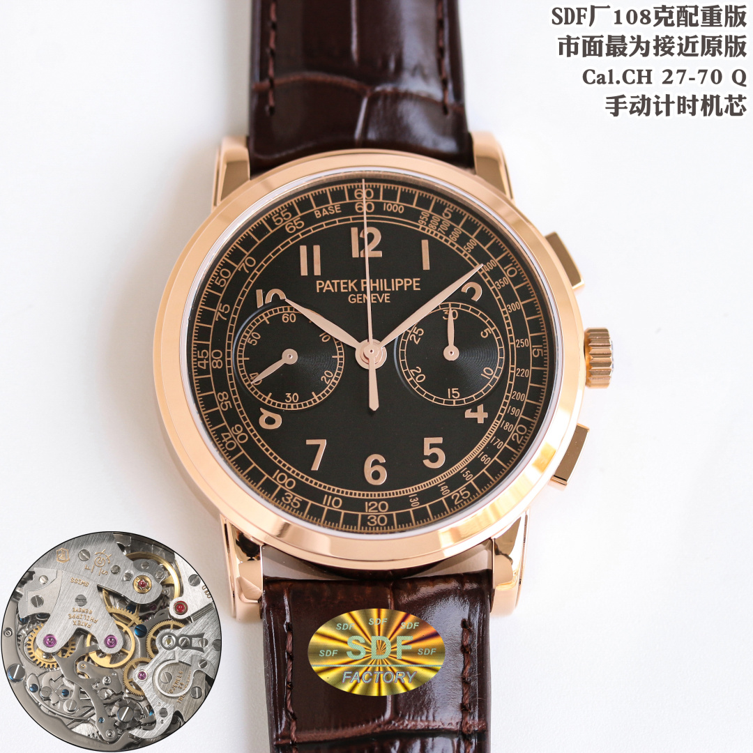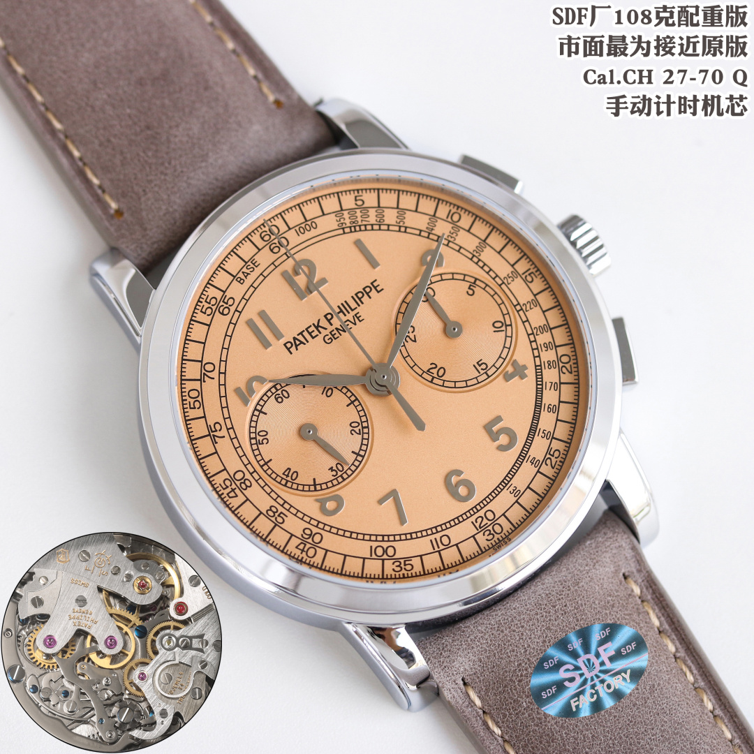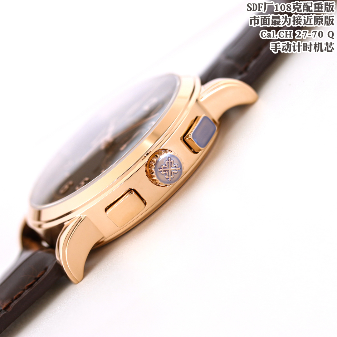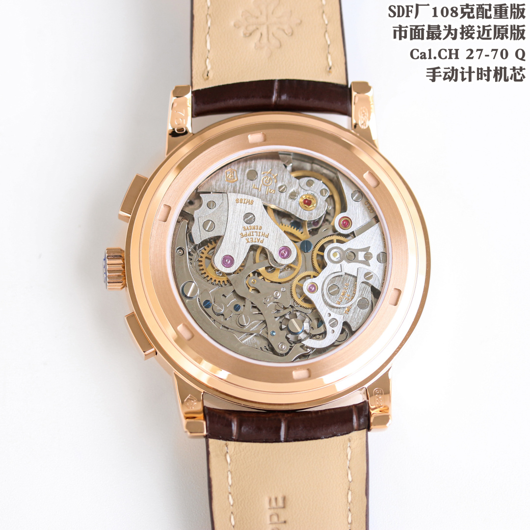 At the heart of this watch replica is the Cal.CH 27-70 Q manual movement, a unique adaptation that closely mirrors the original Patek Philippe model. The movement is lauded for its precise mechanical beauty, a hallmark of the original’s mastery. Here, SDF Factory has meticulously engineered this movement to offer a similar tactile experience—from the rhythmic pulse of its mechanism to the awe-inspiring view through the exhibition case back.